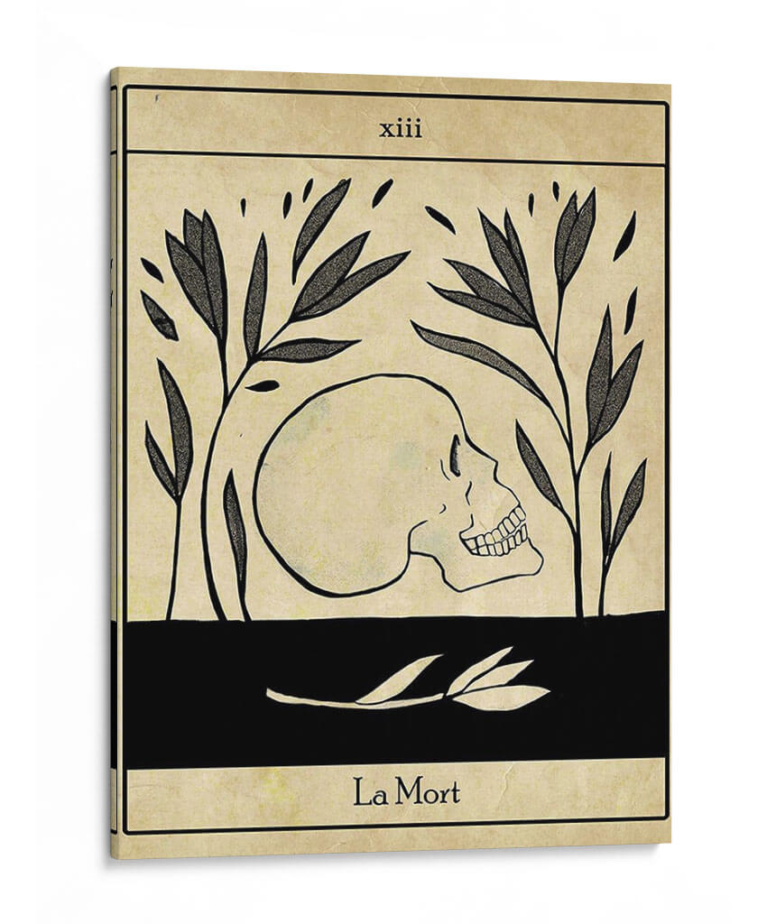 Adéntrate en el enigmático mundo de "Todos Los Santos Eve II" de Emma Scarvey, una obra de arte digital que evoca la profunda reflexión sobre la vida y la muerte. Esta pieza, inspirada en la iconografía de las cartas del tarot, presenta una calavera estilizada flanqueada por delicadas ramas de hojas en tonos oscuros. La paleta de colores, dominada por el sepia y el negro, crea una atmósfera misteriosa y atemporal, que recuerda a grabados antiguos o cartas de adivinación. El estilo gráfico y minimalista, con líneas limpias y un fuerte contraste, otorga a la composición una presencia impactante y moderna, a pesar de su temática clásica. "Todos Los Santos Eve II" es perfecta para quienes buscan añadir un toque de intriga y profundidad a su decoración, ya sea en un estudio, una sala de estar o un espacio personal que requiera una pieza de conversación. Este cuadro decorativo es ideal para infundir un aire de sofisticación reflexiva y un sentido de lo efímero en cualquier ambiente.