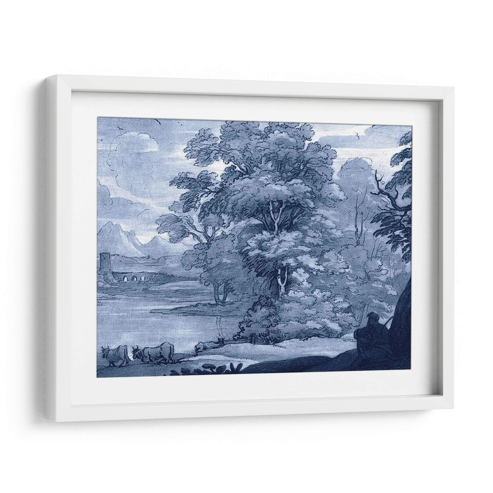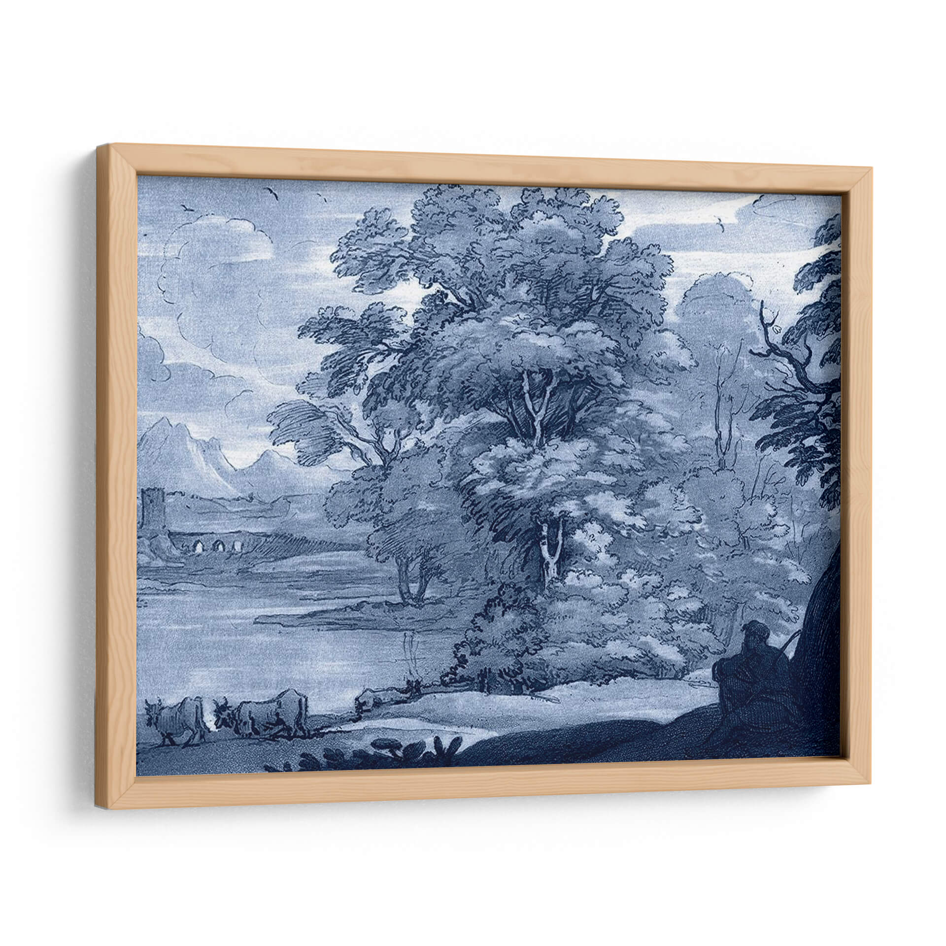 Sumérgete en la serenidad de "Toile Pastoral II", una obra maestra de Claude Lorrain que captura la esencia idílica de un paisaje campestre. Esta pieza evoca una profunda sensación de paz y conexión con la naturaleza, transportándote a un mundo donde la tranquilidad reina. La composición detallada presenta un sereno lago o río flanqueado por exuberante vegetación y árboles majestuosos, con un pastor solitario contemplando la escena. Al fondo, se vislumbran montañas y una estructura antigua, añadiendo profundidad y un toque de misterio histórico. La paleta de colores en tonos azules profundos y claros crea una atmósfera soñadora y nostálgica, perfecta para cualquier espacio que busque un refugio de calma. Este cuadro decorativo es ideal para añadir un punto de interés clásico y relajante a tu sala de estar, estudio o dormitorio, invitando a la contemplación y al descanso. Su estilo atemporal y su temática pastoral lo convierten en una adición exquisita para quienes aprecian el arte clásico y la belleza de la naturaleza. Transforma tu hogar en un oasis de paz con esta evocadora obra.