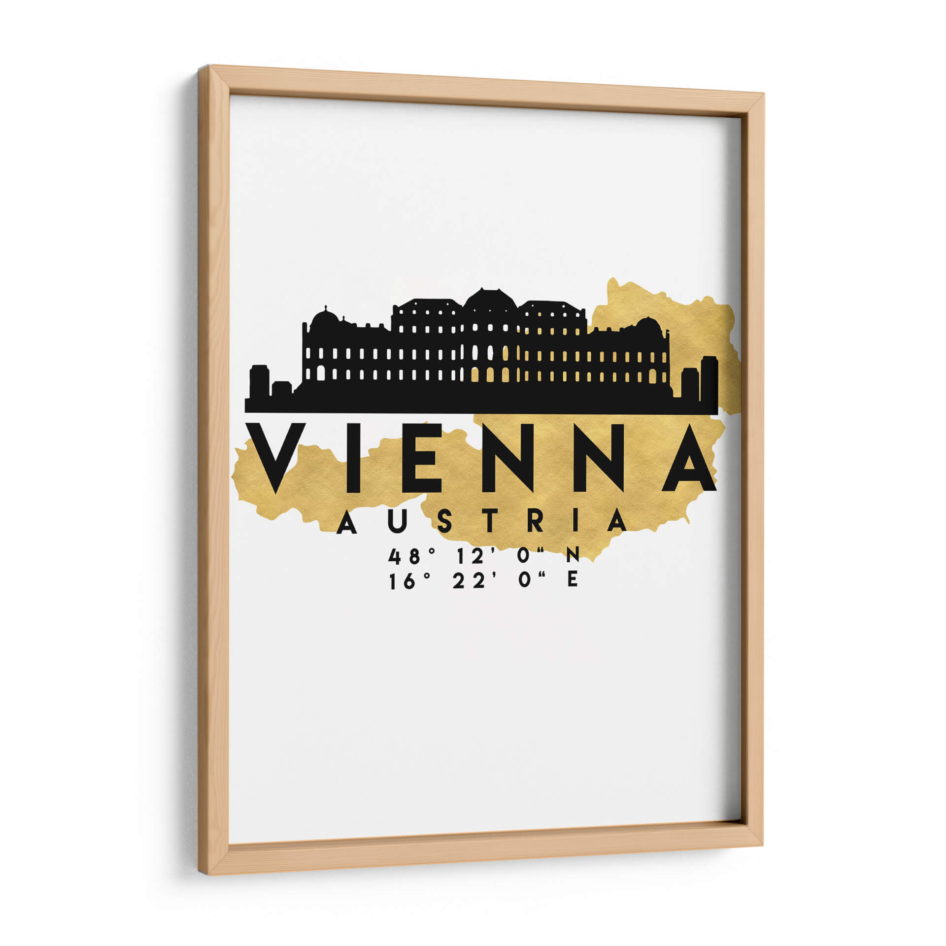 Embárcate en un viaje visual a la majestuosa capital de Austria con este evocador cuadro decorativo de Viena. La obra captura la silueta icónica de la ciudad, resaltando la arquitectura histórica con un audaz diseño en negro que contrasta maravillosamente con un sutil contorno de oro brillante que representa la forma del país. Debajo del nombre 'VIENNA' y 'AUSTRIA', se encuentran las coordenadas geográficas precisas, añadiendo un toque de precisión cartográfica a la estética artística. Este diseño minimalista y moderno es perfecto para aquellos que aman viajar o tienen una conexión especial con Viena. Los colores neutros, con el acento dorado, permiten que esta pieza se integre sin esfuerzo en una variedad de estilos de decoración, desde lo contemporáneo hasta lo clásico. Imagina este cuadro como el punto focal en tu sala de estar, aportando un aire de sofisticación y un recordatorio de las maravillas europeas. También sería una adición elegante a una oficina o estudio, inspirando sueños de exploración y descubrimiento. Añade un toque de elegancia urbana y un sentido de aventura a tu hogar con esta representación artística única de Viena, un verdadero tesoro para los amantes del arte y la geografía.