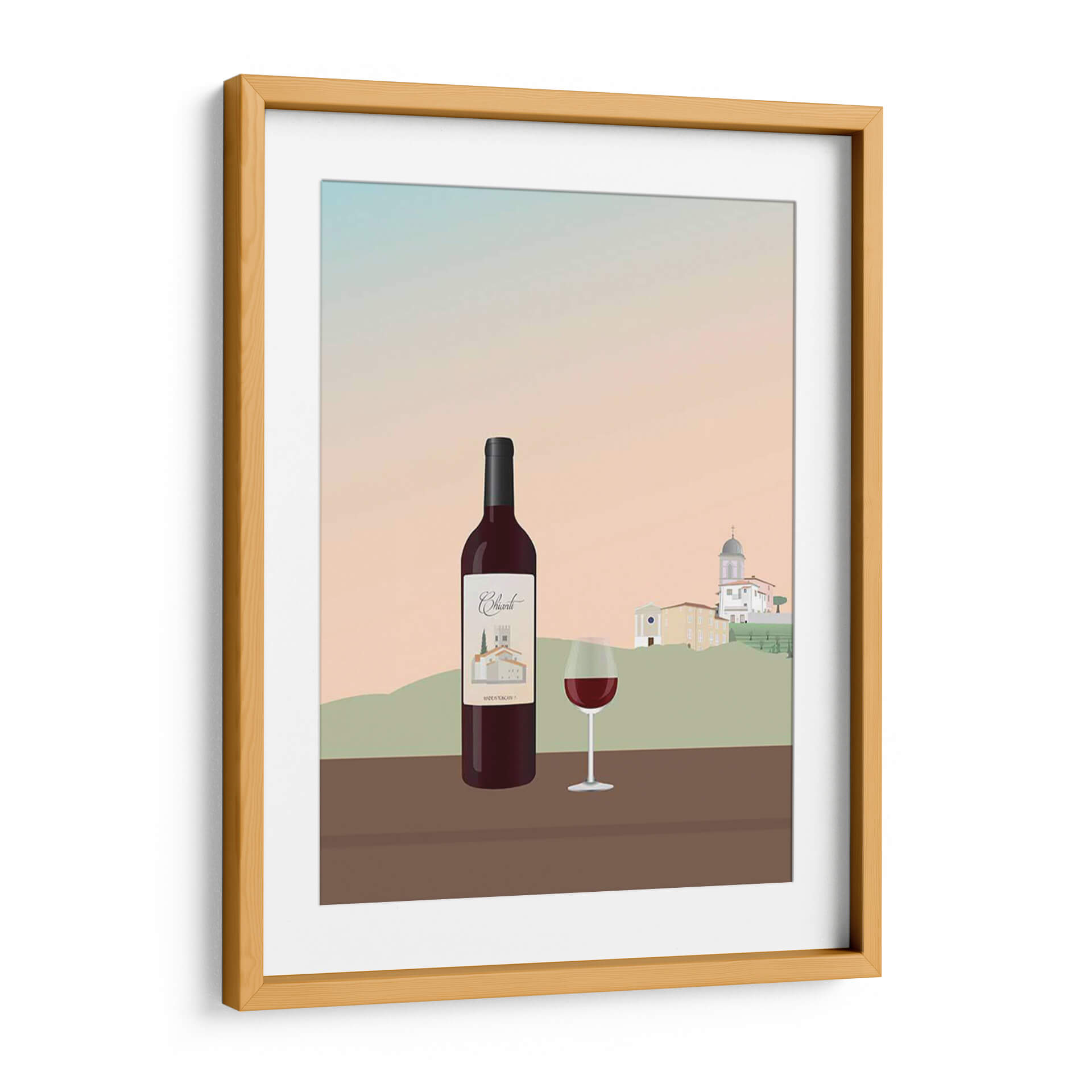 Sumérgete en la esencia de la Toscana con "Vino Toscano I", una cautivadora obra de arte que captura la serenidad de una tarde italiana. Este cuadro decorativo presenta una botella de vino tinto y una copa rebosante, dispuestas elegantemente sobre una superficie que evoca una mesa rústica. Al fondo, un paisaje ondulado de colinas verdes se alza, coronado por una pintoresca arquitectura que recuerda a los pueblos toscanos, con detalles de cúpulas y edificios que insinúan una rica historia y cultura. La paleta de colores es suave y evocadora, con un degradado que va desde un azul cielo pálido hasta tonos cálidos de melocotón y rosa en el horizonte, creando una atmósfera de paz y calidez. El estilo de la ilustración es limpio y minimalista, con líneas definidas y un enfoque en la composición equilibrada. "Vino Toscano I" es ideal para añadir un toque de sofisticación y tranquilidad a tu sala de estar, comedor u oficina, invitando a la contemplación y al disfrute de los placeres sencillos de la vida. Perfecto para amantes del vino y aquellos que buscan una decoración de pared que combine elegancia y un sutil toque de escapismo.