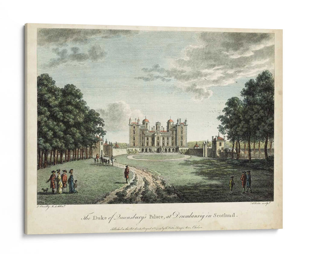 Sumérgete en la majestuosidad de "Vistas Vatios I", una obra de arte que captura la grandiosidad de un palacio escocés con una perspectiva encantadora. Este cuadro decorativo te transportará a través de su detallada representación de la arquitectura clásica, rodeada de exuberantes árboles y un cielo nublado que añade dramatismo a la escena. La paleta de colores, dominada por tonos verdes, azules y ocres, evoca una sensación de serenidad y elegancia atemporal. La composición, con figuras humanas paseando por los jardines y caballos en la distancia, añade vida y movimiento, invitando al espectador a imaginar la historia detrás de este lugar. Ideal para quienes buscan añadir un toque de historia y sofisticación a su hogar u oficina, este cuadro es una pieza que inspira admiración y conversación. Perfecto para salones, estudios o incluso como un punto focal en un comedor, "Vistas Vatios I" es más que una simple decoración, es una ventana a un mundo de belleza y arquitectura clásica que enriquecerá cualquier espacio.