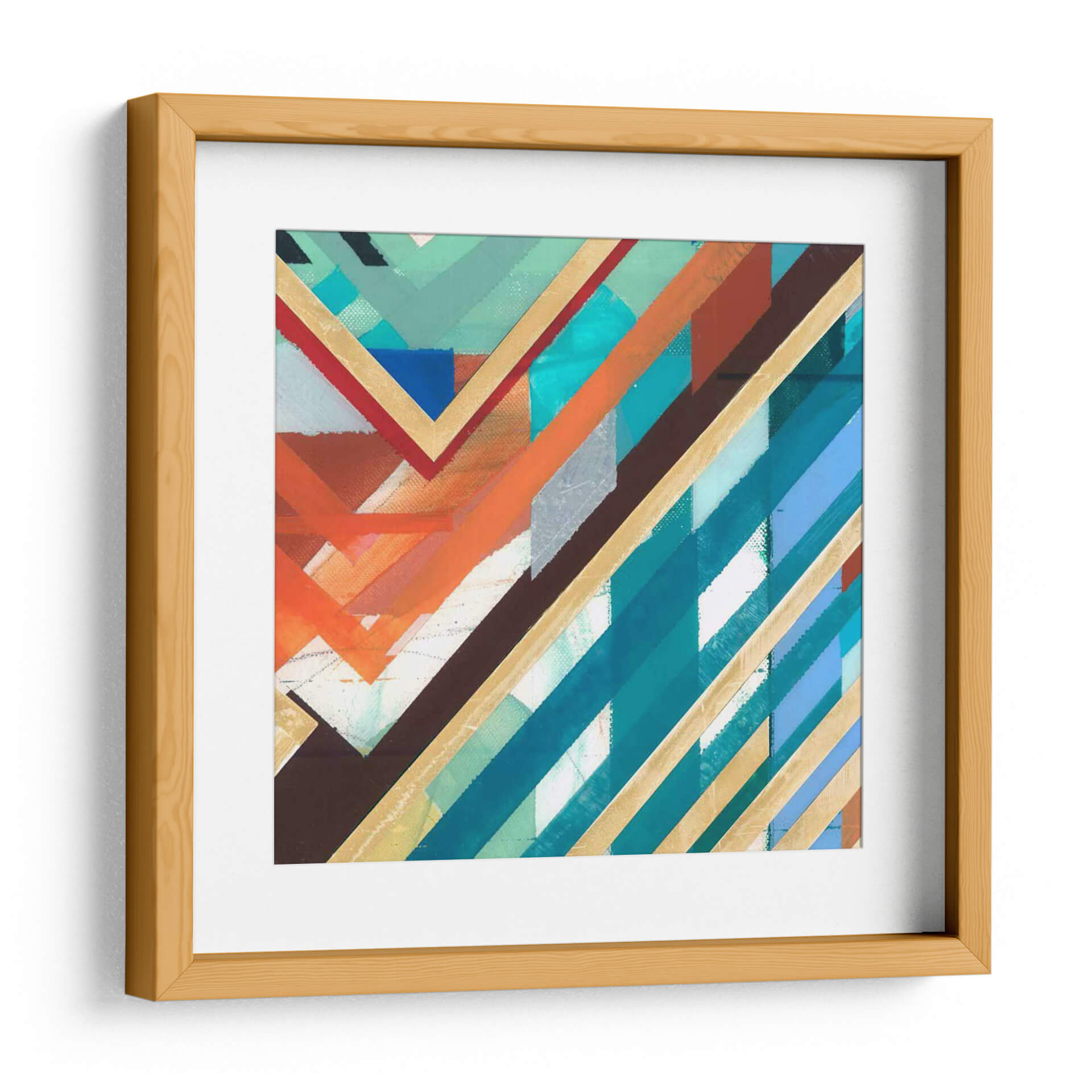 Sumérgete en la energía dinámica del cuadro decorativo 'Zig Zag III' de Thomas Brown. Esta obra abstracta cautiva con su intrincada composición de líneas diagonales y formas geométricas, creando una sensación de movimiento y profundidad. La vibrante paleta de colores, que oscila entre azules profundos, verdes turquesa, naranjas intensos y toques de dorado, aporta vida y carácter a cualquier espacio. Cada trazo y capa de color invita a la contemplación, sugiriendo una narrativa visual que estimula la imaginación. Ideal para salones modernos, oficinas o cualquier ambiente que busque un acento contemporáneo y sofisticado, 'Zig Zag III' no es solo una pieza decorativa, sino una ventana a la abstracción audaz y expresiva. Su diseño moderno y atrevido lo convierte en el punto focal perfecto para romper la monotonía y añadir un toque de arte vanguardista a tu hogar. Descubre la fusión perfecta entre color, forma y emoción en este impresionante cuadro decorativo que redefine el arte de pared.