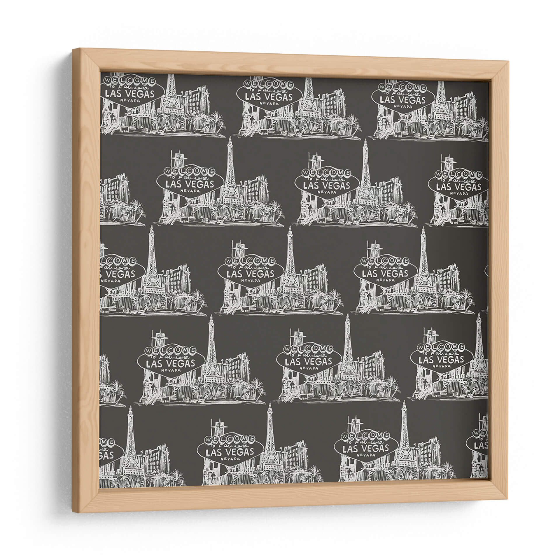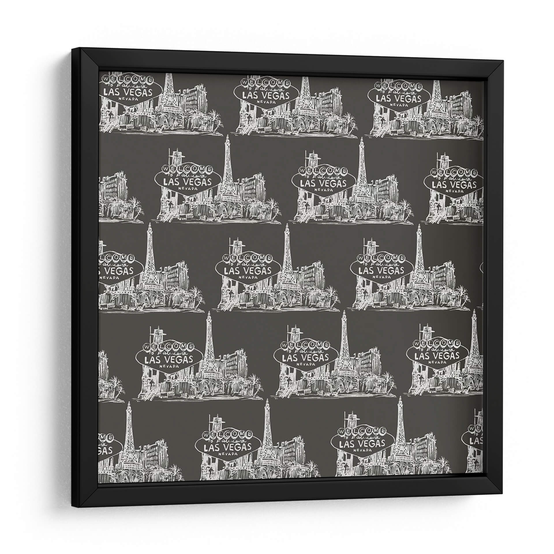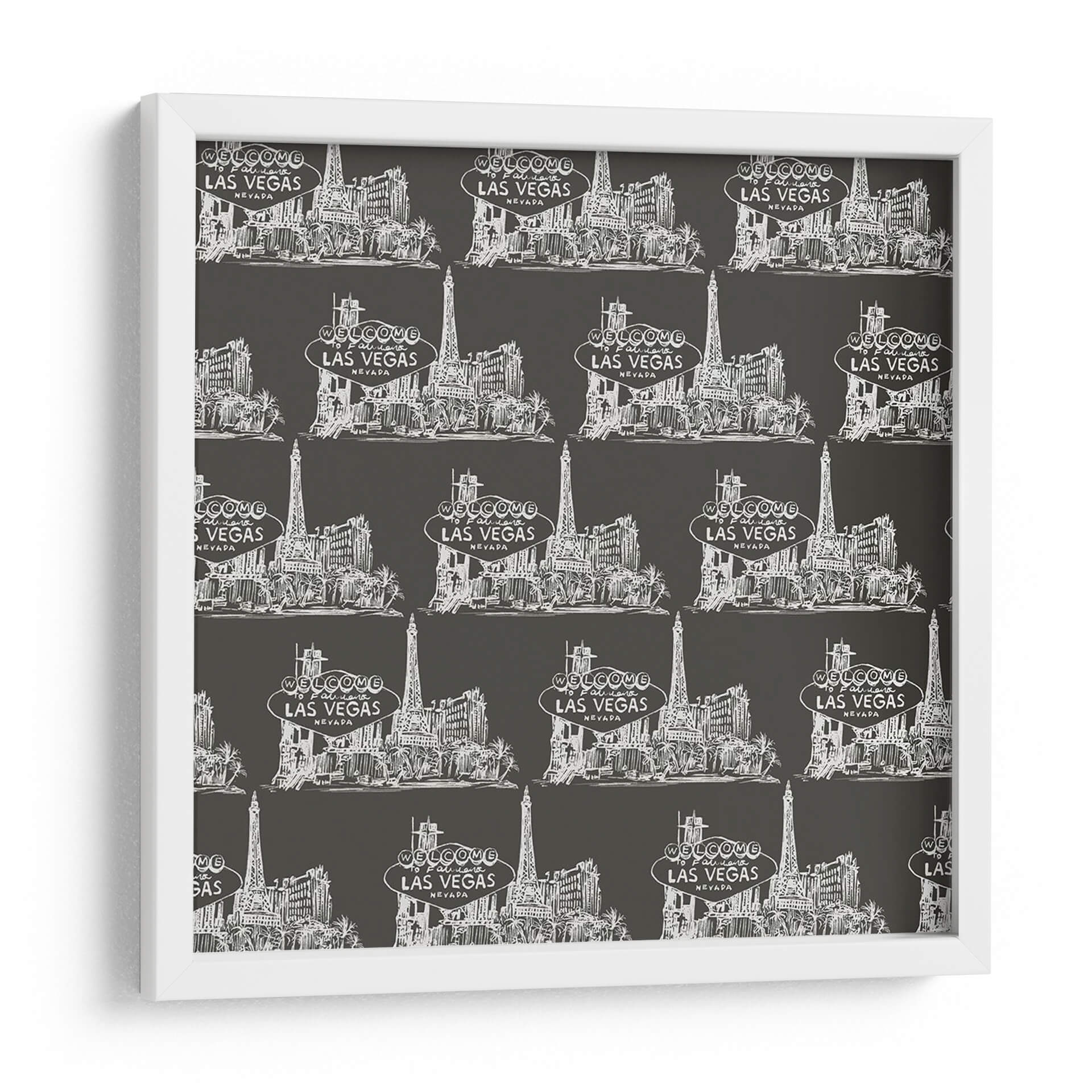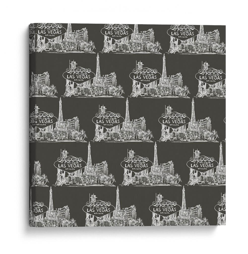 Captura la esencia vibrante de Las Vegas con este cautivador cuadro decorativo, "Colección Viva Vegas H" de Melissa Wang. Esta obra de arte presenta un patrón repetitivo y estilizado de la icónica silueta de Las Vegas, con sus emblemáticos edificios y el famoso letrero "Welcome to Fabulous Las Vegas". La paleta de colores, dominada por un fondo oscuro y los detalles en blanco nítido, crea un contraste dramático y moderno que aporta sofisticación a cualquier espacio. El estilo de ilustración a mano alzada, con un toque de croquis, le confiere una autenticidad y un encanto únicos, evocando la energía y el glamour de la ciudad. Ideal para salas de estar, oficinas o cualquier lugar donde se desee añadir un toque de audacia y estilo contemporáneo. Este cuadro decorativo no solo embellece tu pared, sino que también sirve como un recordatorio de la emoción y el entretenimiento, convirtiéndose en un punto focal que invita a la conversación y al asombro. La repetición del diseño añade un ritmo visual interesante, perfecto para quienes buscan una pieza de arte con carácter y personalidad.