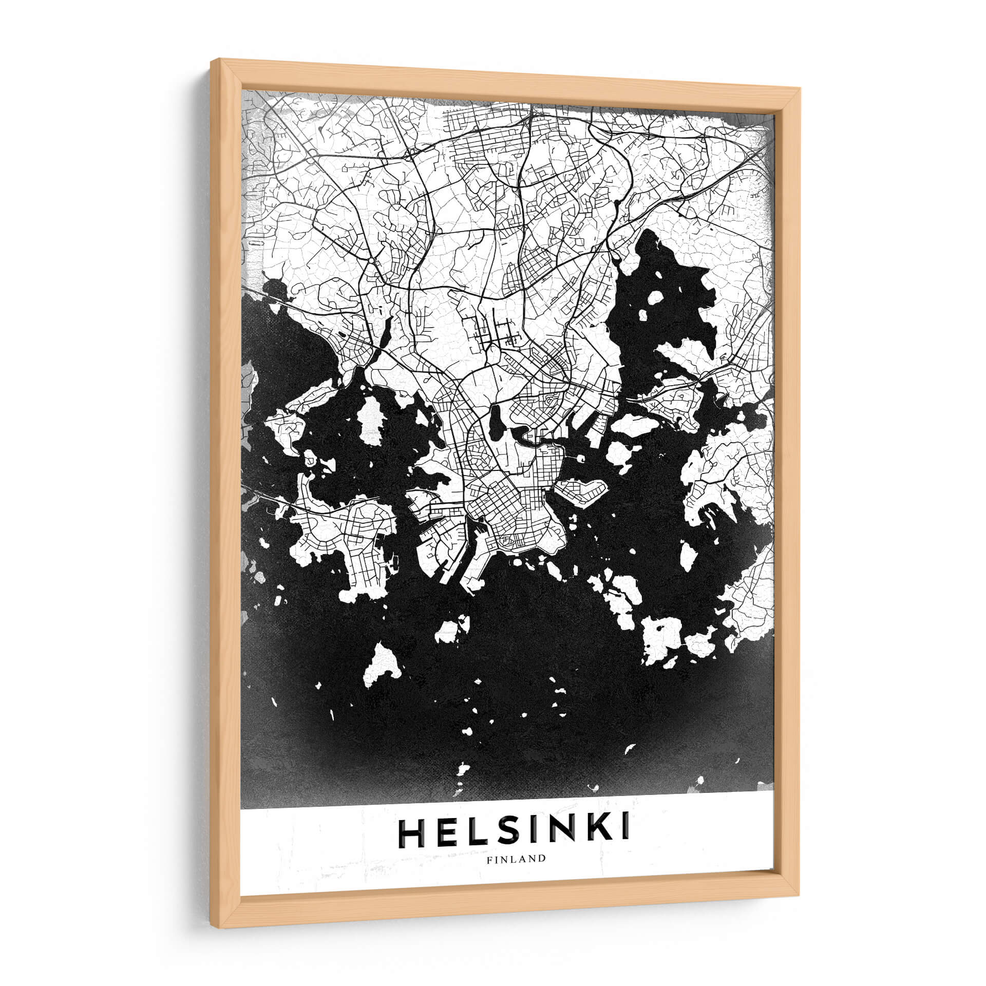 Emb c c Este mapa estilizado de Helsinki, Finlandia, captura la esencia de la capital báltica con un diseño moderno y minimalista. En blanco y negro, la obra de StudioSix presenta una intrincada red de calles y la distintiva costa de la ciudad, donde las aguas del mar Báltico se encuentran con la tierra. La paleta monocromática, con sus fuertes contrastes entre el blanco de las áreas urbanas y el negro profundo del agua, crea una atmósfera de sofisticación y calma. Es una pieza de arte contemporáneo que evoca la exploración urbana y la conexión con el entorno geográfico. Ideal para añadir un toque de elegancia intelectual y un punto de referencia geográfico a cualquier espacio, ya sea una sala de estar moderna, un estudio o una oficina. Este cuadro decorativo "Helsinki, Blanco" no solo decora, sino que también invita a la contemplación, transformando cualquier pared en una ventana a la arquitectura y la geografía de una de las ciudades más fascinantes del norte de Europa. Su diseño limpio lo hace versátil, complementando una amplia gama de estilos decorativos, desde el escandinavo hasta el industrial o contemporáneo, asegurando que se convierta en un punto focal de conversación.