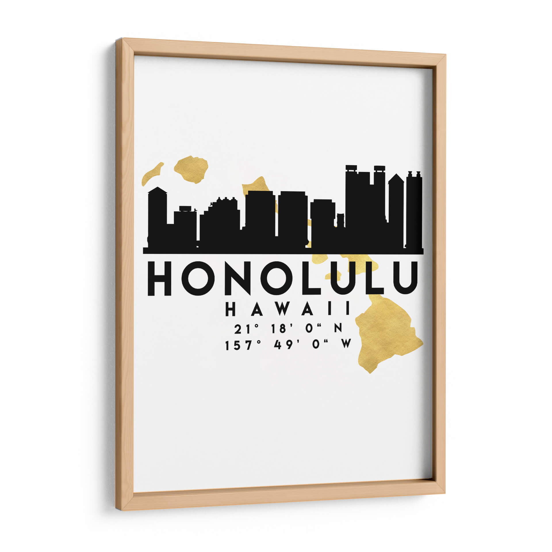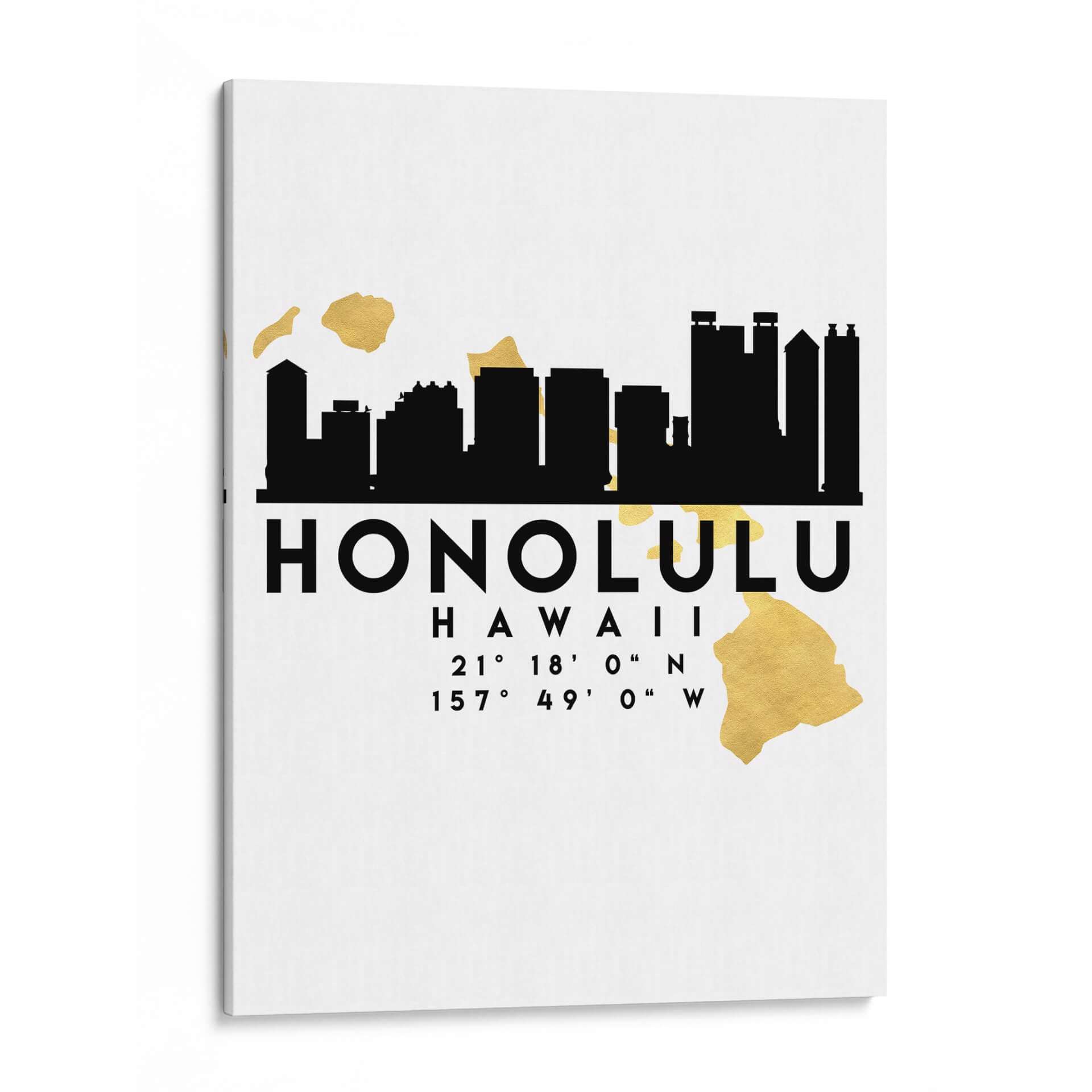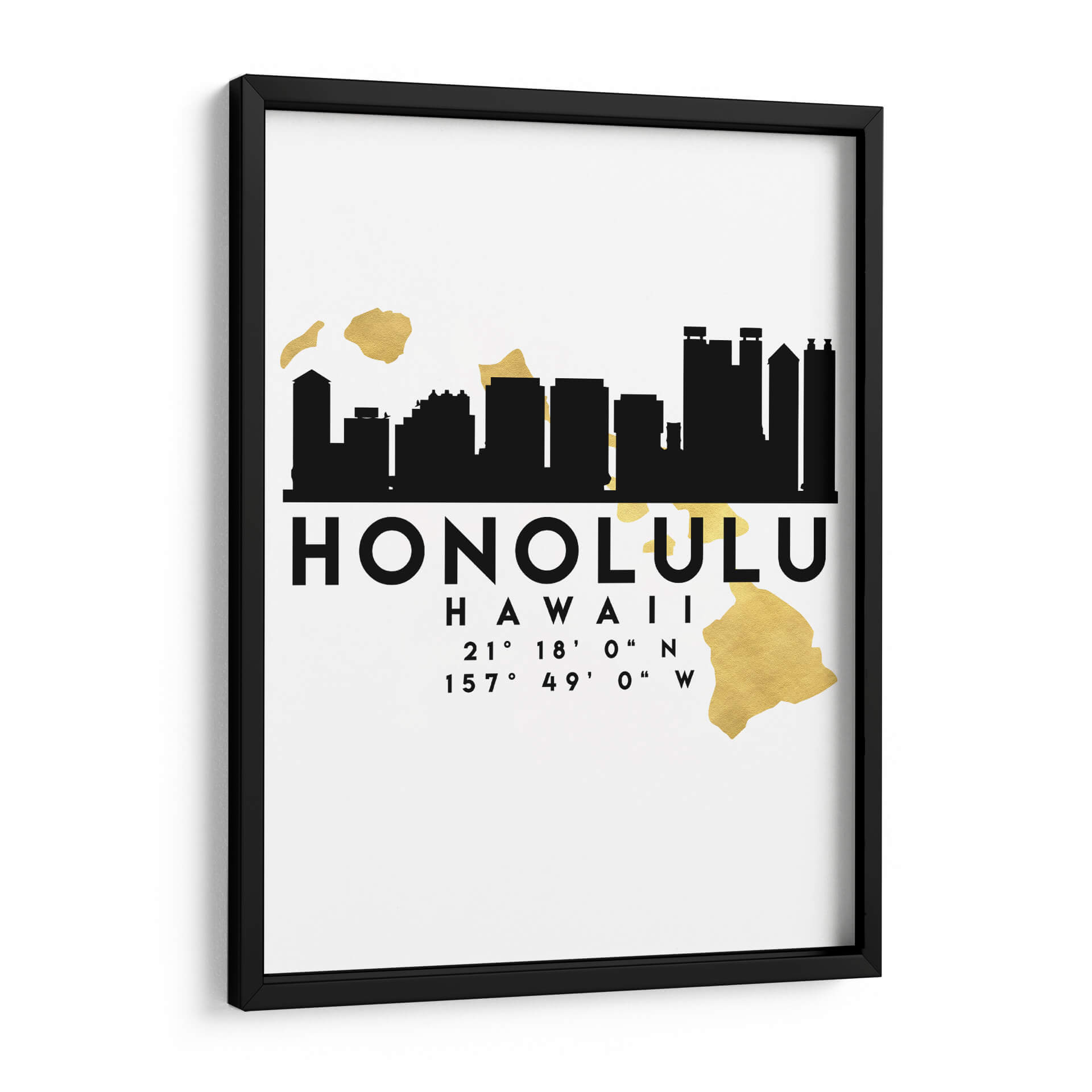 Emb uevo en un viaje visual a la vibrante ciudad de Honolulu con este cautivador cuadro decorativo. La obra presenta una estilizada silueta en negro de su emblemático horizonte, que evoca la energía y el dinamismo de esta joya hawaiana. Acompañando a la silueta, se despliegan sutiles mapas de las islas en un elegante acabado dorado, a tildeadiendo un toque de lujo y sofisticaci uevo0n. La paleta de colores, predominantemente blanco, negro y dorado, crea un contraste moderno y atemporal, ideal para integrarse en una variedad de estilos decorativos, desde el contempor uevo0neo hasta el minimalista. Las coordenadas geogr uevo0ficas de la ciudad an uevo0aden un detalle intrigante y personal, perfecto para aquellos que aprecian los elementos de dise uevo0o con significado. Este cuadro decorativo no solo embellece tu espacio, sino que tambi uevo0n cuenta una historia, sirviendo como un recordatorio de aventuras pasadas o inspirando sue uevo0os de futuros viajes. Es una pieza vers uevo0atil que puede actuar como un punto focal en tu sala de estar, aportar car uevo0cter a tu oficina o infundir serenidad en tu dormitorio. La composici uevo0n limpia y el contraste marcado aseguran que esta obra destaque, aportando un toque de distinci uevo0n y car uevo0cter uevo0nico a cualquier habitaci uevo0n. Dale vida a tus paredes con el esp uevo0ritu de Honolulu.