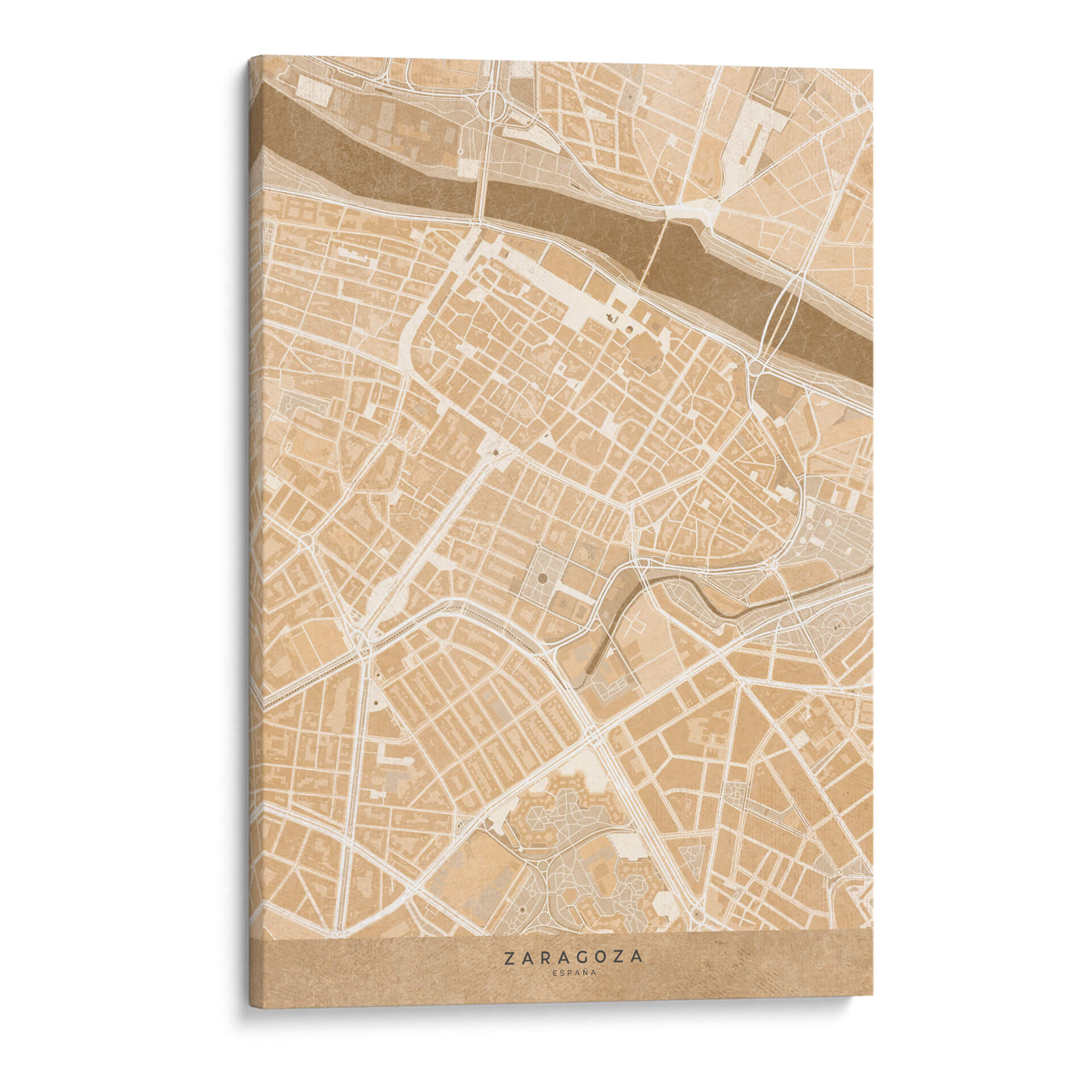 Mapa del centro de Zaragoza (España) en estilo vintage sepia - Rosana Laiz Blursbyai