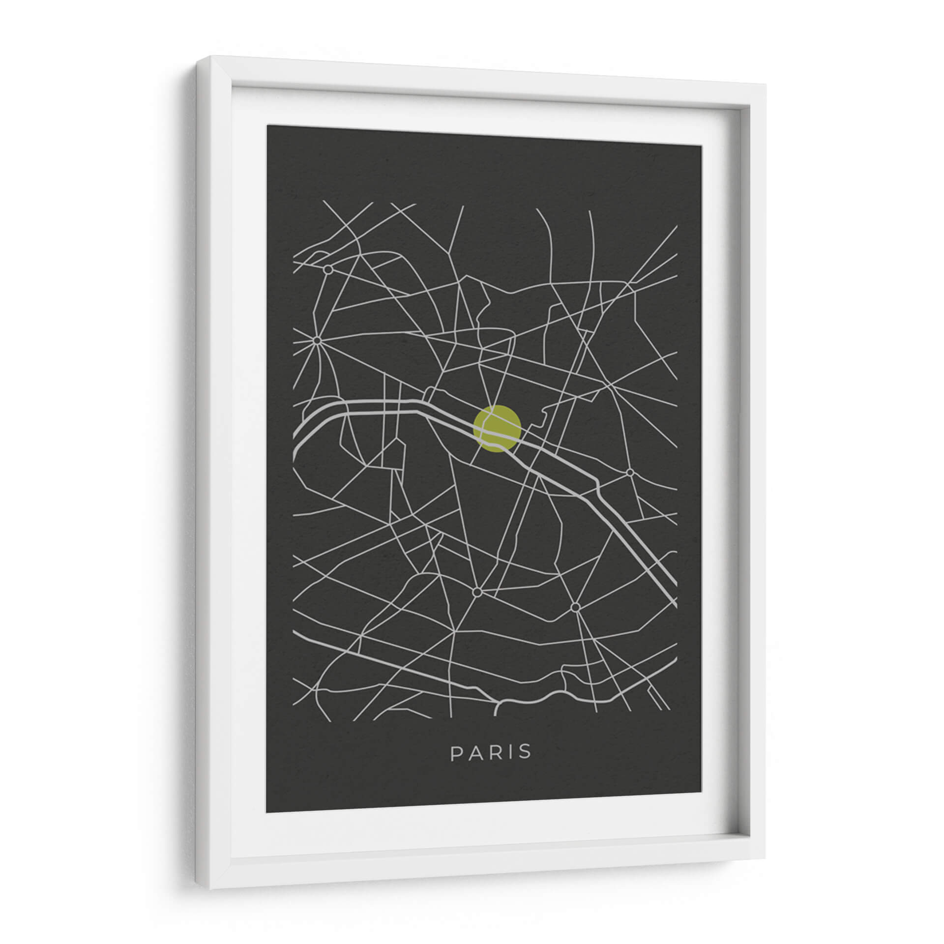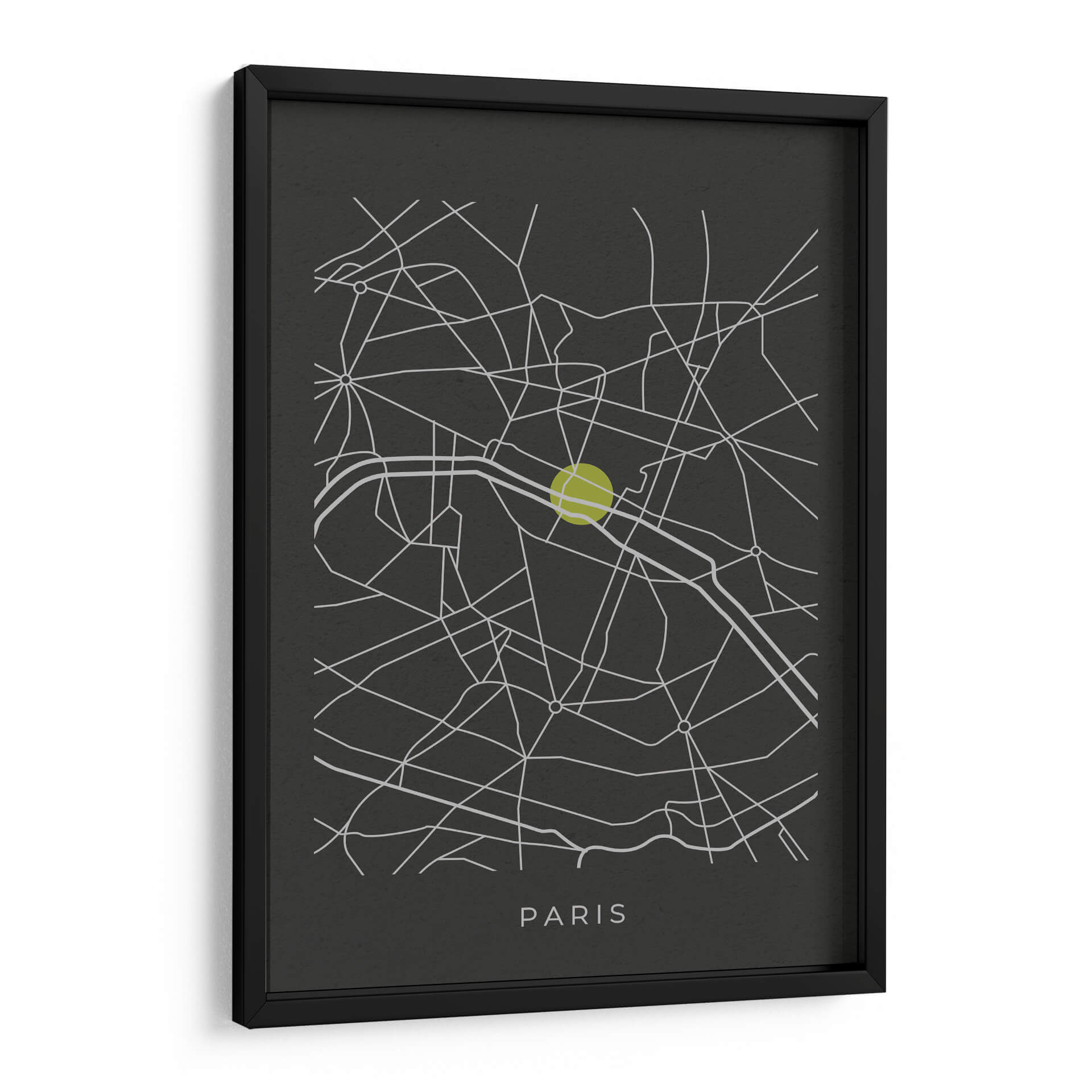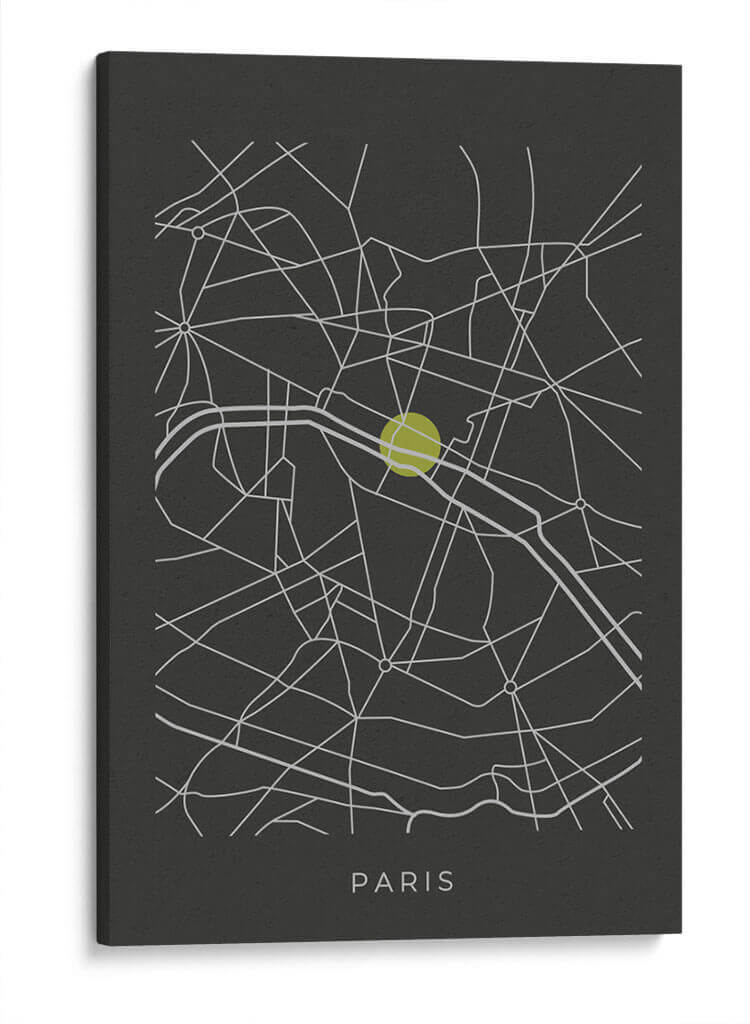 Descubre la esencia urbana de París con este cautivador cuadro decorativo, una representación artística del mapa de la ciudad. La obra presenta una intrincada red de calles y el icónico río Sena, delineados en finas líneas blancas sobre un fondo oscuro y sofisticado. Un distintivo círculo en tono lima actúa como un punto focal moderno, añadiendo un toque de color vibrante a la composición minimalista. Este cuadro abstracto de mapa de París es ideal para quienes buscan infundir un sentido de viaje, descubrimiento o nostalgia en su hogar u oficina. Su diseño contemporáneo y elegante lo convierte en una pieza versátil, perfecta para salas de estar modernas, estudios de diseño, o como un detalle inspirador en un dormitorio o recibidor. La paleta de colores neutros, realzada por el acento brillante, permite que esta obra se integre fácilmente en diversas decoraciones, aportando un aire de sofisticación cosmopolita y un toque de aventura urbana. Aporta un pedazo de la 'Ciudad de la Luz' a tu espacio con este distintivo mapa artístico.