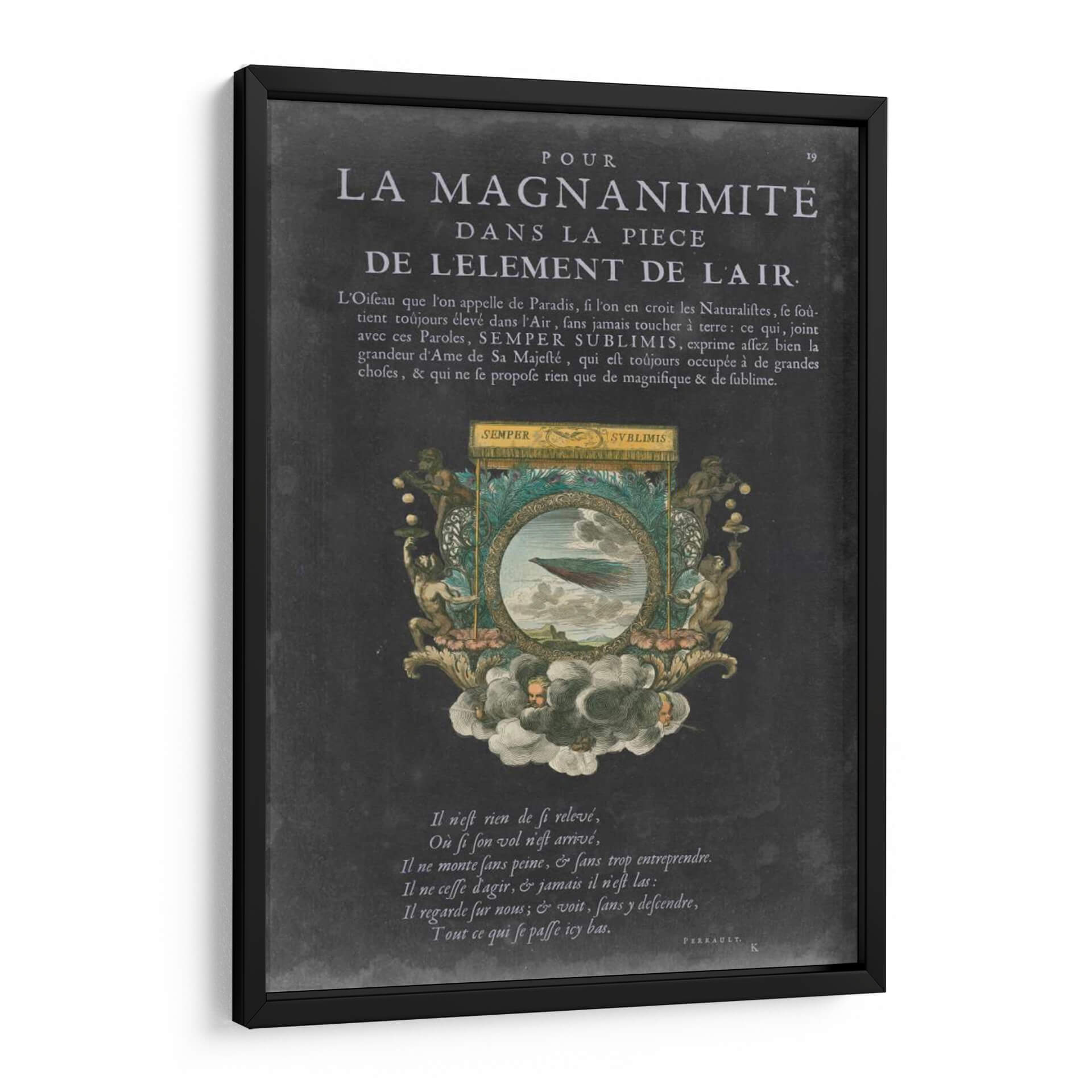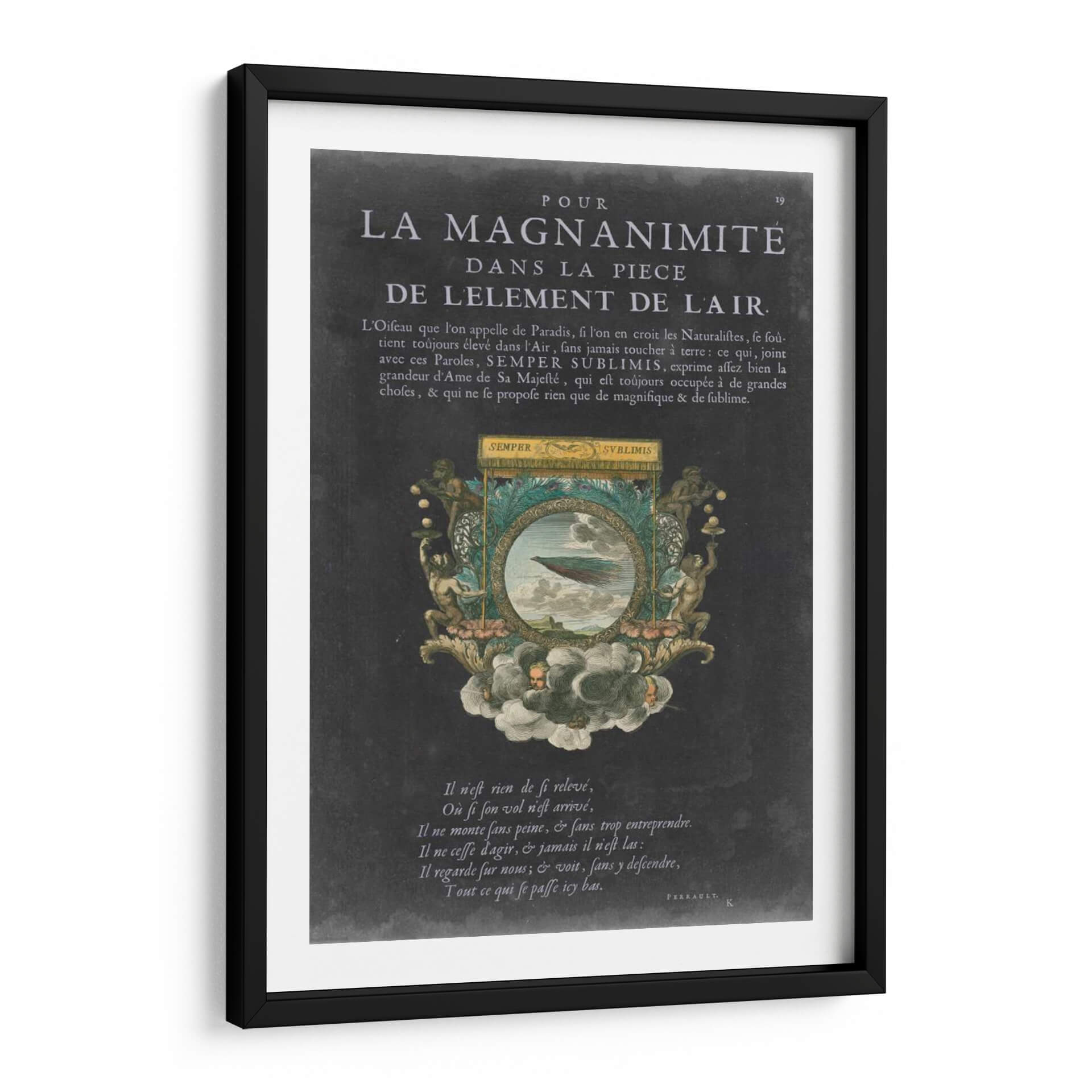 Sumérgete en la opulencia visual de "Bookplate Vintage Iii", una obra maestra del Vision Studio que evoca la magnificencia y lo sublime. Este cuadro decorativo se presenta sobre un fondo oscuro, casi como un lienzo de terciopelo, sobre el cual se despliega un medallón ornamentado de estilo barroco. En su interior, una delicada ilustración muestra un pájaro en pleno vuelo a través de un cielo nublado, rodeado de intrincados detalles dorados y elementos alegóricos. Figuras mitológicas o querubines sostienen esferas y ornamentos, añadiendo una capa de misticismo y grandiosidad. La paleta de colores se centra en tonos ricos y profundos, con acentos de verde esmeralda, azul cielo y toques dorados que contrastan elegantemente con el fondo carbón. Esta pieza, que emana una atmósfera de erudición y esplendor, es perfecta para añadir un toque de sofisticación clásica a tu estudio, biblioteca o sala de estar. Su diseño intrincado y su temática evocadora invitan a la contemplación, convirtiéndola en un punto focal memorable para cualquier espacio que busque distinción y un aire de antigüedad revisitada.