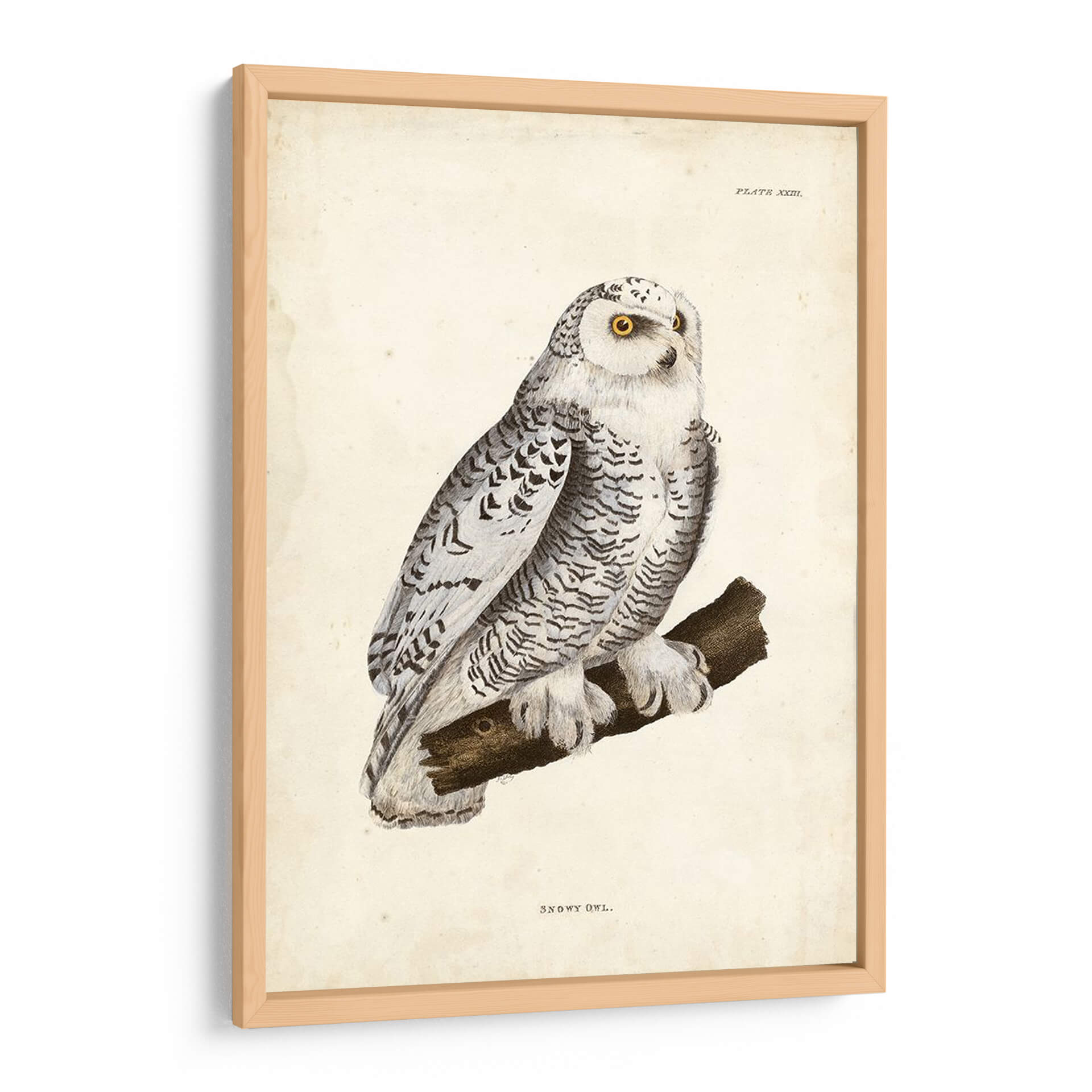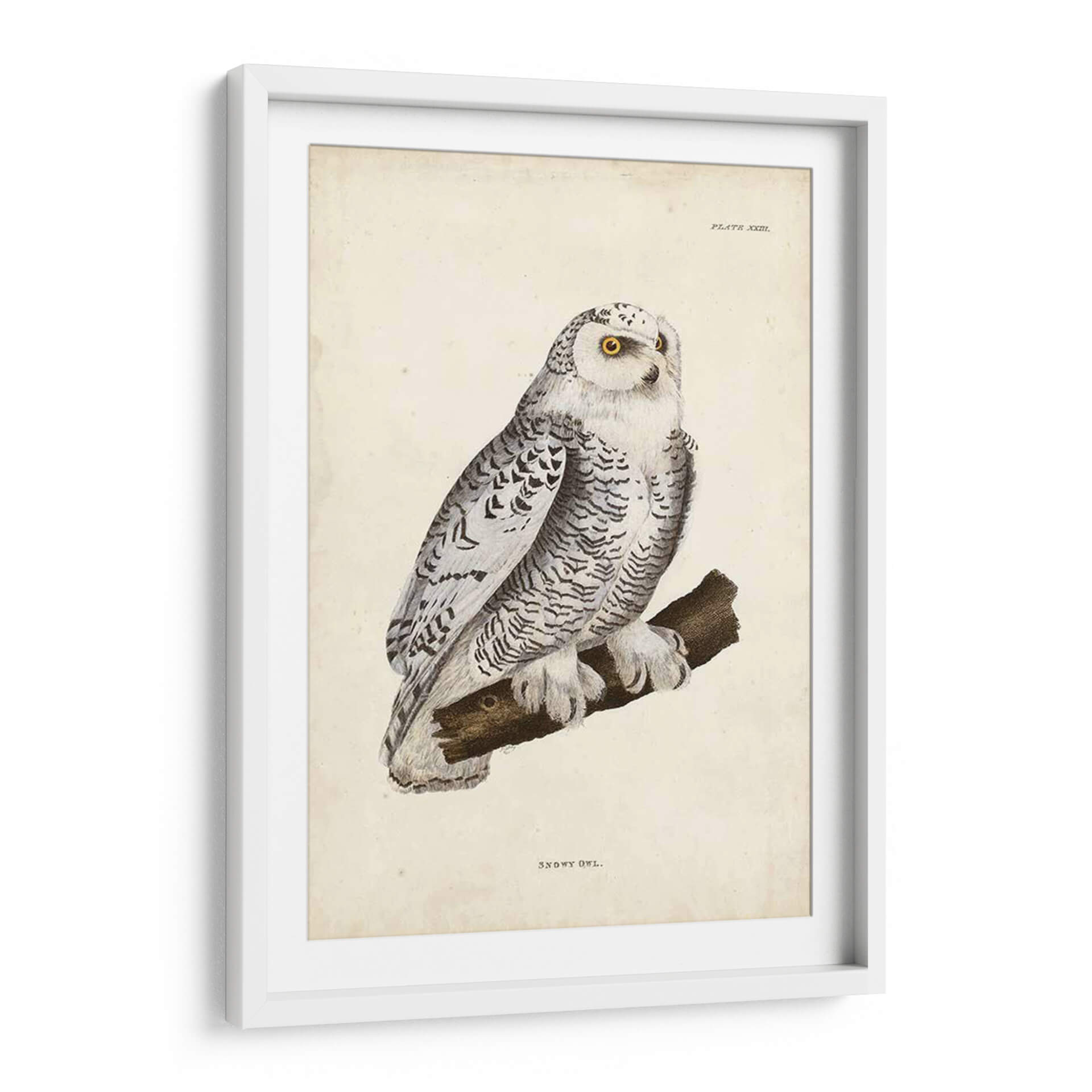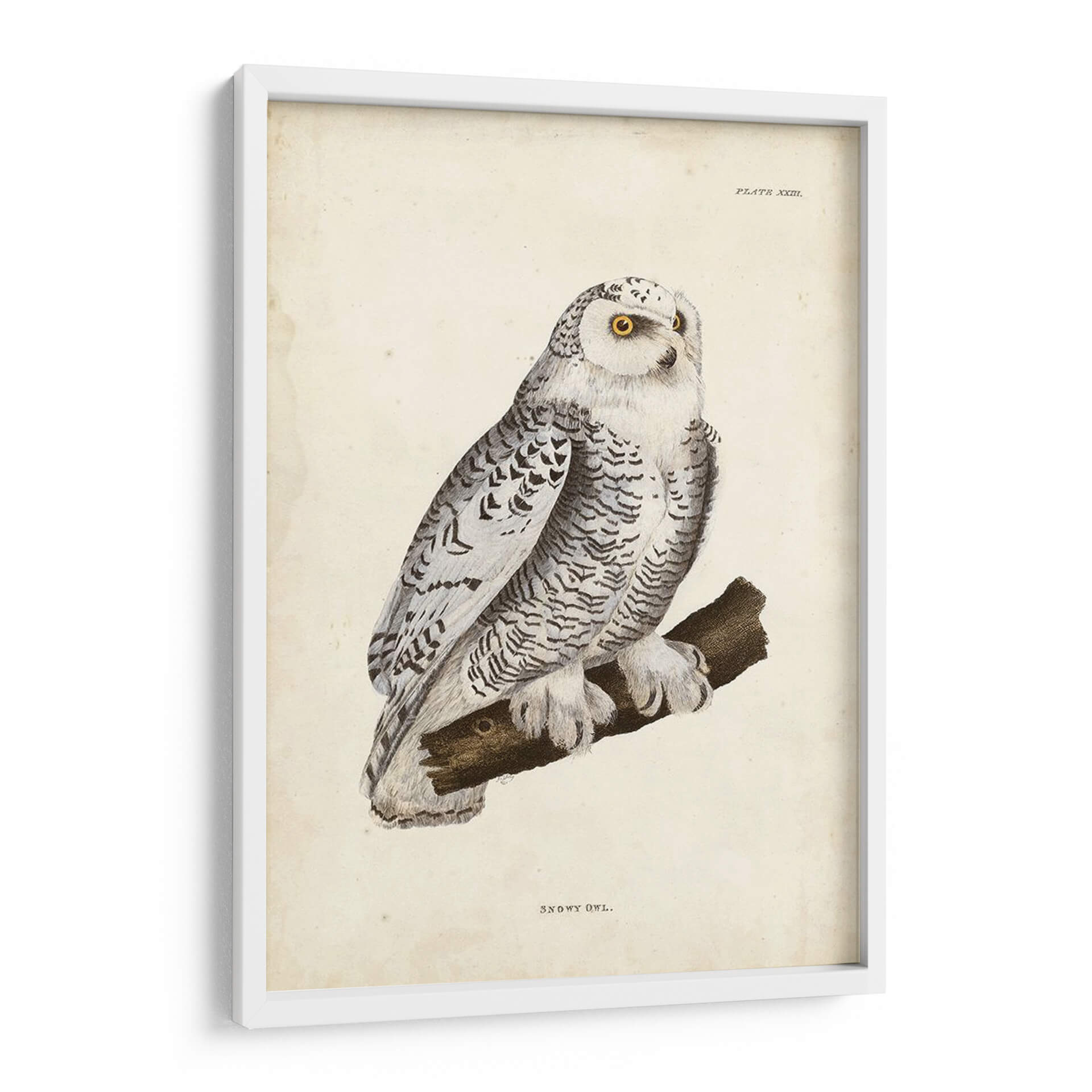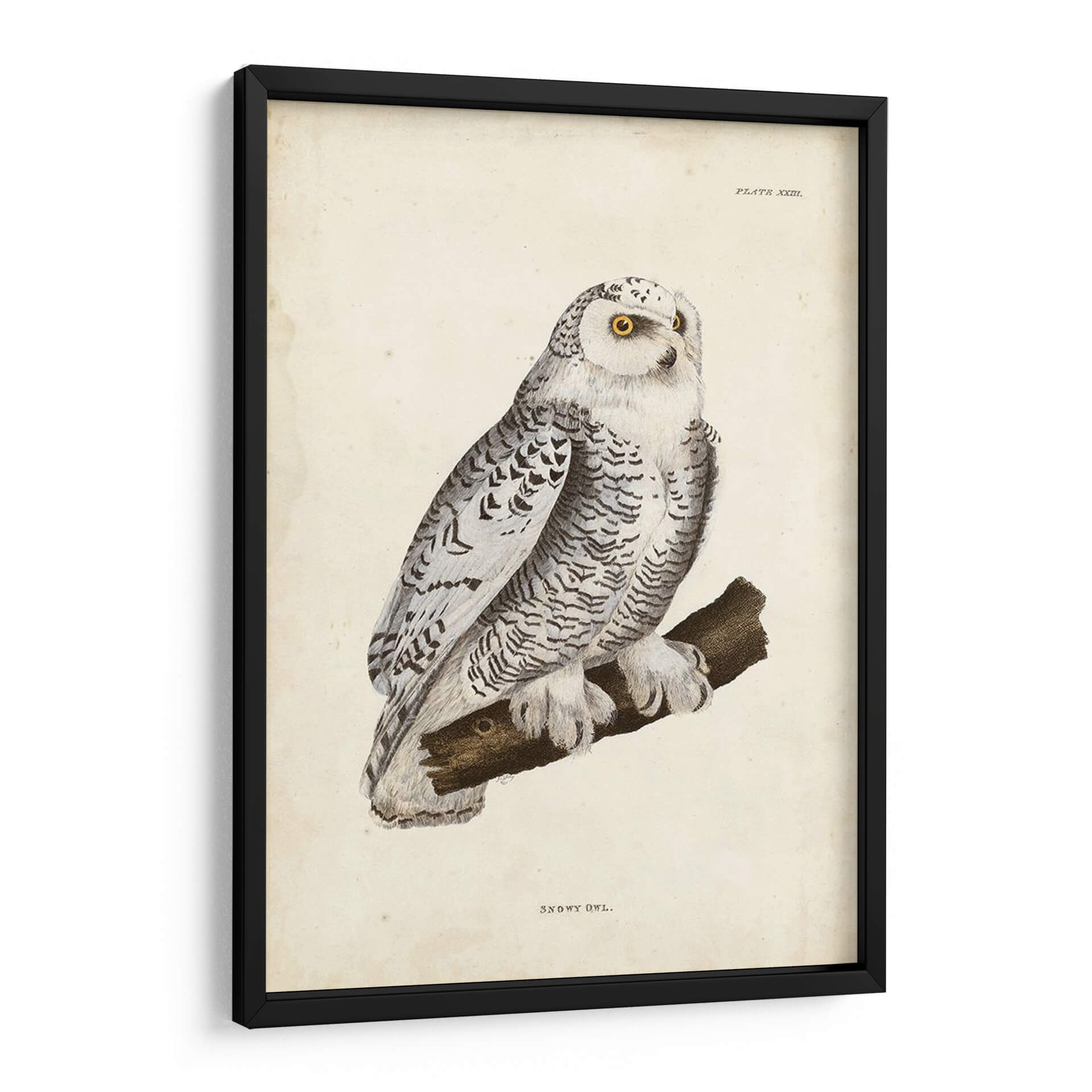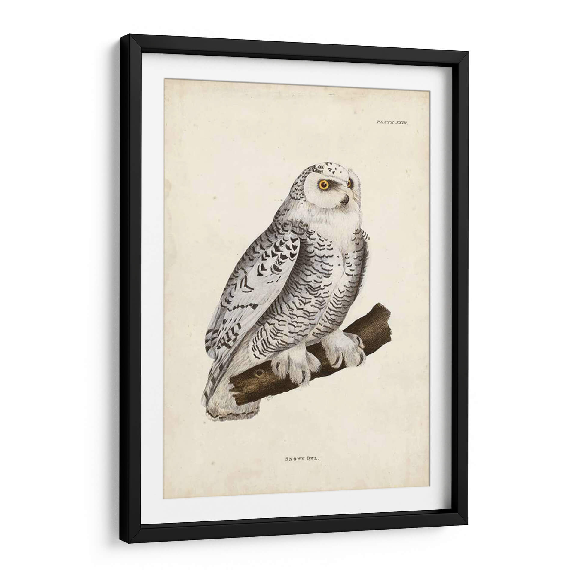 Emb acrcate en un viaje visual con este exquisito cuadro decorativo de un "Búho Nevado", una obra que captura la majestuosidad y el misterio de la naturaleza. El artista John Selby nos presenta una representación detallada de esta rapaz nocturna, posada con serenidad sobre una rama. La paleta de colores se centra en tonos fríos y neutros, predominando el blanco, grises y negros, que aportan una sensación de calma y elegancia. El sutil toque de amarillo vibrante en los ojos del búho añade un punto focal cautivador, atrayendo la mirada y generando una conexión profunda con la pieza. La composición es clásica y equilibrada, destacando la figura del búho contra un fondo texturizado que evoca un pergamino antiguo, confiriéndole un aire atemporal. El estilo de ilustración detallada, casi científica, pero con una sensibilidad artística innegable, hace que esta obra sea perfecta para espacios que buscan un toque de sofisticación y un guiño a la vida salvaje. Ideal para salones, estudios u oficinas donde se desee infundir un ambiente de sabiduría, tranquilidad y belleza natural. Este cuadro decorativo es una invitación a contemplar la serenidad del invierno y la elegancia de uno de sus habitantes más enigmáticos, añadiendo profundidad y carácter a cualquier rincón de tu hogar o lugar de trabajo.