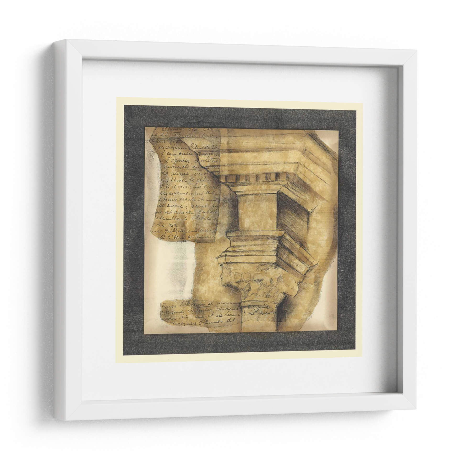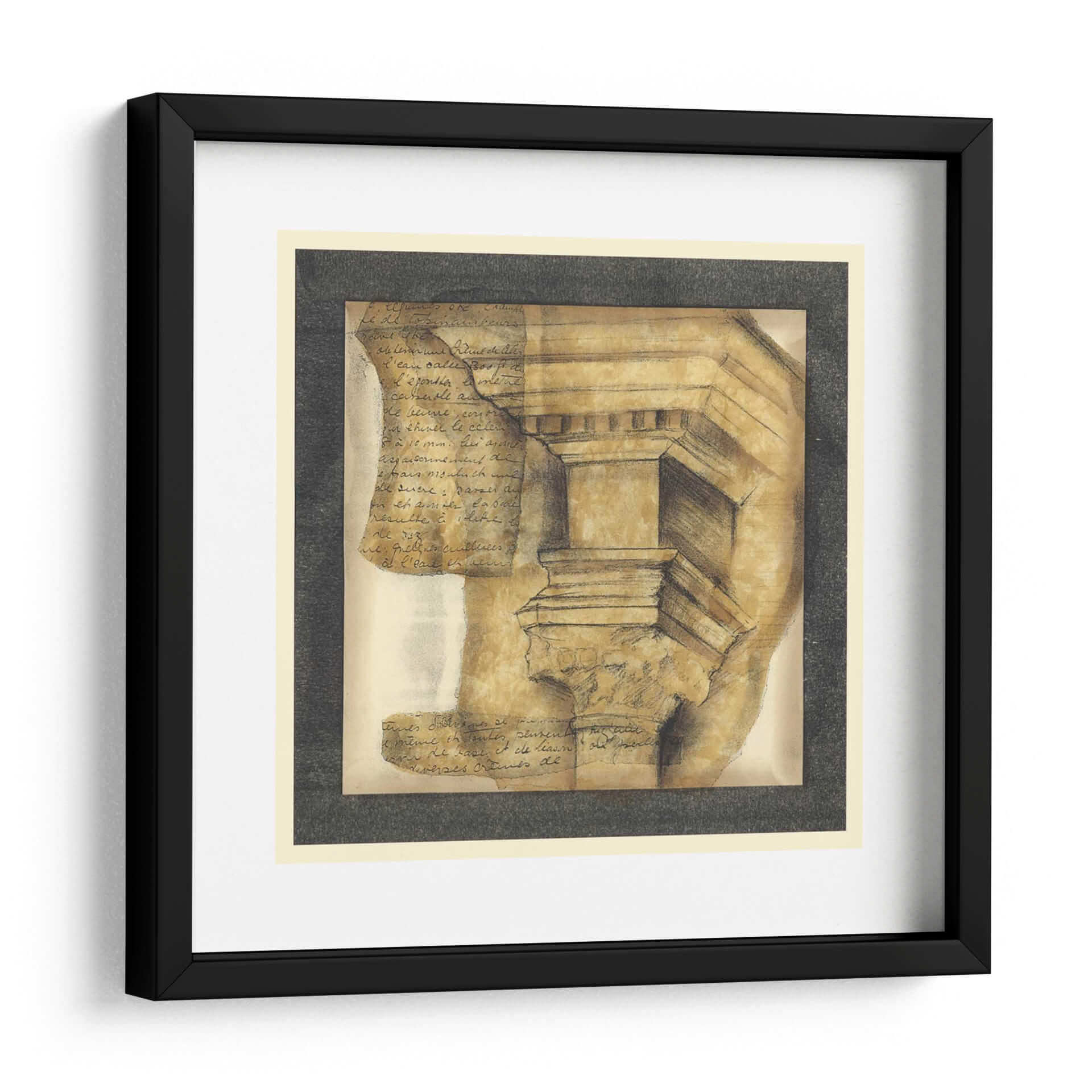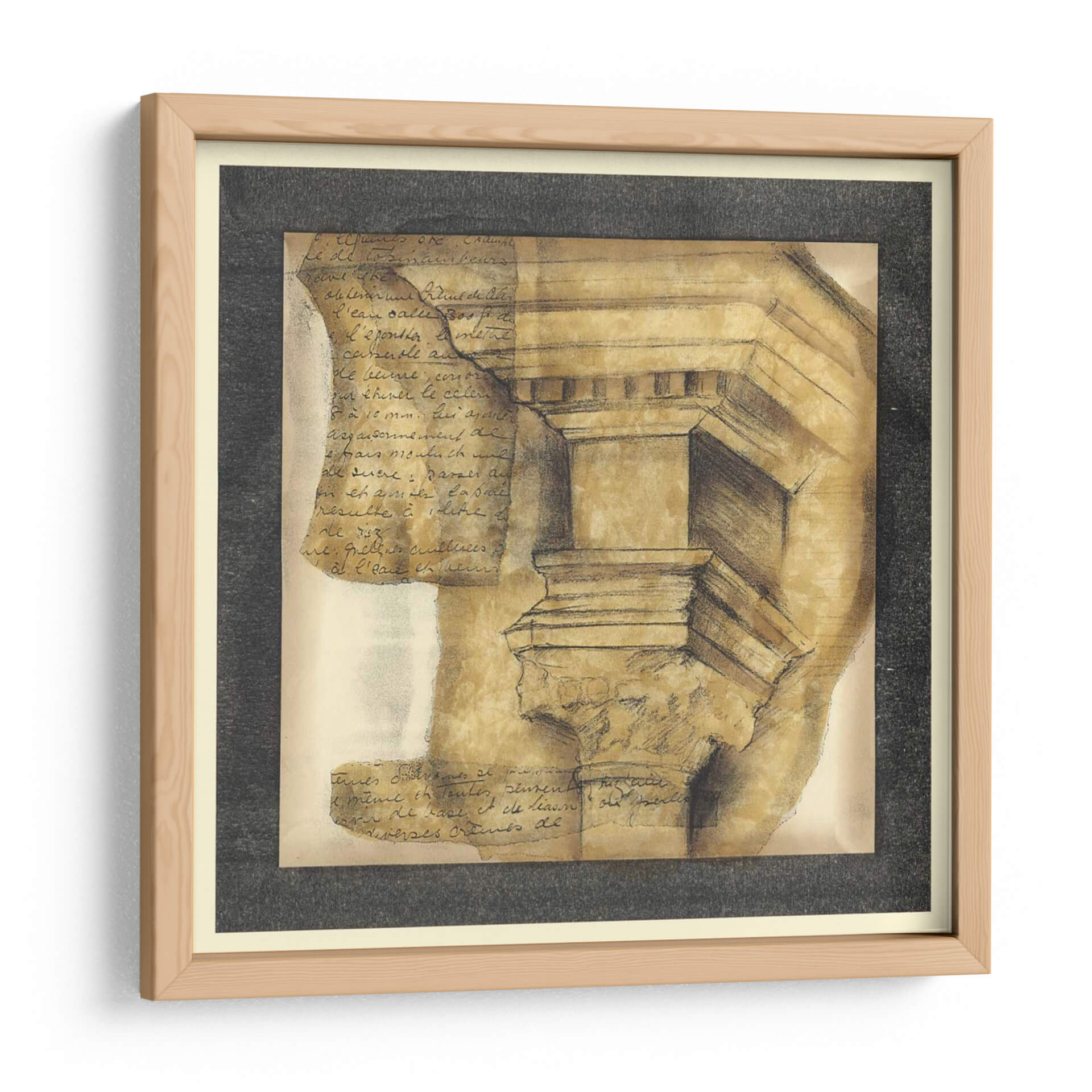 Sumérgete en la elegancia atemporal de "Capitales Antiguas IV", una cautivadora obra de arte que evoca la grandeza de la arquitectura clásica con un toque contemporáneo. La pieza presenta un detallado estudio de una capital de columna, dibujada con trazos seguros y sombreados que le otorgan profundidad y textura. Superpuestas a la imagen arquitectónica, se encuentran fragmentos de escritura antigua, añadiendo una capa de misterio y un aire de descubrimiento histórico. La paleta de colores, dominada por tonos tierra, ocres y sepia, crea una atmósfera cálida y sofisticada, perfecta para cualquier espacio que busque un toque de refinamiento intelectual. Este cuadro decorativo es ideal para estudios, bibliotecas o salas de estar, donde su presencia invita a la reflexión y al aprecio por la historia y el diseño. La composición, con su enfoque en los detalles arquitectónicos y el juego de luces y sombras, convierte esta obra en un punto focal de conversación y admiración. "Capitales Antiguas IV" no es solo una decoración, es una invitación a conectar con el legado del pasado a través del arte moderno.