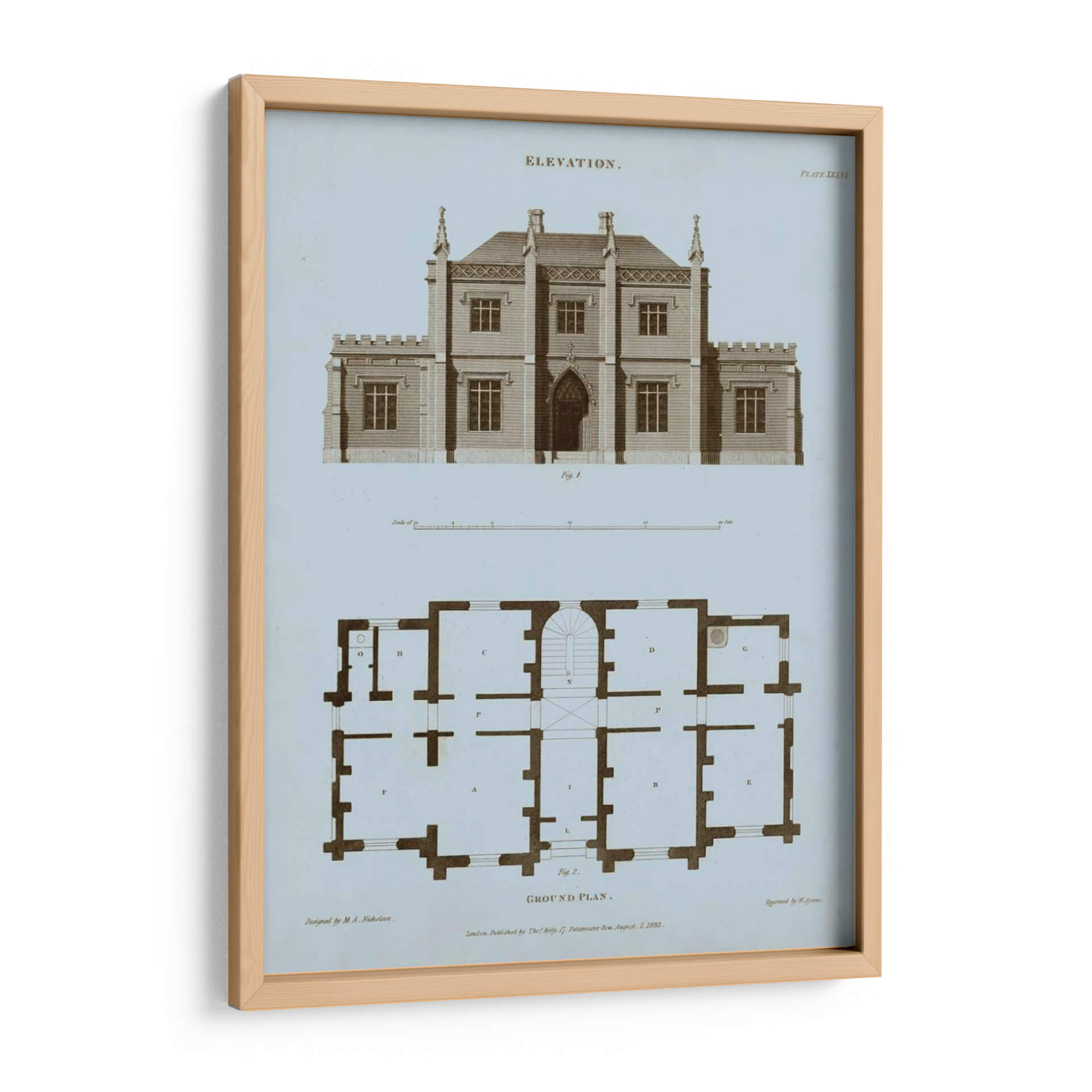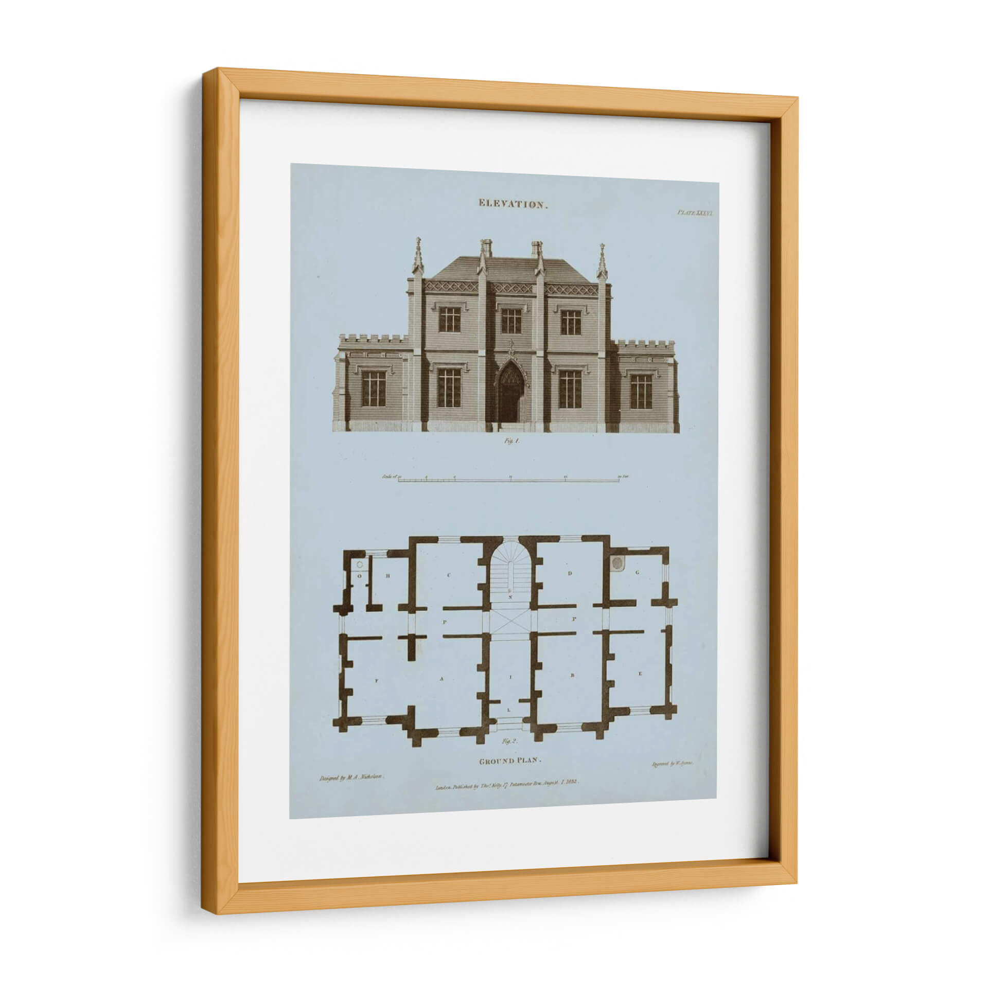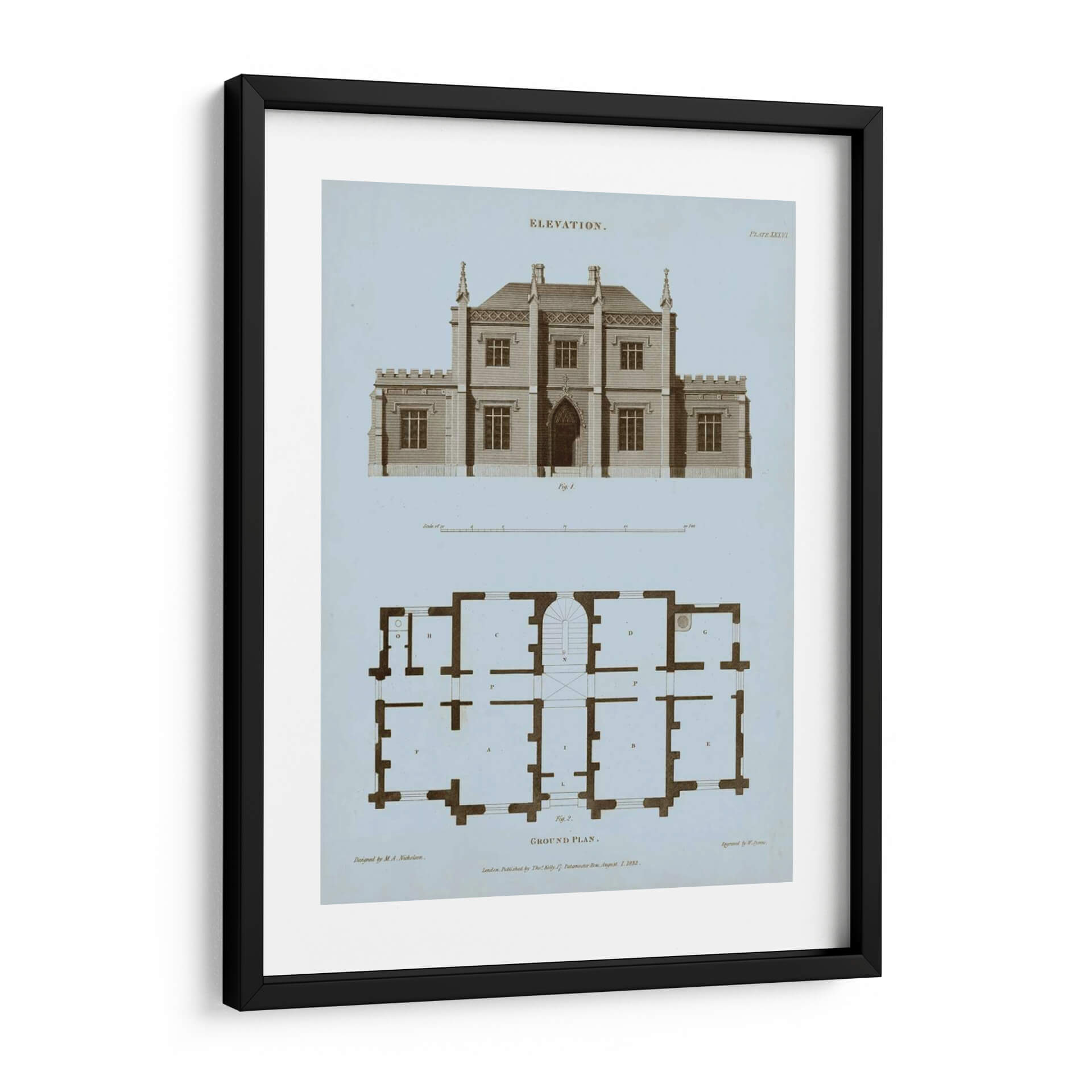 Descubra la elegancia arquitectónica con este cuadro decorativo que presenta una detallada elevación y planta de una estructura clásica. La obra, inspirada en el arte arquitectónico del siglo XIX, combina la precisión técnica con una estética atemporal. La paleta de colores, dominada por tonos sepia y un suave fondo azul pálido, evoca una sensación de historia y sofisticación. Los intrincados detalles de la fachada, incluyendo las ventanas, los tejados puntiagudos y la entrada principal, junto con la clara distribución de los espacios en la planta baja, invitan a la contemplación y al aprecio por el diseño. Este cuadro decorativo es perfecto para añadir un toque de distinción y cultura a su estudio, biblioteca u oficina. Su estilo arquitectónico lo hace ideal para interiores clásicos, eclécticos o incluso modernos que buscan un contraste intelectual y visual. Aporta una atmósfera de serenidad, orden y un profundo aprecio por la historia y la arquitectura.
