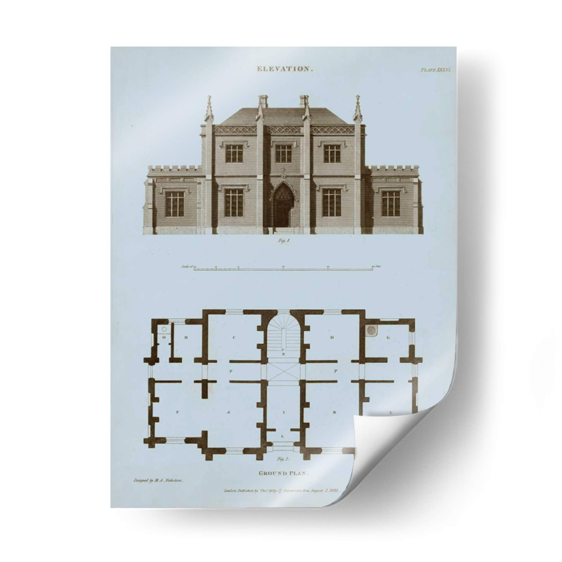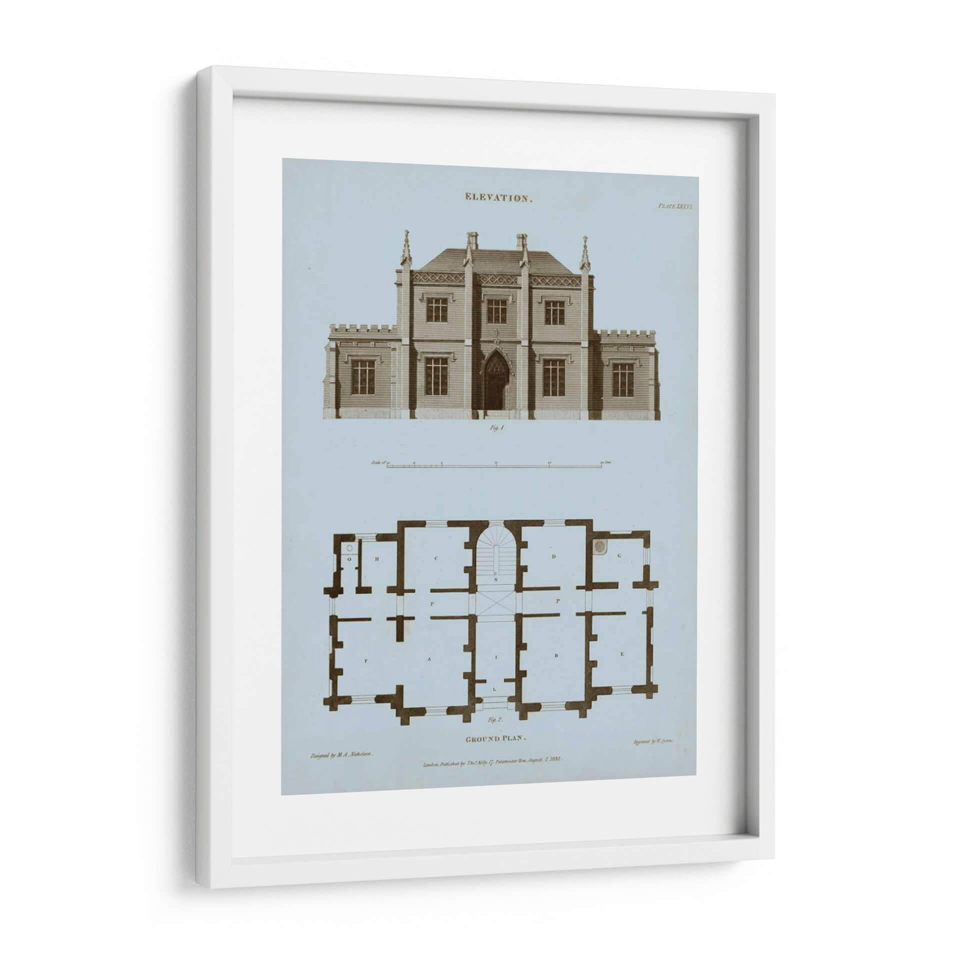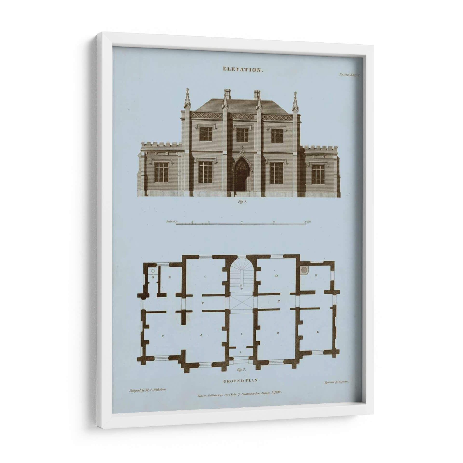 Descubra la elegancia arquitectónica con este cuadro decorativo que presenta una detallada elevación y planta de una estructura clásica. La obra, inspirada en el arte arquitectónico del siglo XIX, combina la precisión técnica con una estética atemporal. La paleta de colores, dominada por tonos sepia y un suave fondo azul pálido, evoca una sensación de historia y sofisticación. Los intrincados detalles de la fachada, incluyendo las ventanas, los tejados puntiagudos y la entrada principal, junto con la clara distribución de los espacios en la planta baja, invitan a la contemplación y al aprecio por el diseño. Este cuadro decorativo es perfecto para añadir un toque de distinción y cultura a su estudio, biblioteca u oficina. Su estilo arquitectónico lo hace ideal para interiores clásicos, eclécticos o incluso modernos que buscan un contraste intelectual y visual. Aporta una atmósfera de serenidad, orden y un profundo aprecio por la historia y la arquitectura.