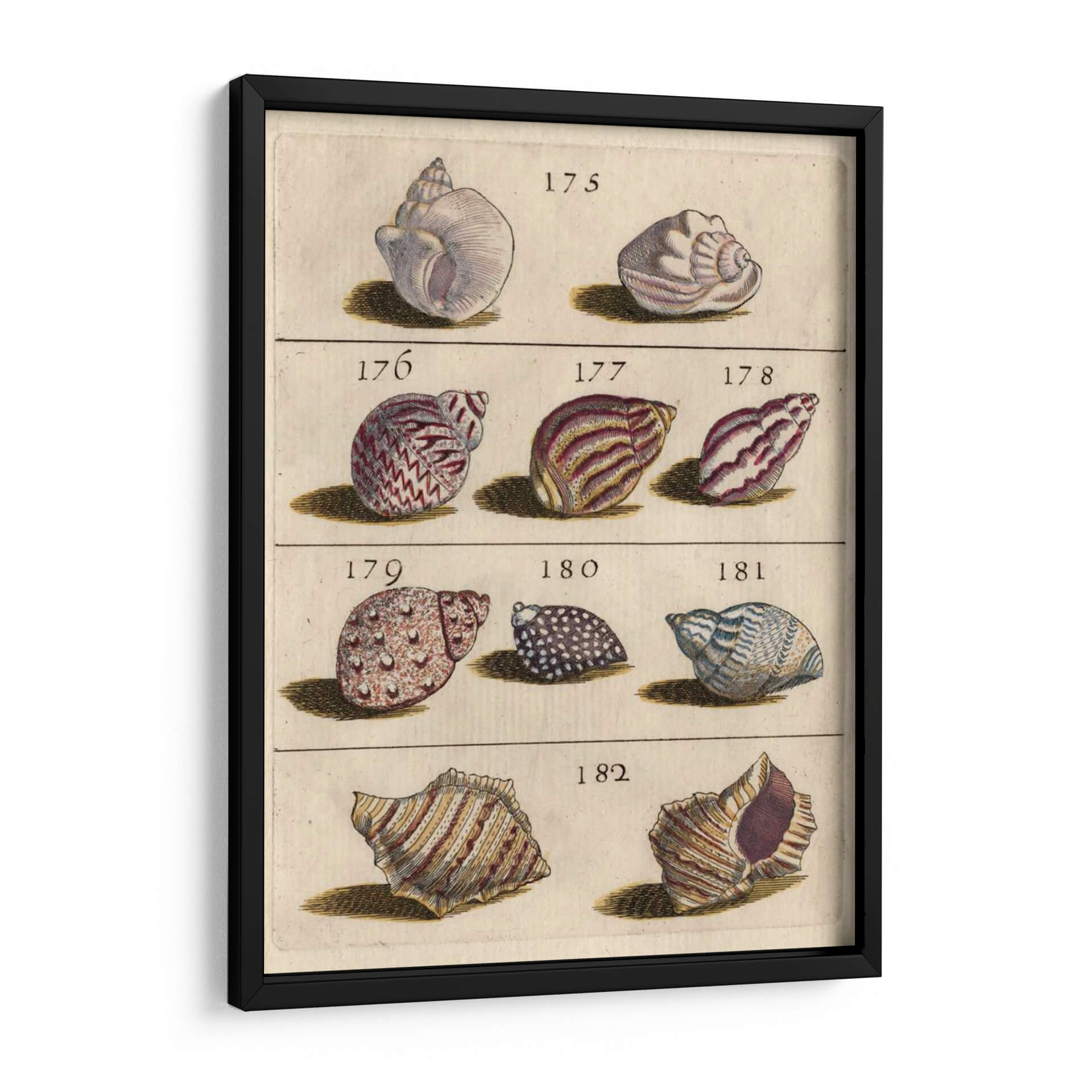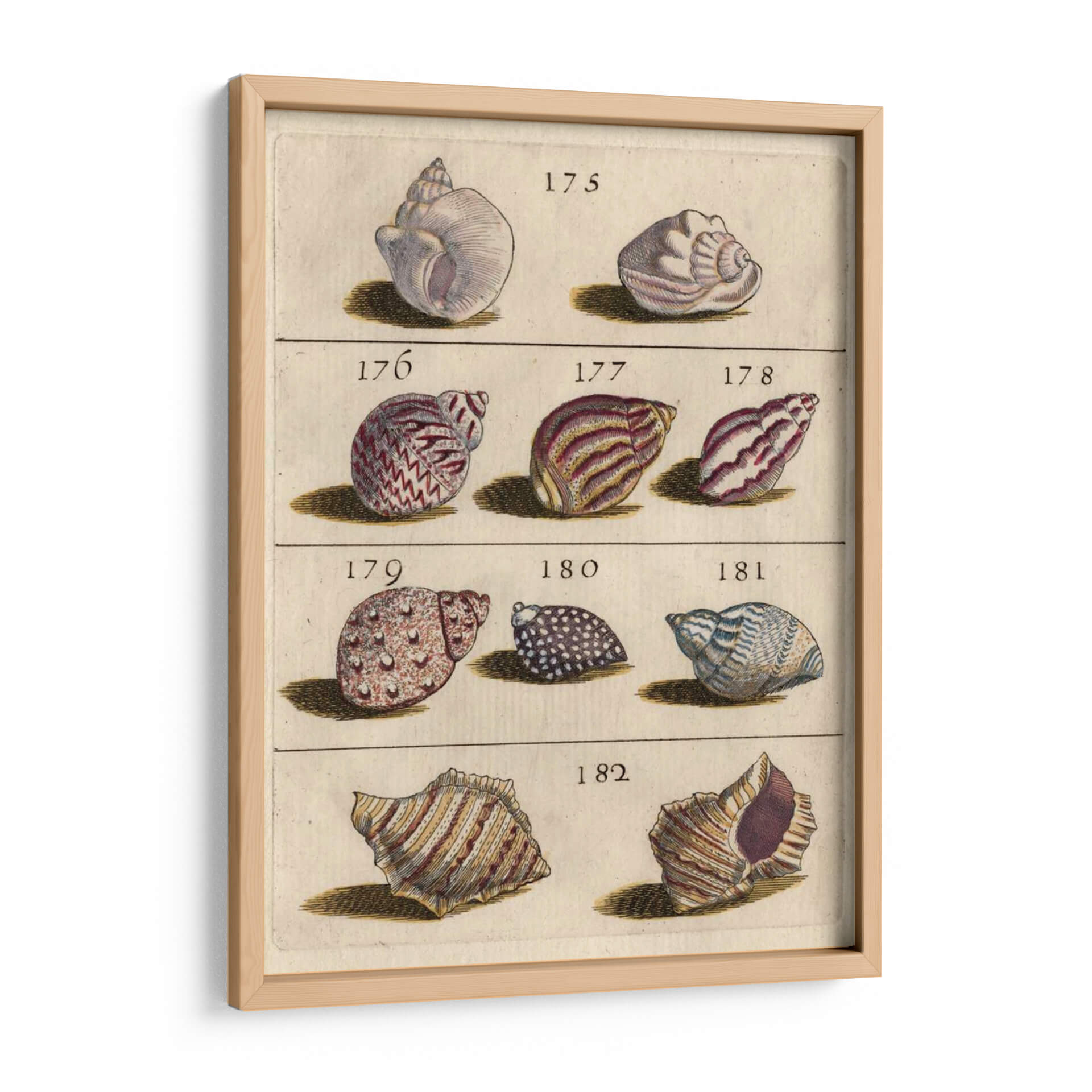 Emb r c r Detalle una obra de arte de "Colección De Cáscara Vi" que captura la belleza intrincada y la diversidad de las conchas marinas. Esta pieza, que parece extraída de un antiguo tratado de historia natural, presenta una cuadrícula de conchas detalladamente ilustradas, cada una con su número de catalogación. La paleta de colores se centra en tonos tierra, ocres y sutiles matices de morado y azul, creando una atmósfera de estudio y apreciación por el mundo natural. La composición, organizada y simétrica, resalta las formas únicas y las texturas de cada concha, desde las espirales delicadas hasta las superficies rugosas. Ideal para espacios que buscan un toque de elegancia clásica, serenidad o una conexión con la naturaleza y el mar. Este cuadro decorativo es perfecto para un estudio, una biblioteca, o incluso como un punto focal educativo y estético en un salón o dormitorio.