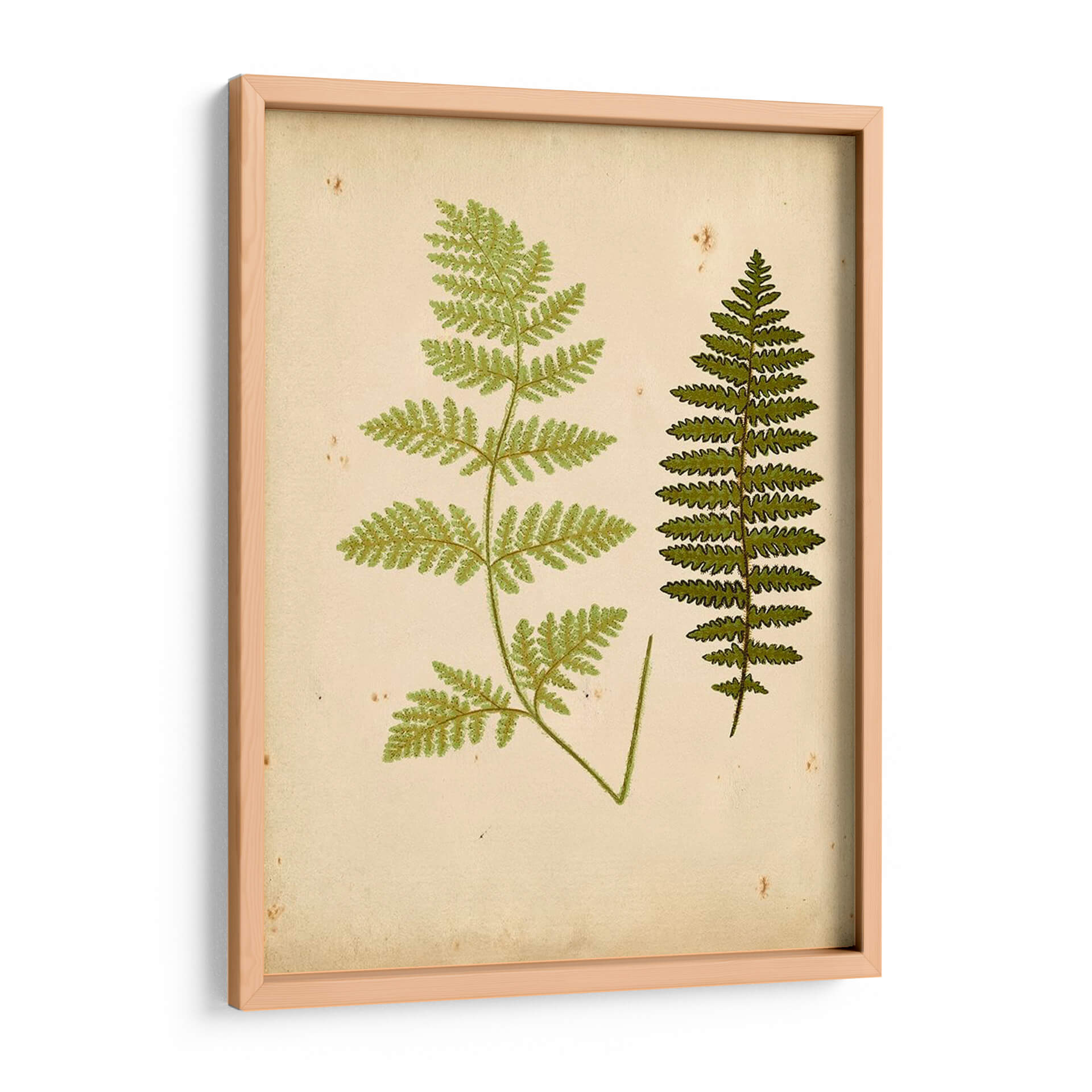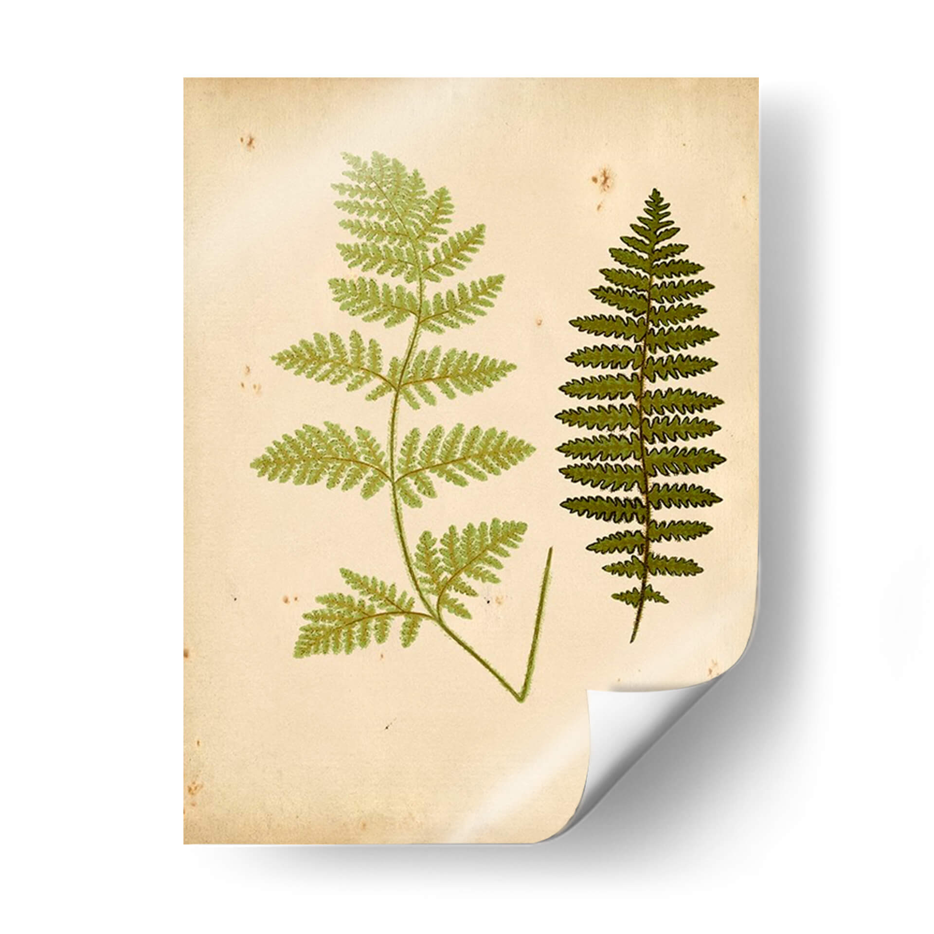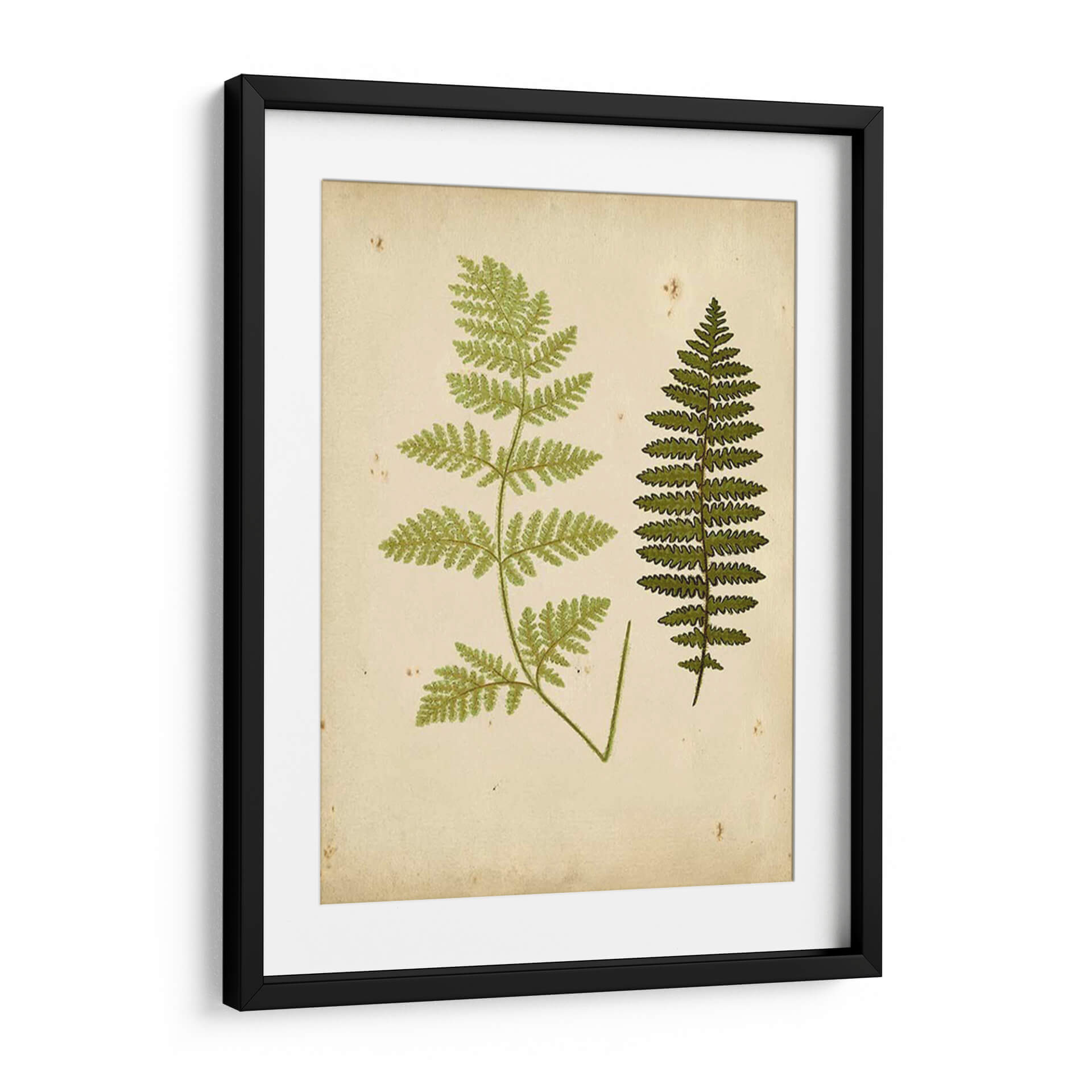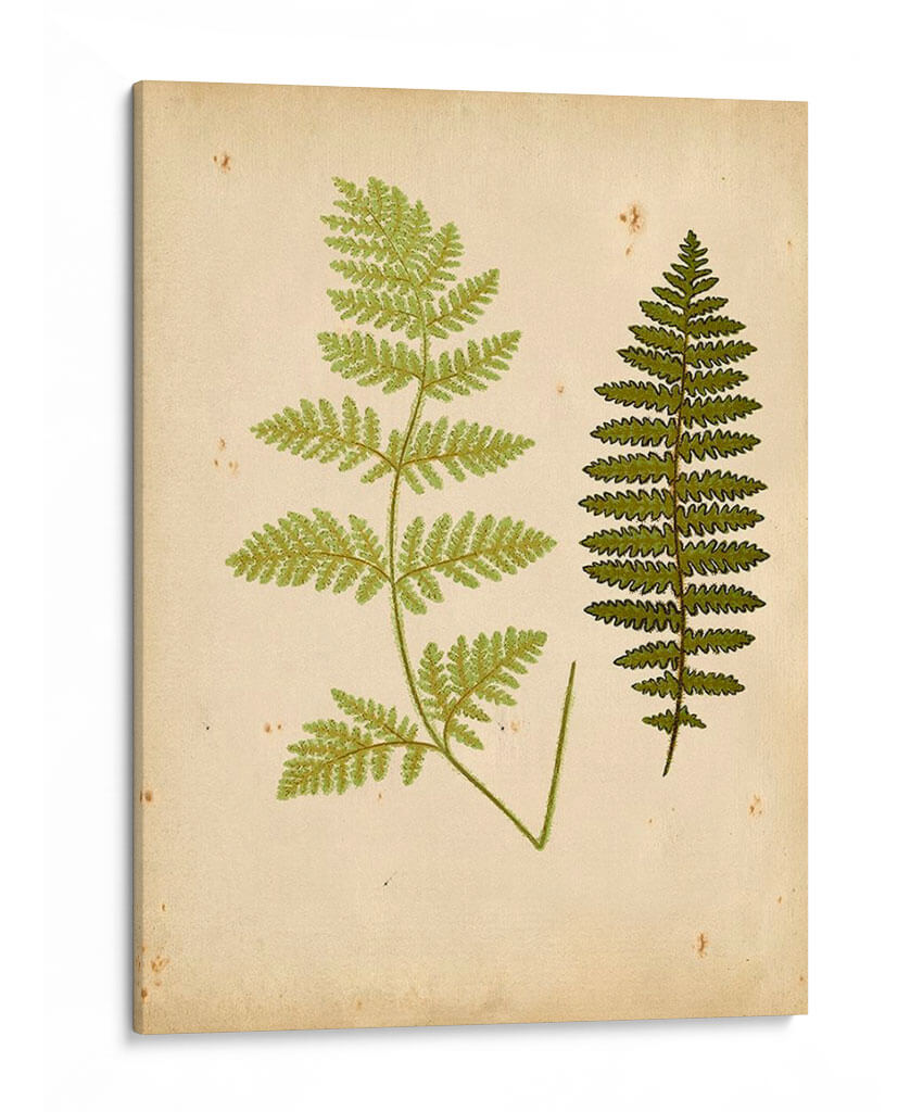 Aporta un toque de la naturaleza y la serenidad botánica a tu hogar con este exquisito cuadro decorativo de helechos. La obra, titulada 'Cottage Ferns III' del artista Lowe, presenta dos representaciones detalladas de helechos sobre un fondo que evoca el pergamino envejecido, con sutiles manchas y texturas que añaden carácter y un aire vintage. La paleta de colores se centra en tonos verdes vibrantes para las frondas de los helechos, contrastando elegantemente con el fondo beige cremoso. Esta pieza de arte botánico es perfecta para quienes buscan infundir calma y conexión con la naturaleza en sus espacios. Su estilo de ilustración botánica, que recuerda a los grabados antiguos, lo convierte en un complemento ideal para salones, dormitorios o estudios, aportando una elegancia atemporal y un recordatorio de la belleza del mundo natural. Imagina cómo este cuadro decorativo puede transformar una pared vacía en un rincón de tranquilidad, fusionando el arte clásico con la decoración contemporánea para crear un ambiente acogedor y sofisticado.
