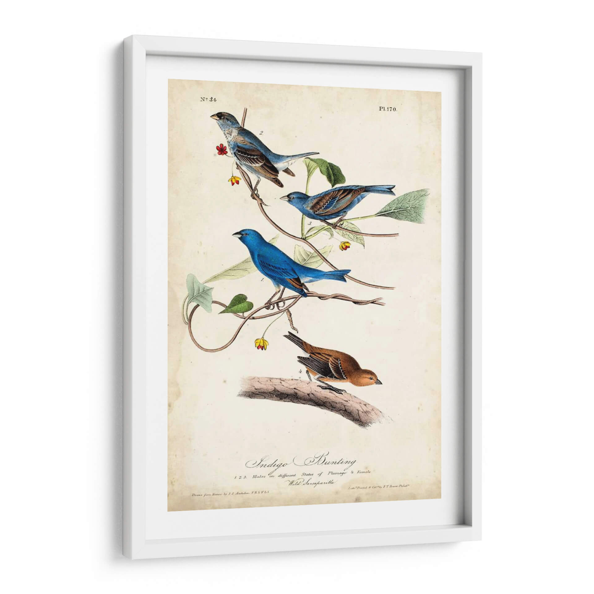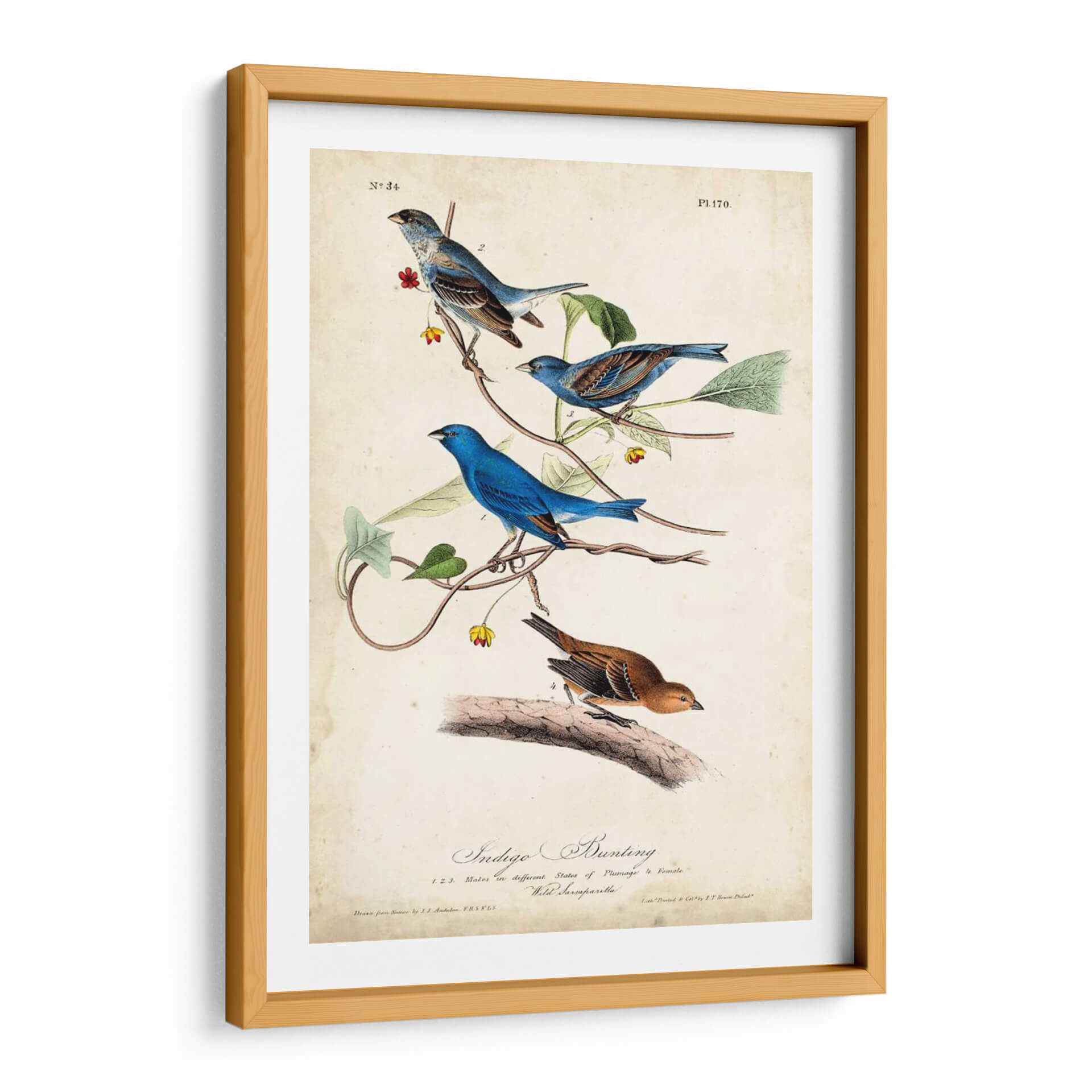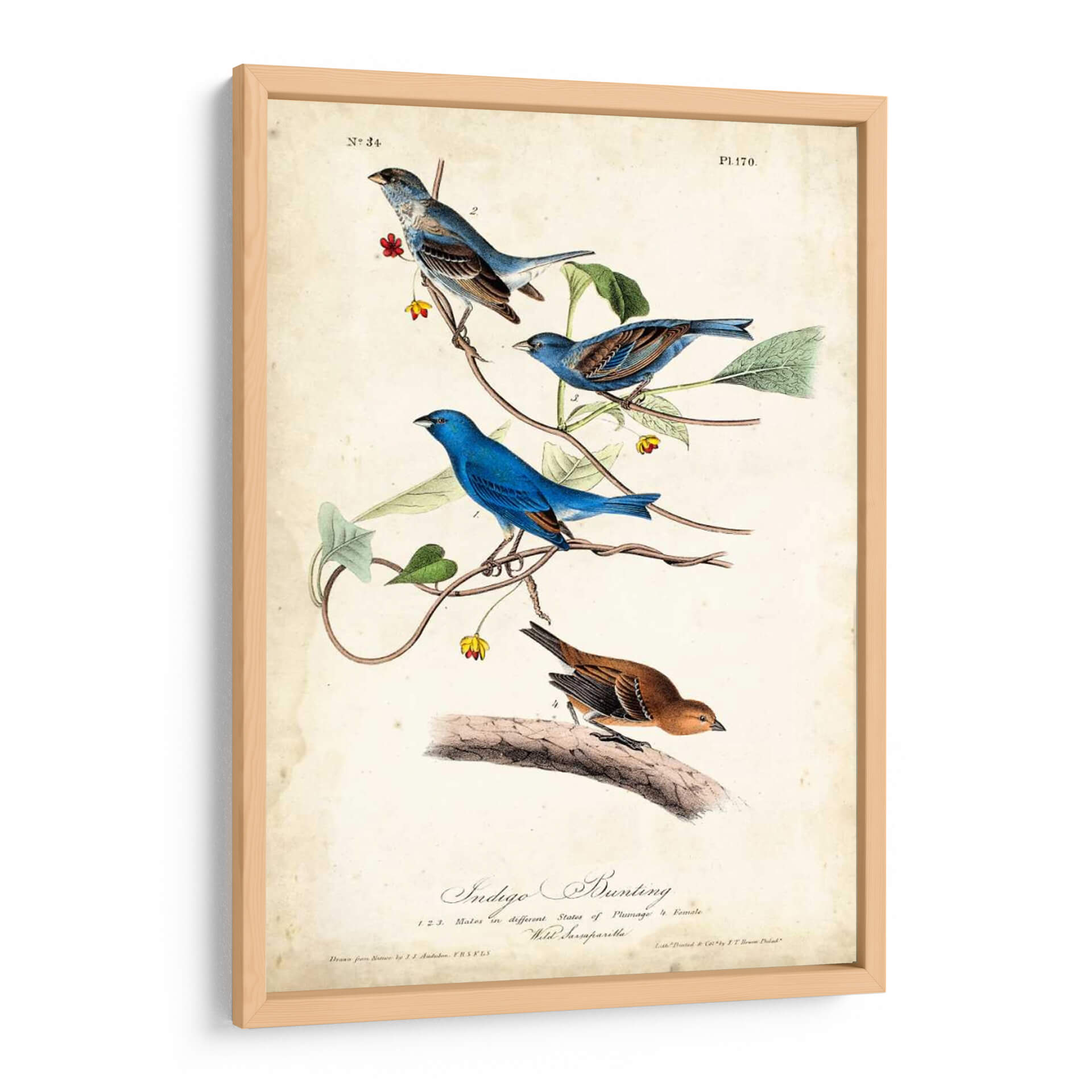Embellece tu espacio con el encanto atemporal de "Empavesado De Índigo", una obra maestra del renombrado artista John James Audubon. Esta exquisita ilustración de aves, inspirada en el estilo clásico de la ornitología, captura la delicadeza y la vibrante belleza del gorrión índigo en diferentes etapas de plumaje y sexos. La composición presenta varias aves posadas elegantemente sobre ramas, adornadas con pequeñas flores amarillas y follaje verde sutil. La paleta de colores, dominada por los profundos y cautivadores tonos de índigo, se complementa con toques de marrón terroso y el contraste de los acentos florales, creando una atmósfera de serenidad y elegancia natural. El fondo de tono sepia envejecido aporta un aire de autenticidad histórica y sofisticación, evocando la sensación de un estudio naturalista del siglo XIX. Este cuadro decorativo es perfecto para añadir un toque de distinción y color a cualquier habitación, desde una sala de estar acogedora hasta un estudio sereno o una oficina profesional. Ideal para amantes de la naturaleza, la ornitología o aquellos que aprecian el arte clásico y detallado, "Empavesado De Índigo" es una pieza que inspira contemplación y admiración, aportando un vínculo con la belleza del mundo natural a tu hogar. Añade esta joya de la historia natural a tu colección de arte de pared y transforma tu entorno con su gracia y colorido.