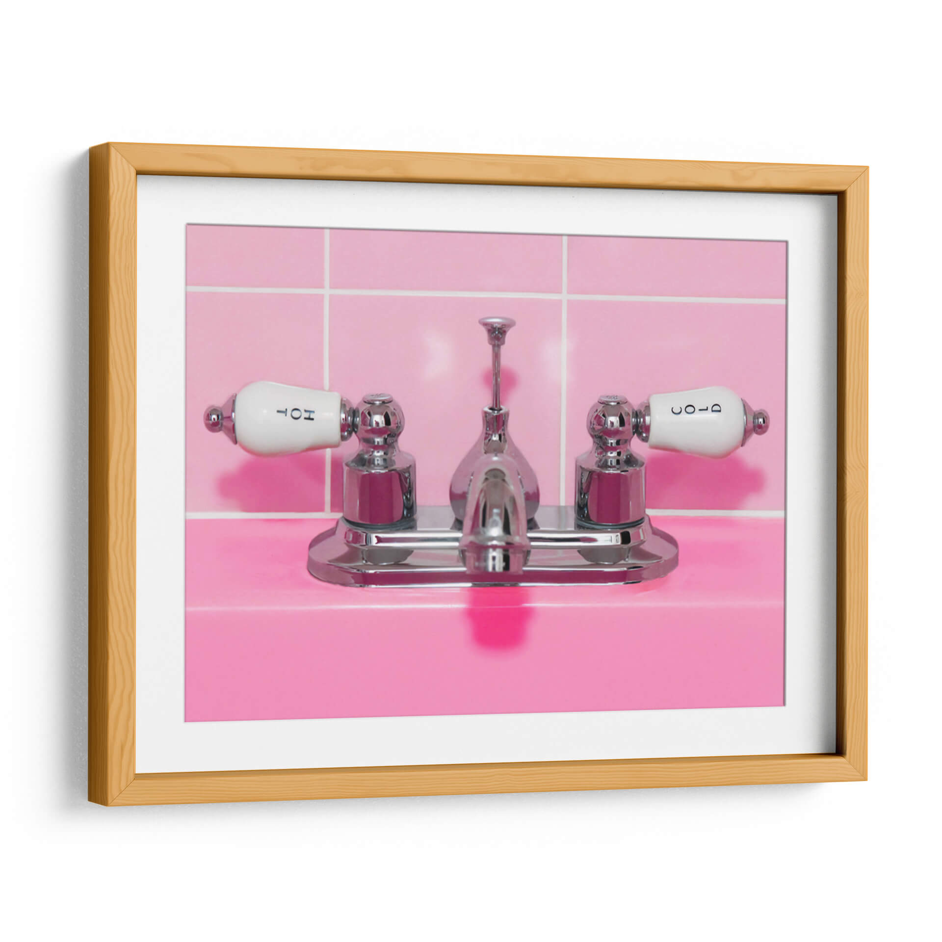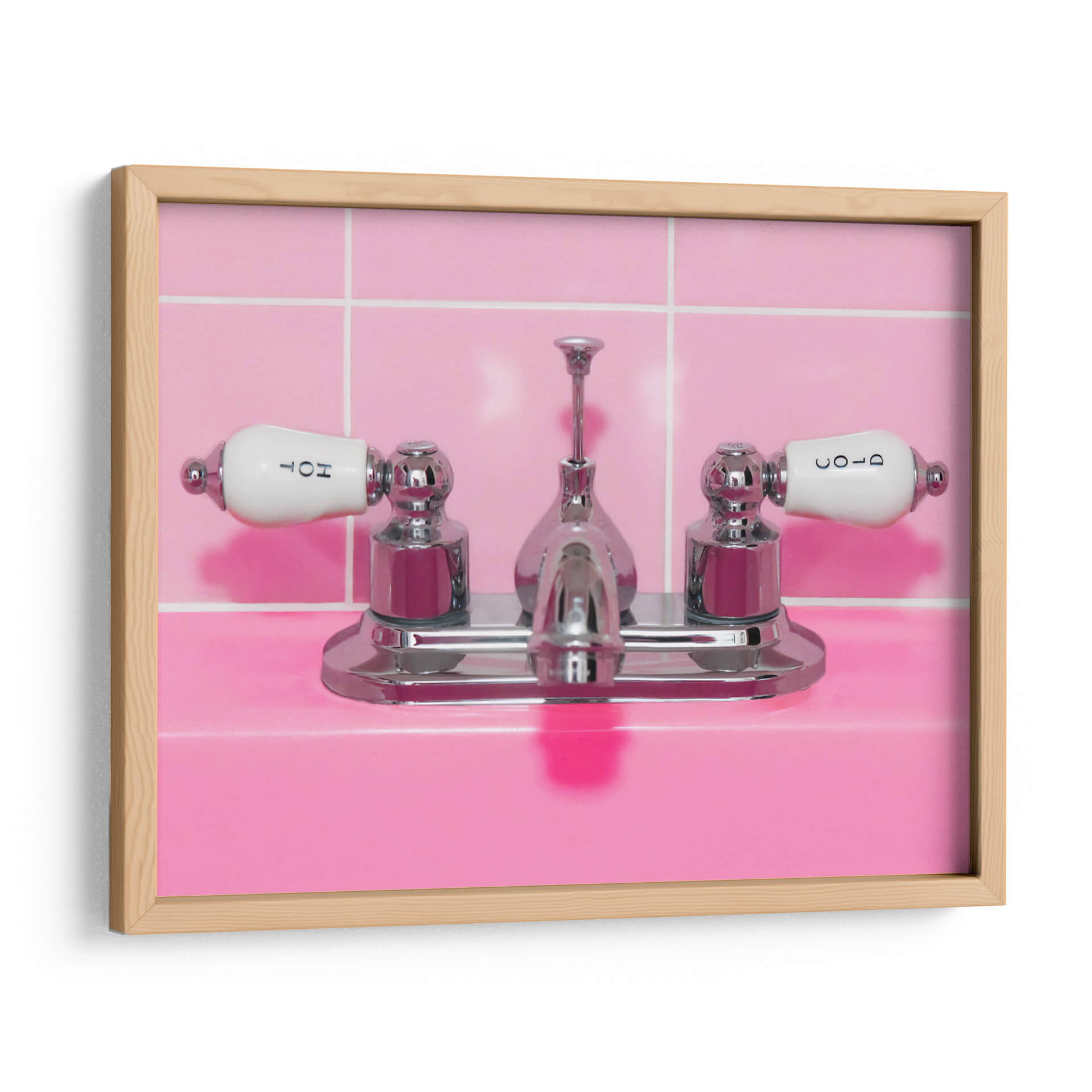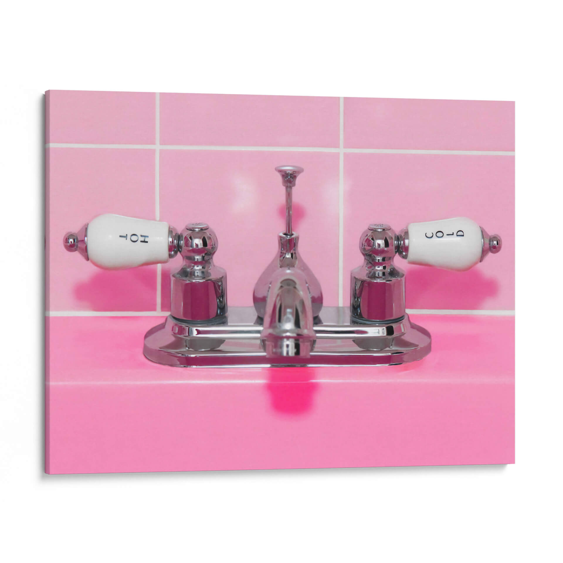 Este cautivador cuadro decorativo "Grifo de lavabo rosa retro" de Tom Windeknecht captura la esencia de la nostalgia con un toque moderno y vibrante. La obra presenta un primer plano de un grifo de lavabo clásico, con sus distintivos manerales blancos que ostentan las inscripciones "HOT" y "COLD" en elegante tipografía. El grifo, de acabado cromado brillante, se asienta sobre una superficie de un rosa intenso y luminoso, enmarcado por azulejos del mismo tono que crean un fondo suave y coherente. La paleta de colores, dominada por el rosa y el cromo, evoca una sensación de frescura, limpieza y un aire de sofisticación retro. La composición simétrica y el enfoque en un objeto cotidiano transformado en arte invitan a la reflexión sobre la belleza en lo ordinario. Este cuadro es perfecto para añadir un toque de personalidad y color a baños, tocadores, o incluso como una pieza de acento inesperada en cocinas o espacios de vida modernos que buscan un aire vintage chic. Su estilo fotográfico y detallado, junto con la elección audaz del color, lo convierten en una adición única a cualquier colección de arte decorativo de pared.