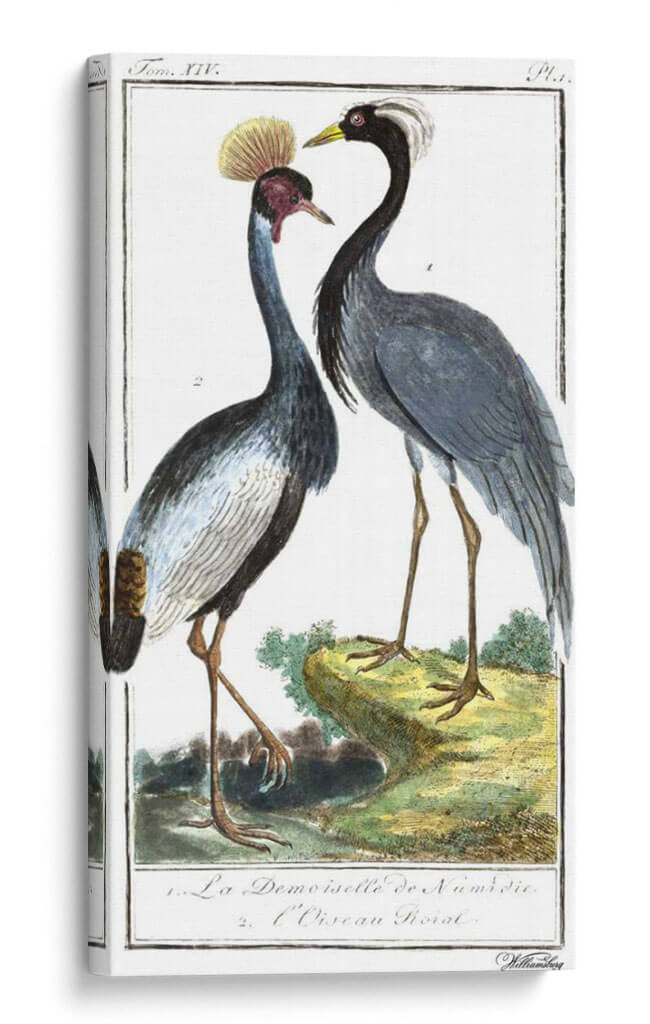 Embellece tu espacio con el encanto atemporal de "Grúas De Búfón Y Garones Ii", una obra de arte que captura la elegancia de estas majestuosas aves. Esta pieza, inspirada en ilustraciones científicas clásicas, presenta dos grúas detalladas con plumajes en tonos grises, blancos y acentos de color burdeos y amarillo, posadas en un paisaje rocoso con vegetación sutil. La paleta de colores, que combina tonos naturales y delicados, aporta una sensación de calma y sofisticación, ideal para cualquier ambiente que busque un toque de distinción y conexión con la naturaleza. La composición simétrica y el estilo detallado de la ilustración invitan a la contemplación, convirtiendo este cuadro decorativo en un punto focal cautivador para salas de estar, estudios u oficinas. Añade un toque de arte naturalista y elegancia a tu hogar con esta pieza única que evoca serenidad y admiración por la belleza de la vida silvestre.