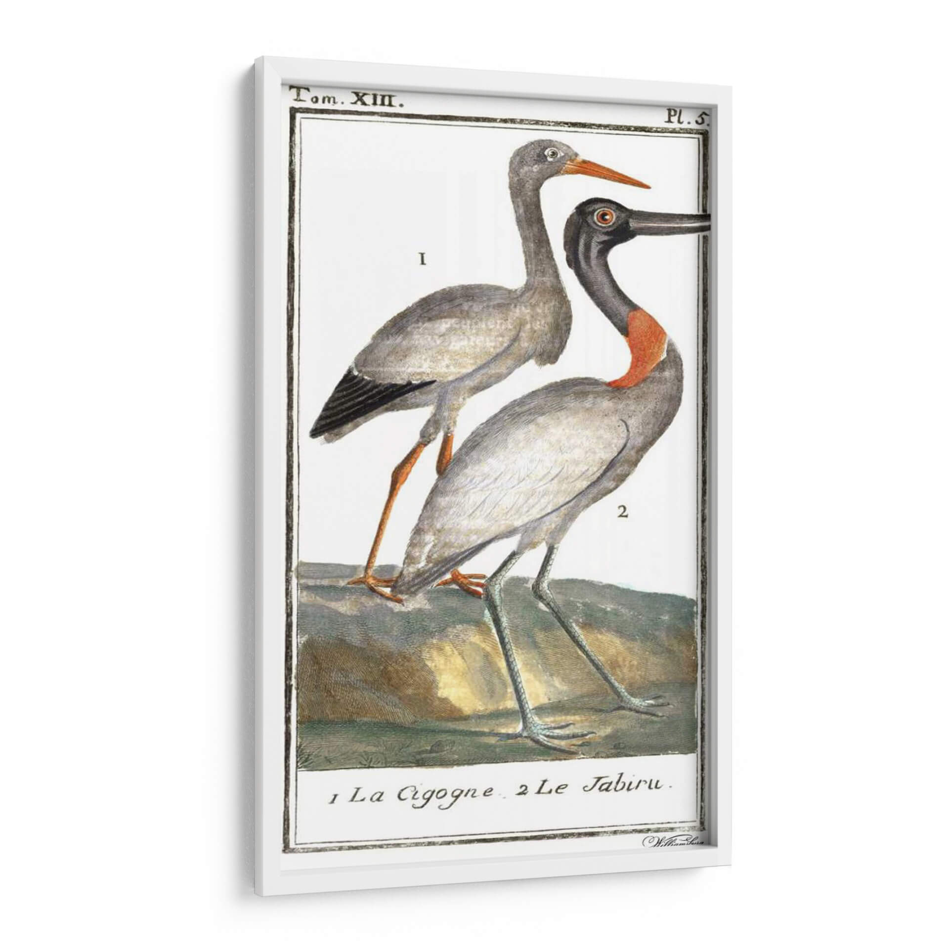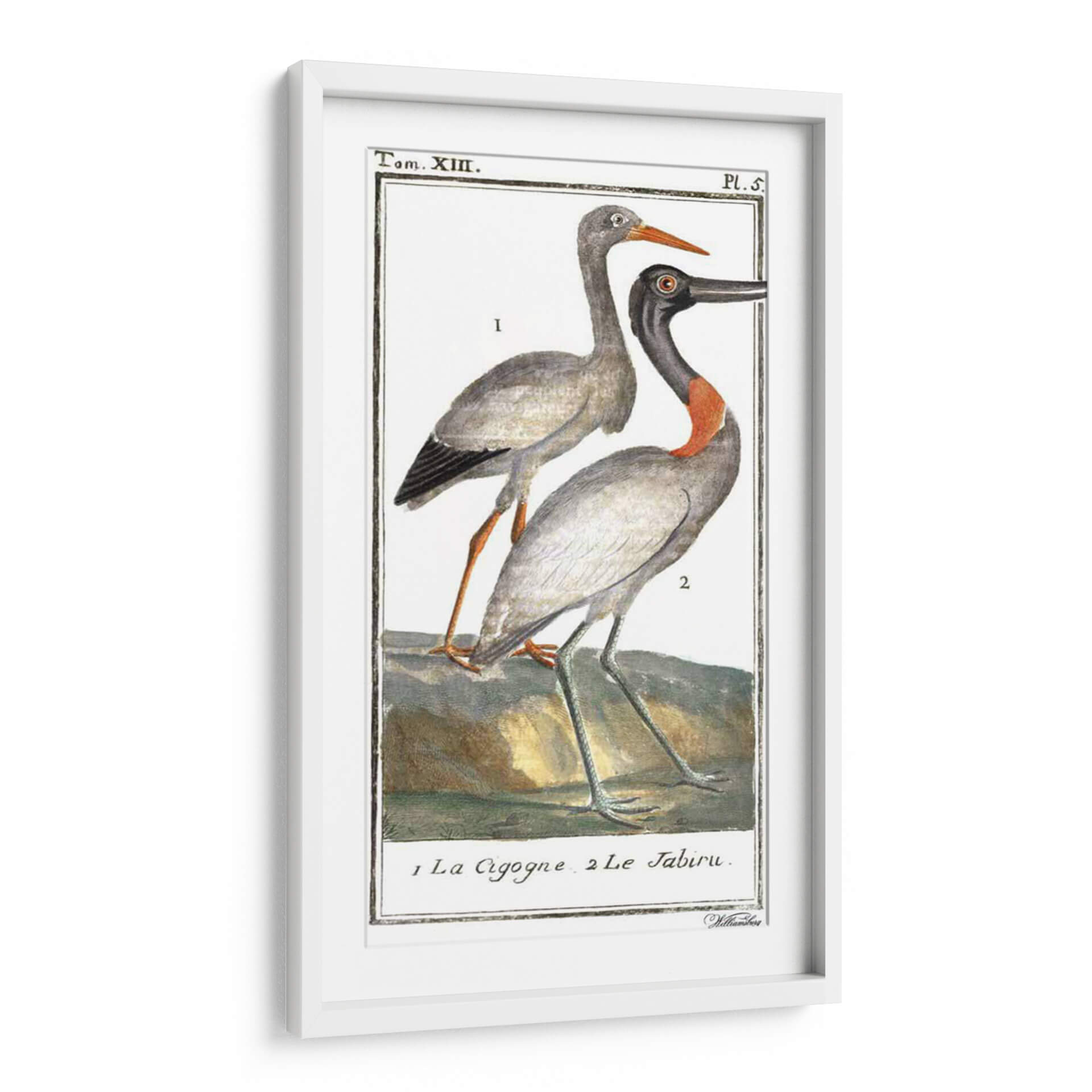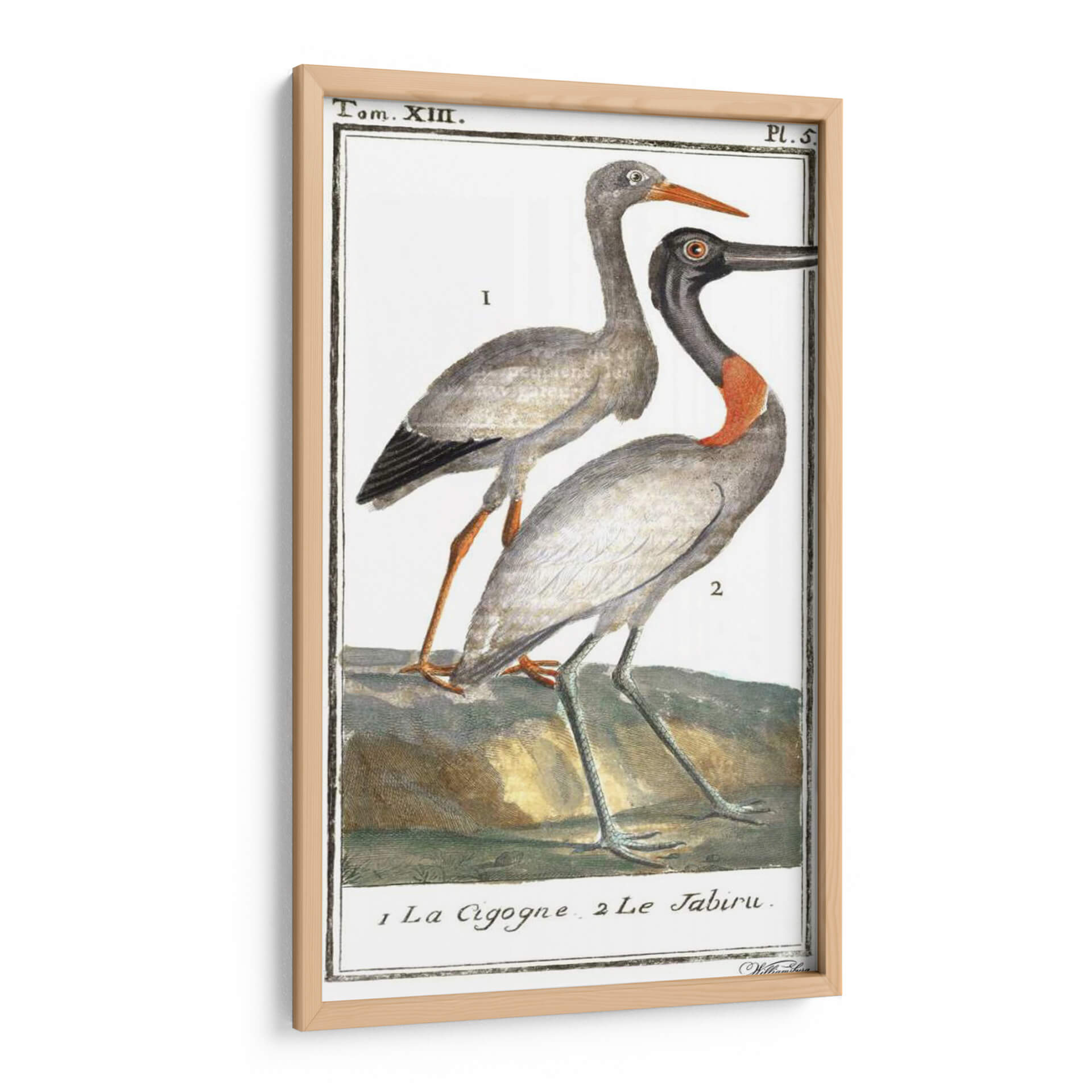 Sumérgete en la elegancia natural con nuestro cuadro decorativo 'Grúas De Búfón Y Garzas I', una obra que captura la majestuosidad de las aves con un detalle exquisito. Esta pieza, inspirada en ilustraciones clásicas de ornitología, presenta dos grullas o garzas en una pose serena, destacando sus plumajes en tonos grises y sutiles acentos de color, especialmente el vibrante cuello rojizo de una de las aves. La paleta de colores suaves, dominada por grises, blancos, ocres y toques de naranja y verde azulado en las patas, crea una atmósfera de tranquilidad y sofisticación. El estilo de la ilustración, reminiscente de grabados antiguos, aporta un toque de clasicismo y erudición a cualquier espacio. Ideal para quienes buscan añadir un elemento de la naturaleza con un aire atemporal a su hogar u oficina, este cuadro decorativo es perfecto para salas de estar, estudios o cualquier rincón que necesite una dosis de calma y belleza. Su composición centrada en las figuras de las aves las convierte en el punto focal, invitando a la contemplación y al aprecio por el mundo natural. Transforma tu ambiente con esta exquisita representación de aves, un clásico que nunca pasa de moda.