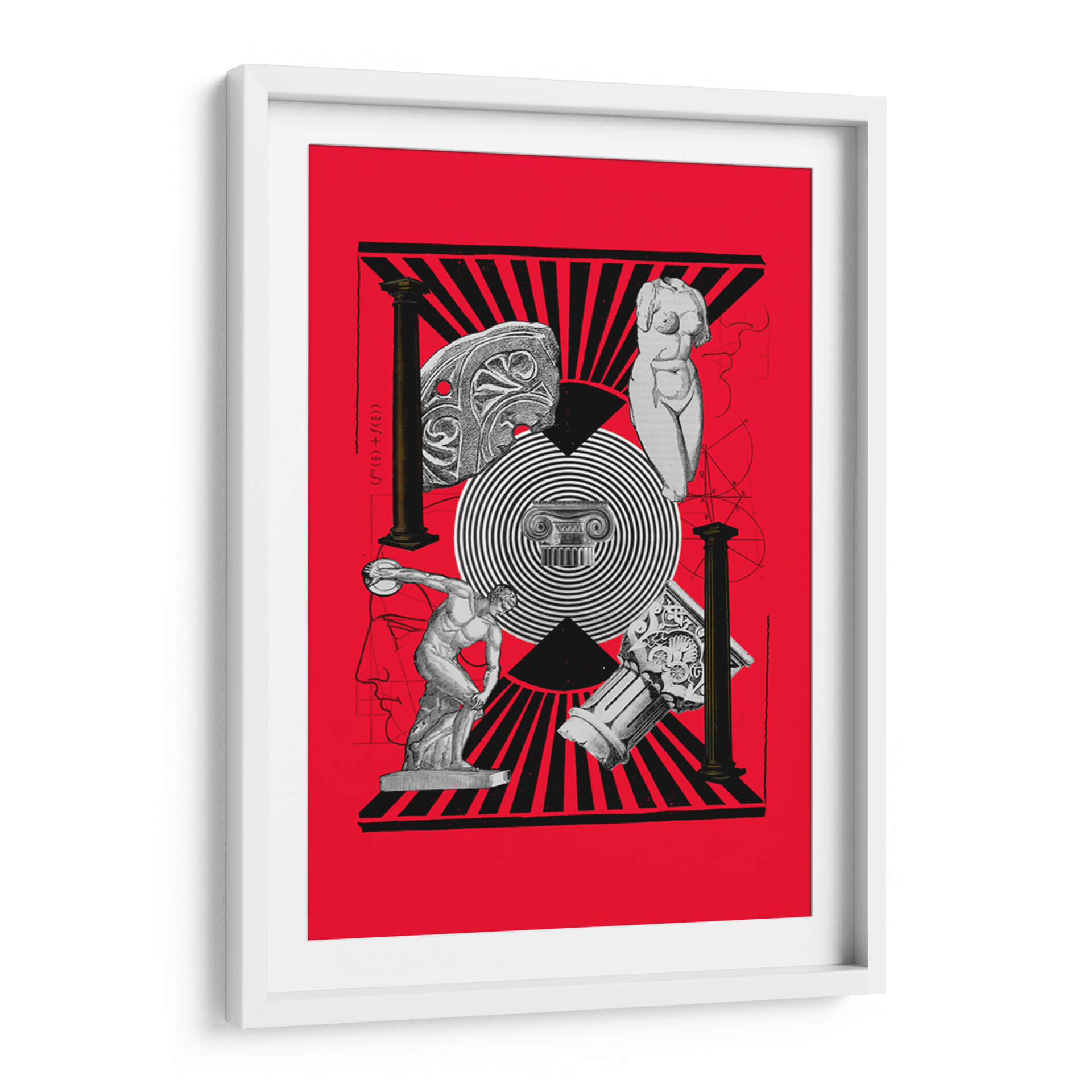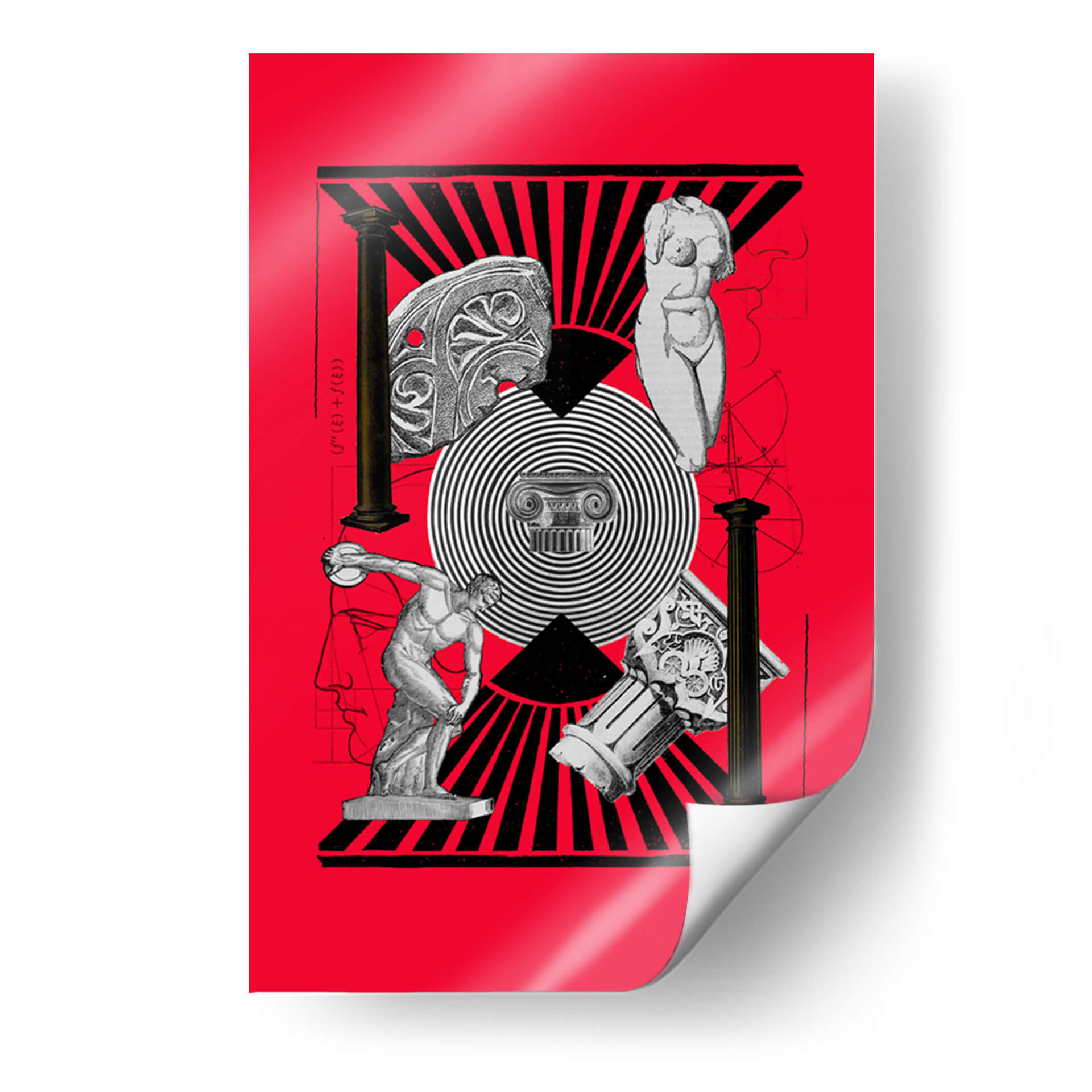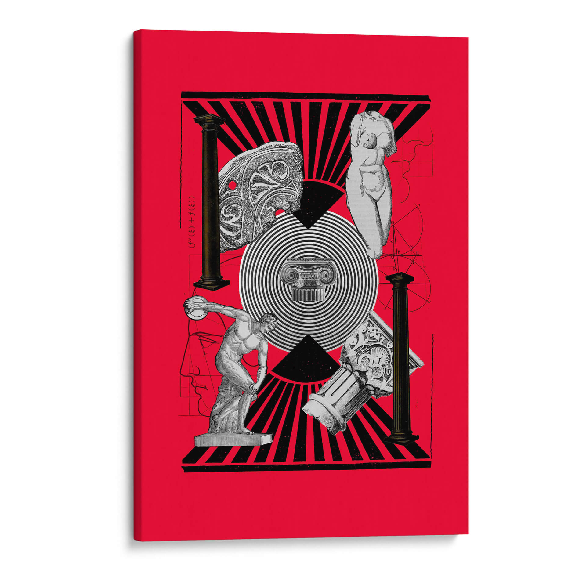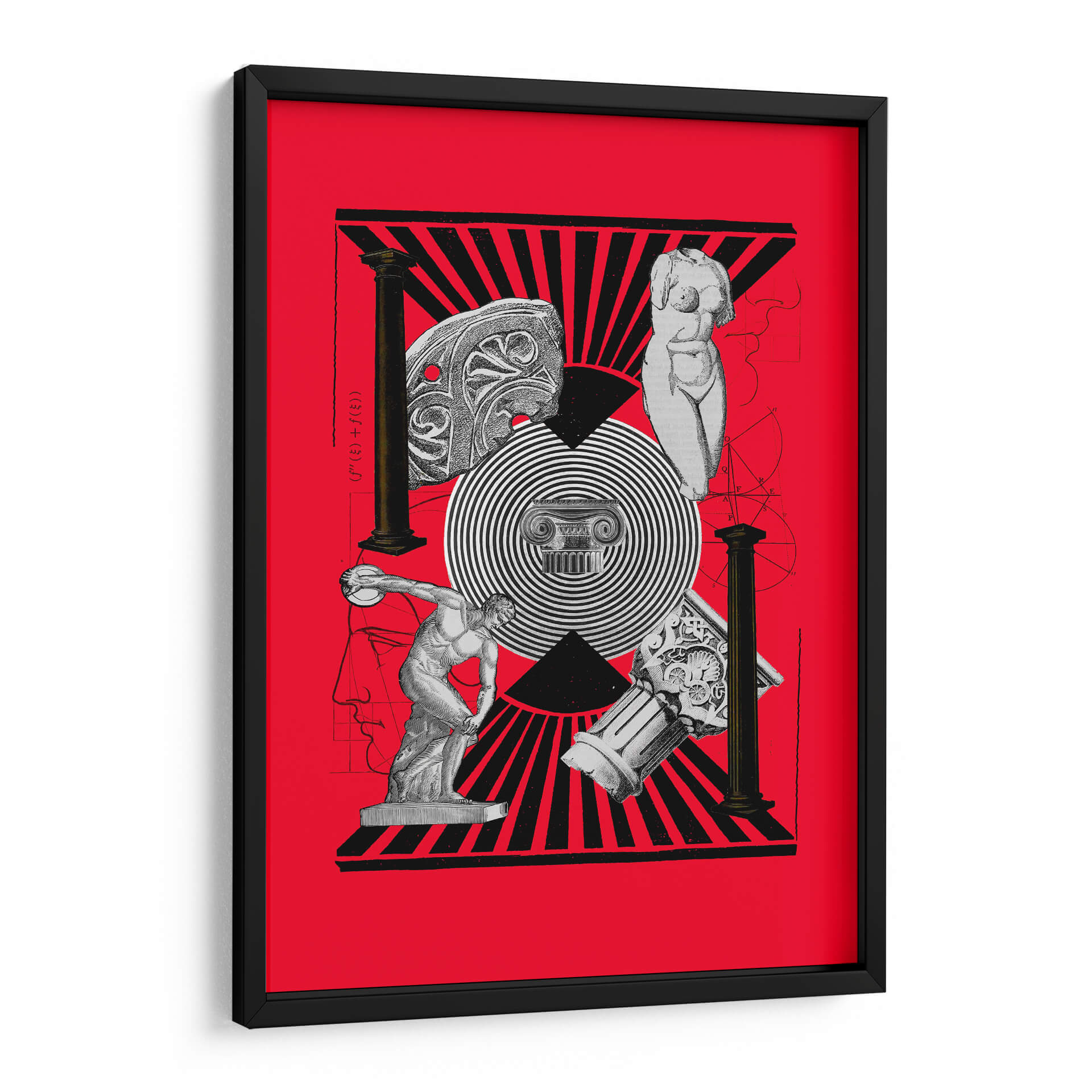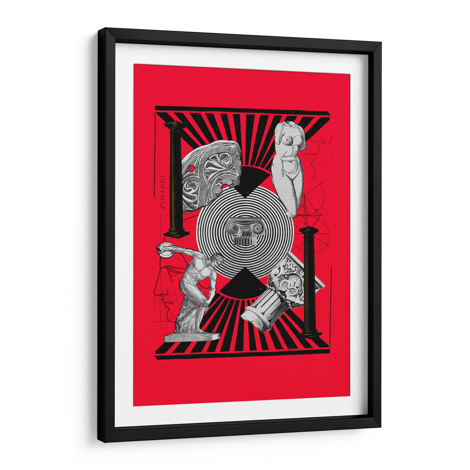 Sumérgete en la fascinante obra 'La Vida Del Arte' de Pawel Pacholec, una composición visual que fusiona elementos clásicos y modernos con una audacia sorprendente. Este cuadro decorativo se distingue por su vibrante fondo rojo, que contrasta poderosamente con las detalladas y evocadoras imágenes en blanco y negro. La pieza presenta una interesante yuxtaposición de esculturas grecorromanas, arquitectura clásica como capiteles y columnas, y elementos gráficos como espirales y rayos, todo ello dispuesto en una composición dinámica y casi surrealista. La figura del discóbolo, inmortalizada en su momento de máximo esfuerzo, se entrelaza con torsos clásicos y fragmentos arquitectónicos, creando un diálogo entre el movimiento, la forma y el tiempo. La paleta de colores, aunque dominada por el rojo intenso y los contrastes monocromáticos, evoca una sensación de energía, pasión y reflexión profunda. Ideal para espacios que buscan un toque de distinción y cultura, este arte de pared contemporáneo es perfecto para salas de estar modernas, estudios creativos o cualquier lugar donde se desee inspirar conversaciones y admiración. 'La Vida Del Arte' no es solo una decoración, es una declaración artística que celebra la pervivencia y la evolución de la belleza a través de las épocas.