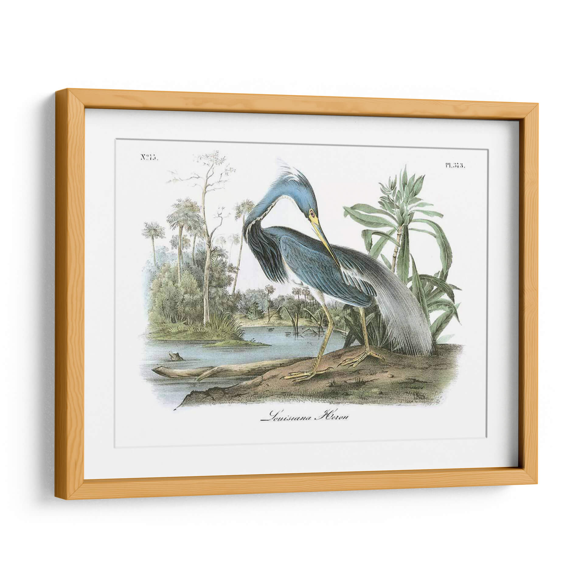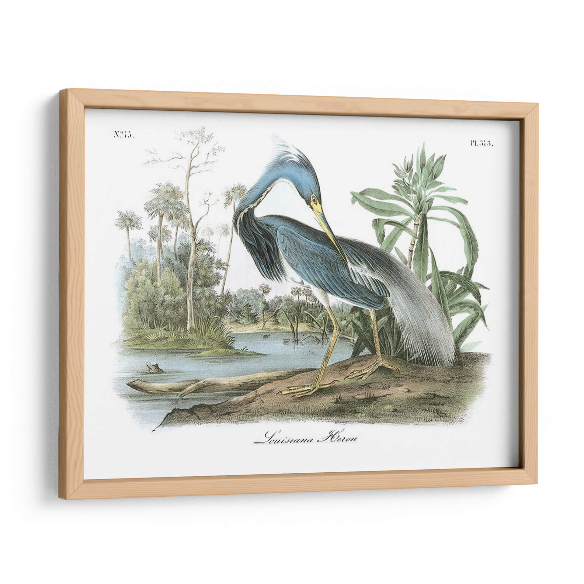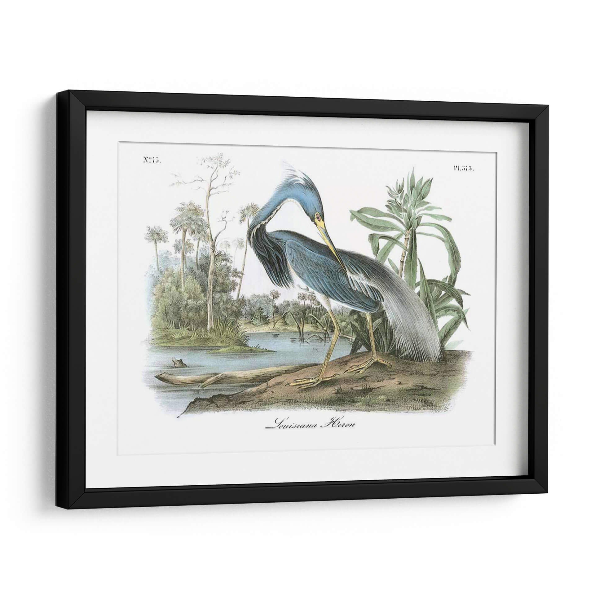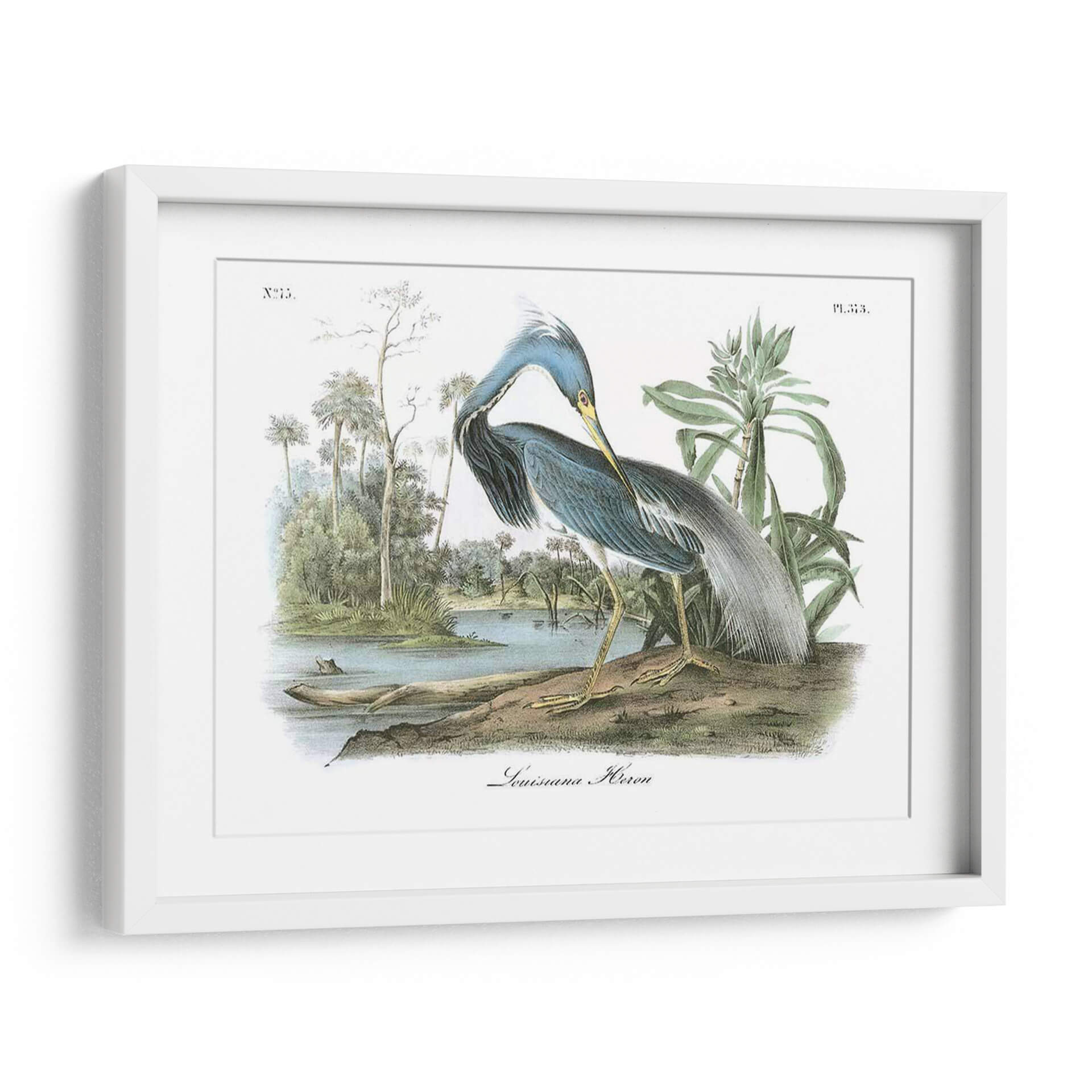 Captura la elegancia y la serenidad de la naturaleza con este exquisito cuadro decorativo del "Leuisiana Heron" de John James Audubon. Esta obra maestra, que reproduce una ilustración ornitológica detallada, presenta una garza de cuello largo y plumaje azul y gris, posada a orillas de un sereno cuerpo de agua rodeado de exuberante vegetación tropical y palmeras. La paleta de colores, dominada por tonos azules profundos, verdes naturales y toques de amarillo ocre en las patas del ave, crea una atmósfera de calma y contemplación. La composición, centrada en la figura del ave en un entorno naturalista, evoca una sensación de paz y conexión con el mundo salvaje. Este cuadro decorativo es ideal para añadir un toque de sofisticación naturalista a cualquier espacio, desde una sala de estar moderna hasta un estudio tranquilo u oficina. Su estilo clásico, pero atemporal, lo convierte en una pieza versátil que complementa diversos estilos de decoración, aportando un aire de refinamiento y aprecio por la belleza de la fauna. Descubre la maestría de Audubon y transforma tu hogar en un santuario de arte y naturaleza.