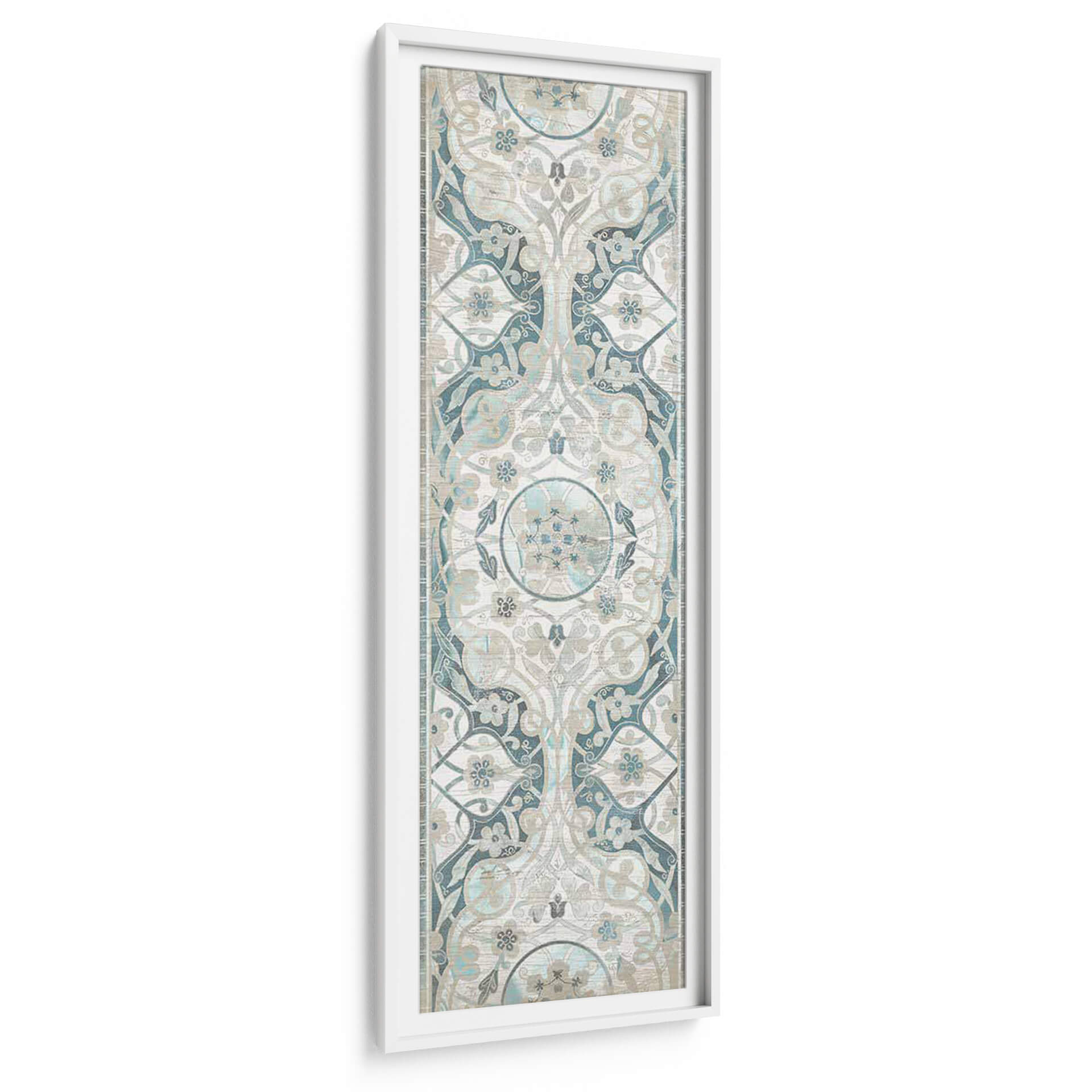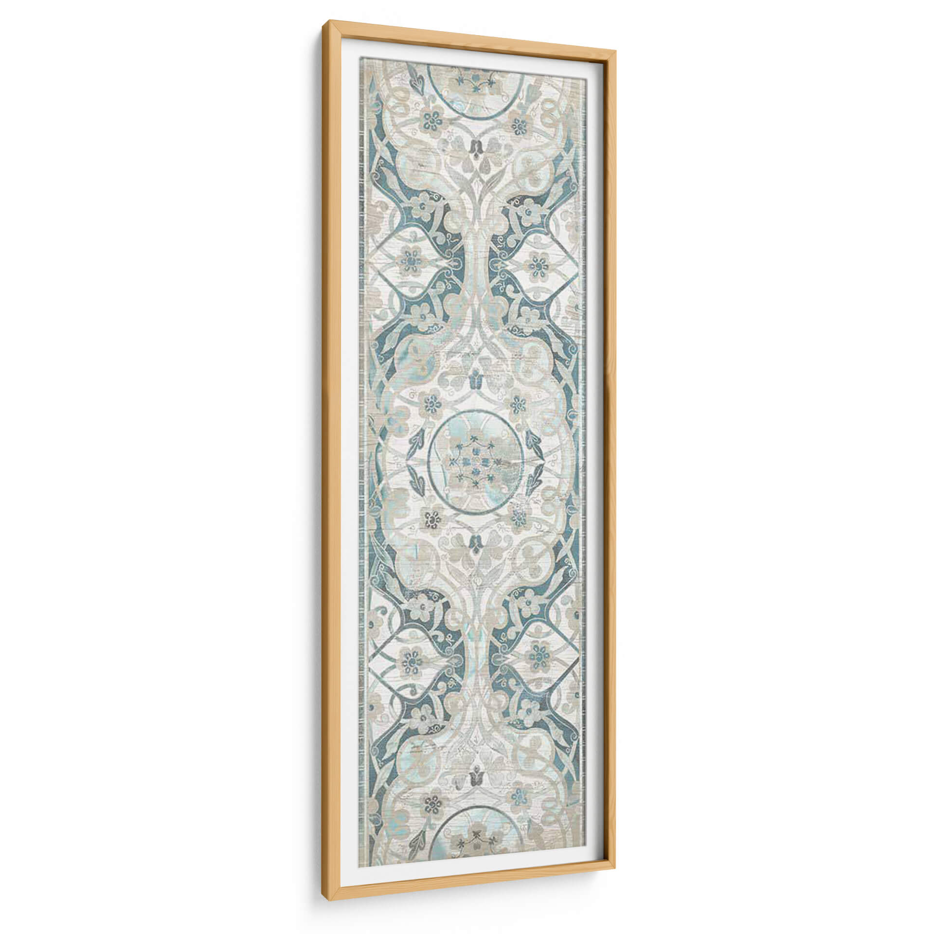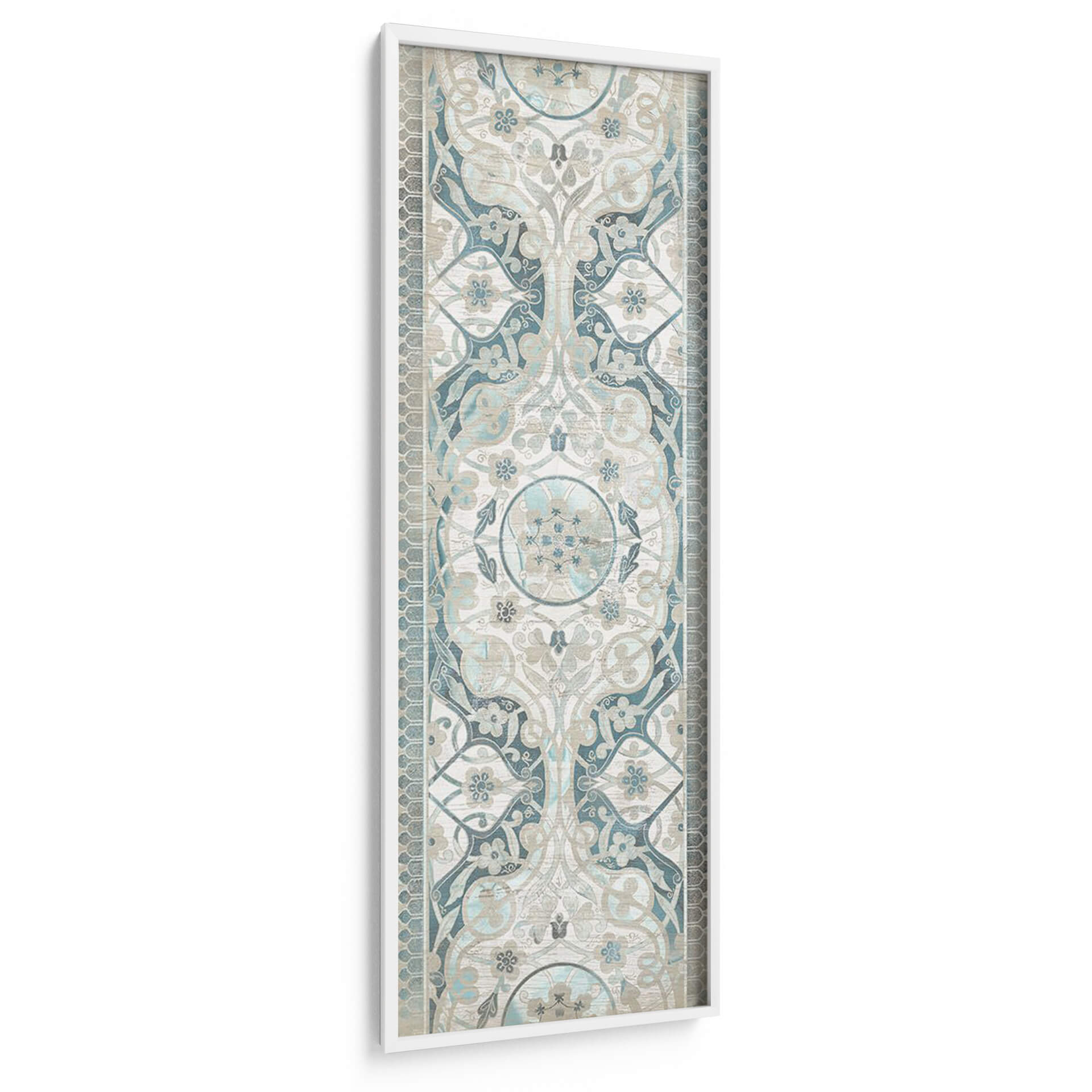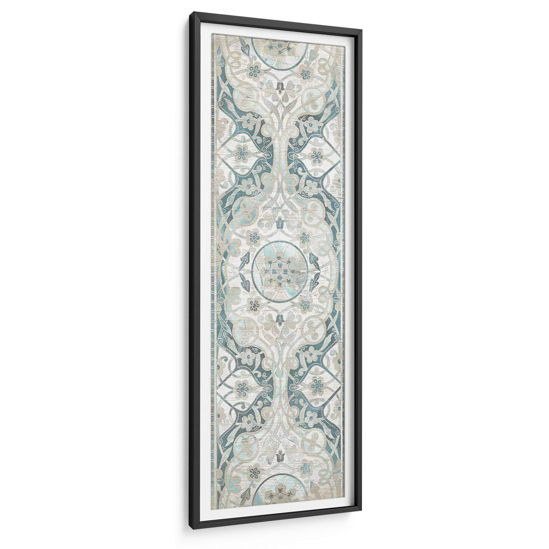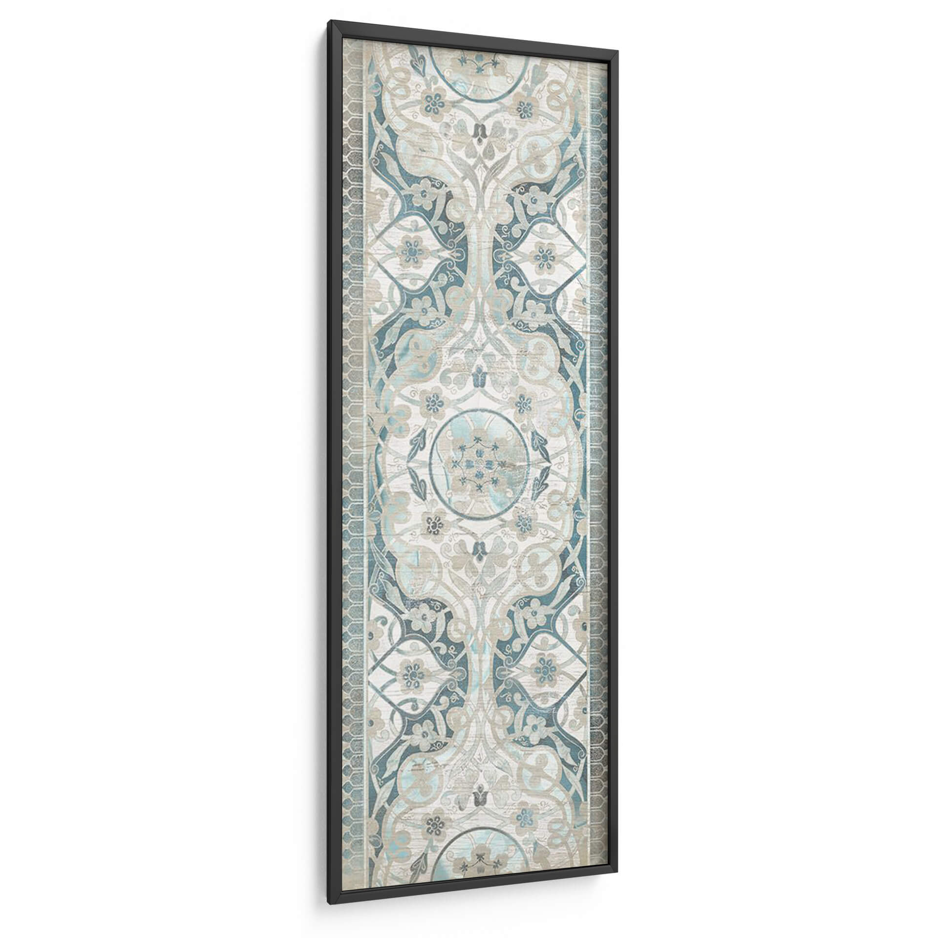 Sumérgete en la elegancia atemporal con "Panel Persa Vintage I", una obra de arte decorativo que evoca la rica herencia de los diseños persas con un toque contemporáneo. Este cuadro abstracto presenta un intrincado patrón de motivos florales y geométricos entrelazados, ejecutado en una serena paleta de tonos azules y neutros, evocando una sensación de calma y sofisticación. La textura sutil y el estilo vintage confieren a la pieza una profundidad visual que invita a la contemplación, haciendo de cada detalle una joya para la vista. Ideal para añadir un toque de distinción y serenidad a tu sala de estar, dormitorio u oficina, este cuadro es un punto focal que equilibra lo clásico y lo moderno. Su diseño vertical y simétrico lo hace perfecto para espacios que buscan una declaración de estilo sutil pero impactante, transformando cualquier pared en una galería personal. Descubre cómo este diseño abstracto puede revitalizar tu hogar con su belleza etérea y su conexión con tradiciones artísticas milenarias, creando un ambiente de paz y elegancia duradera.