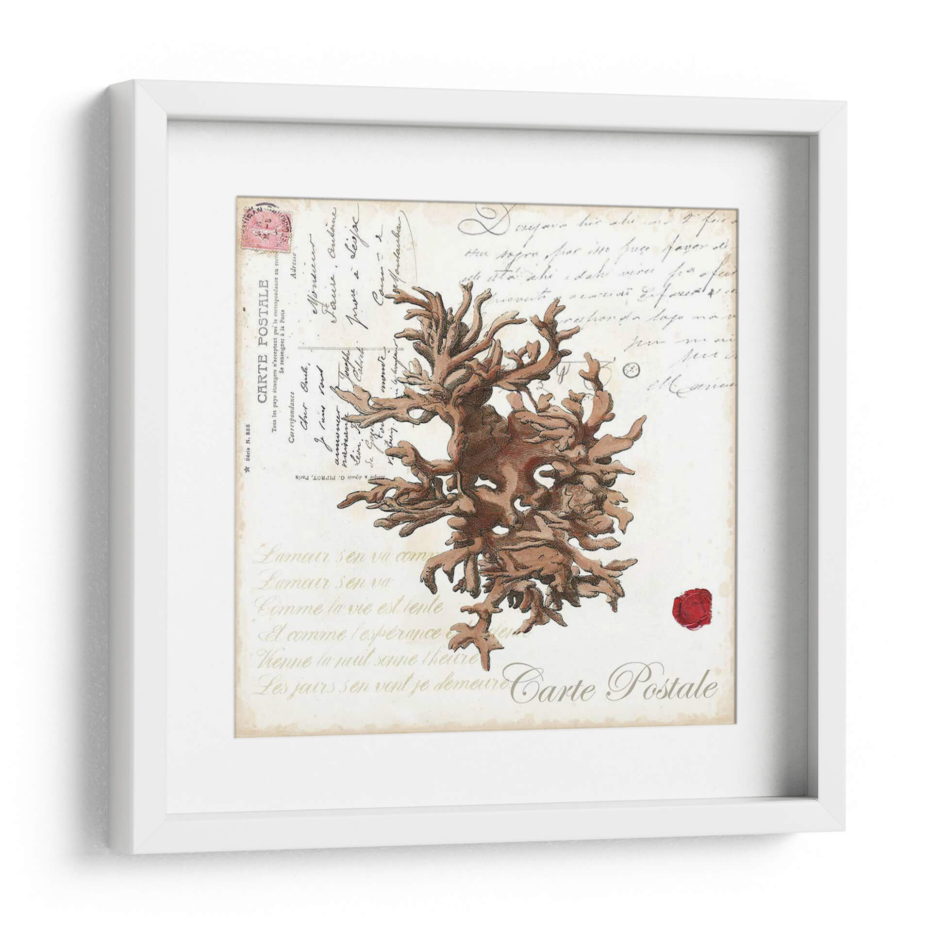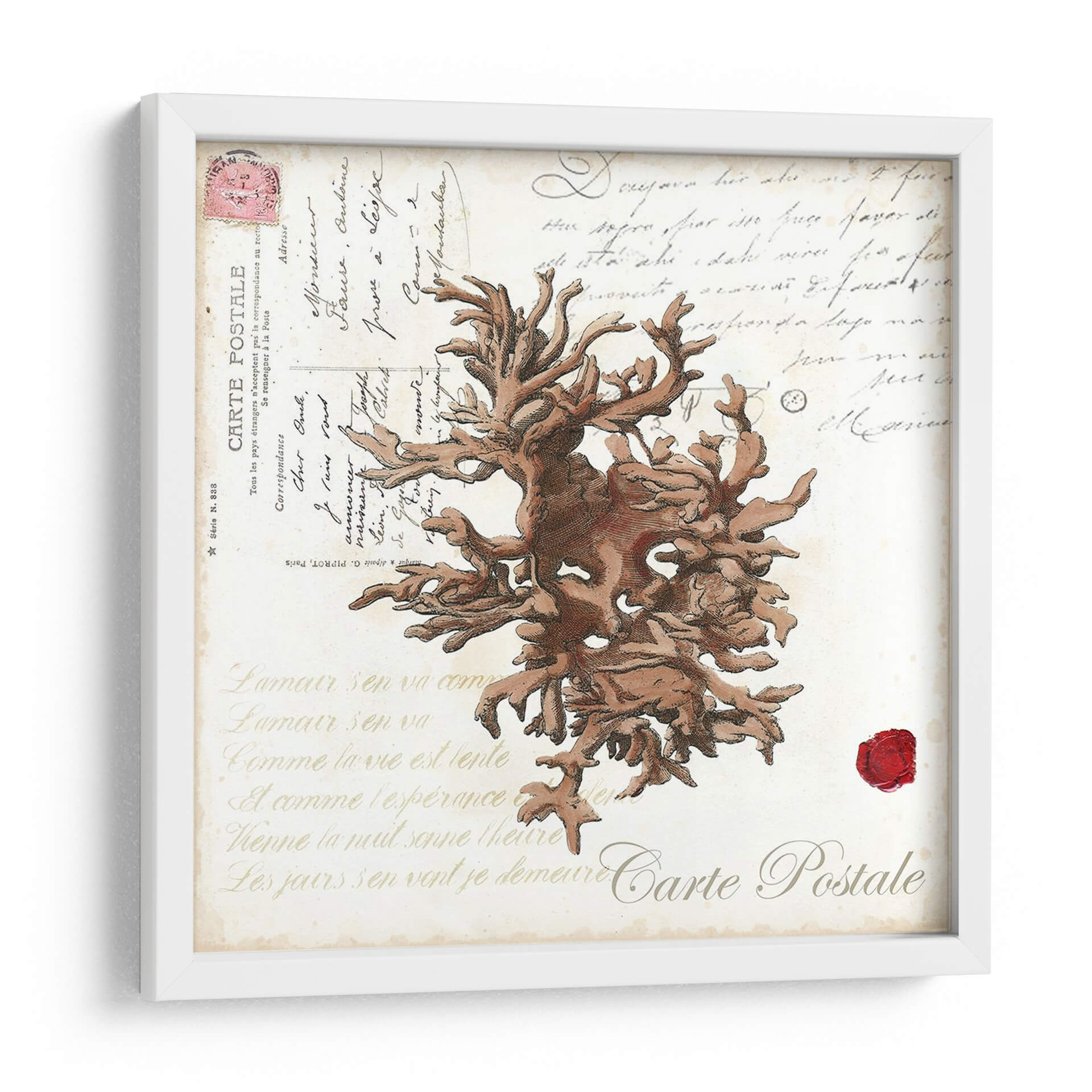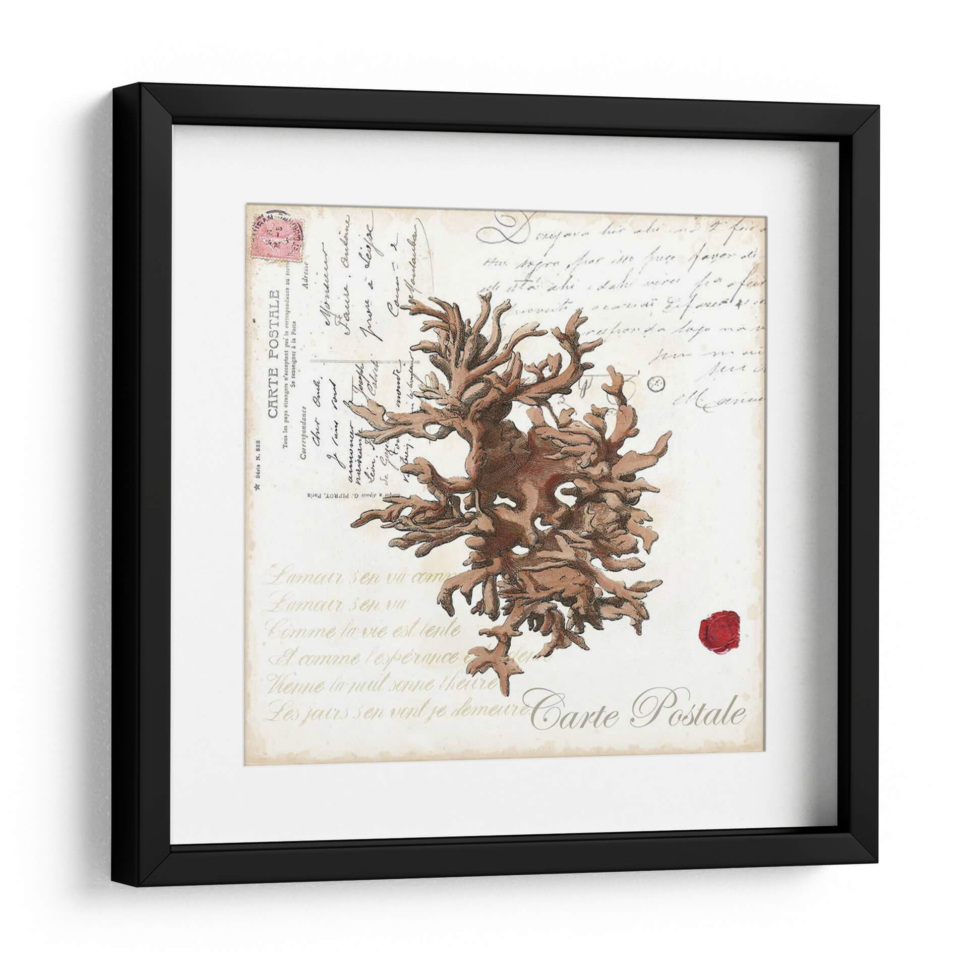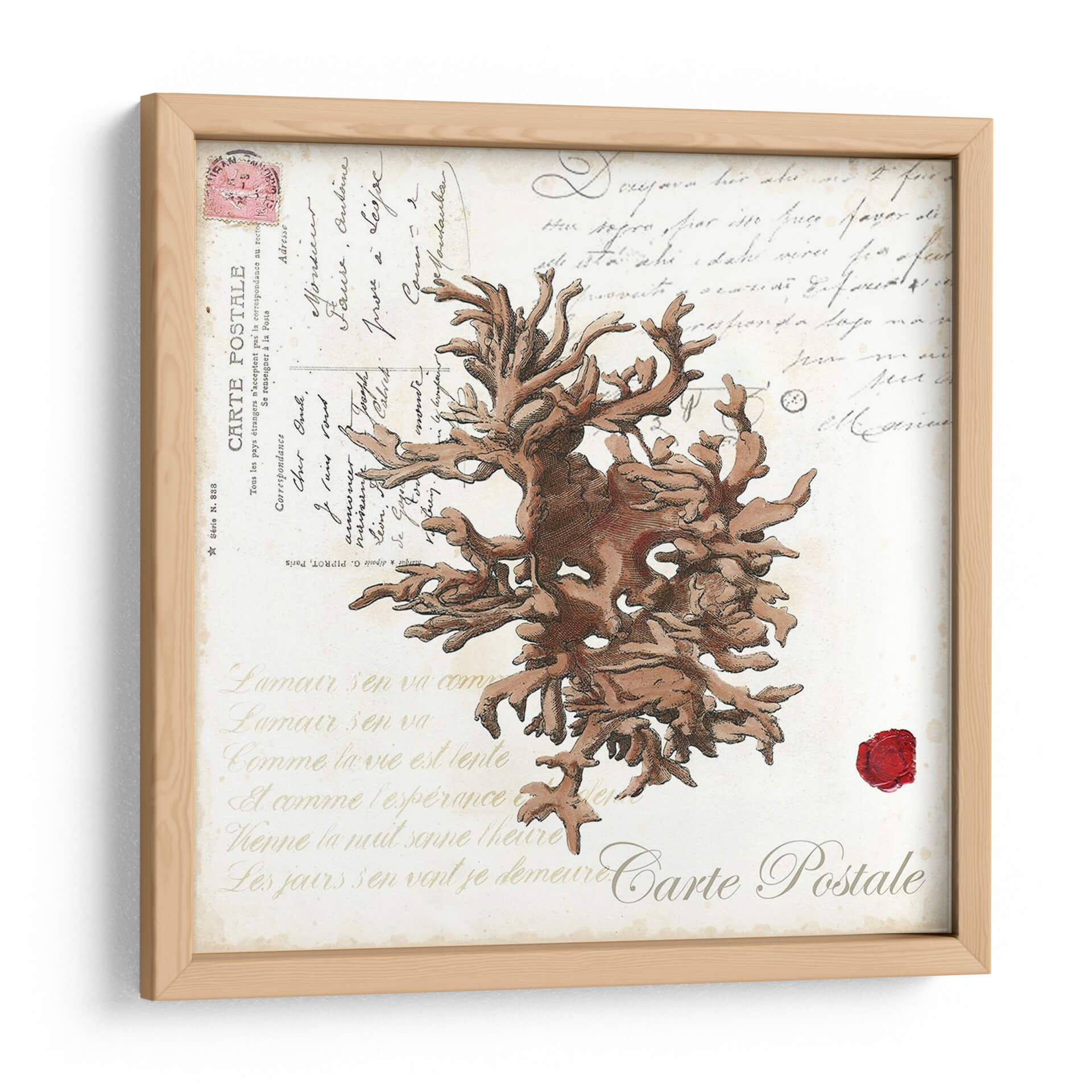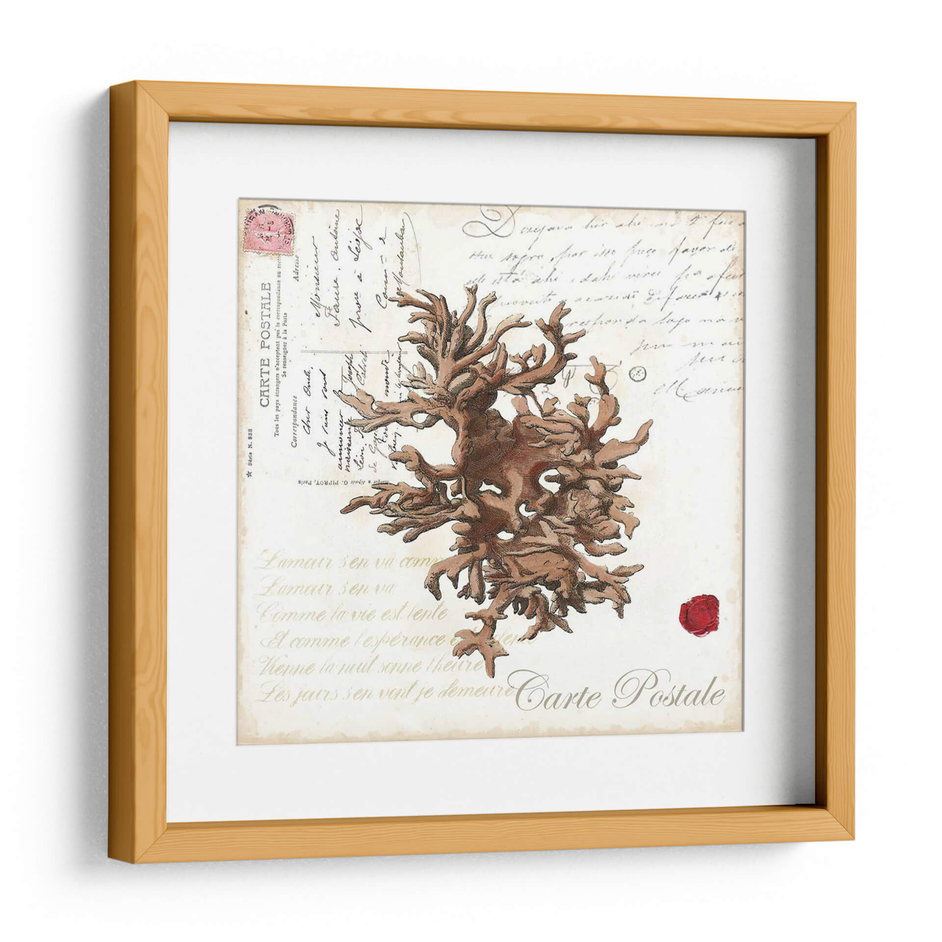 Sumérgete en la belleza orgánica y el encanto vintage con 'Pequeño Romance Du Mer III', una obra de arte que captura la delicadeza de la vida marina. Esta pieza presenta una detallada ilustración de coral en tonos tierra, posada sobre un fondo que evoca cartas antiguas y sellos postales. La paleta de colores, dominada por marrones cálidos y beige, crea una atmósfera serena y nostálgica, perfecta para añadir un toque de sofisticación natural a cualquier espacio. El estilo de ilustración, reminiscentes de grabados botánicos clásicos, se combina con elementos de epístolas manuscritas y el distintivo sello de lacre rojo, aportando una sensación de autenticidad y historia. Ideal para salones, estudios o dormitorios, este cuadro decorativo es una ventana a un mundo submarino tranquilo y elegante, invitando a la contemplación y la calma. Su composición equilibrada y el contraste entre la textura intrincada del coral y la suavidad del fondo lo convierten en un punto focal sutil pero cautivador. Añade un toque de romance marino y elegancia atemporal a tu hogar con esta pieza única.