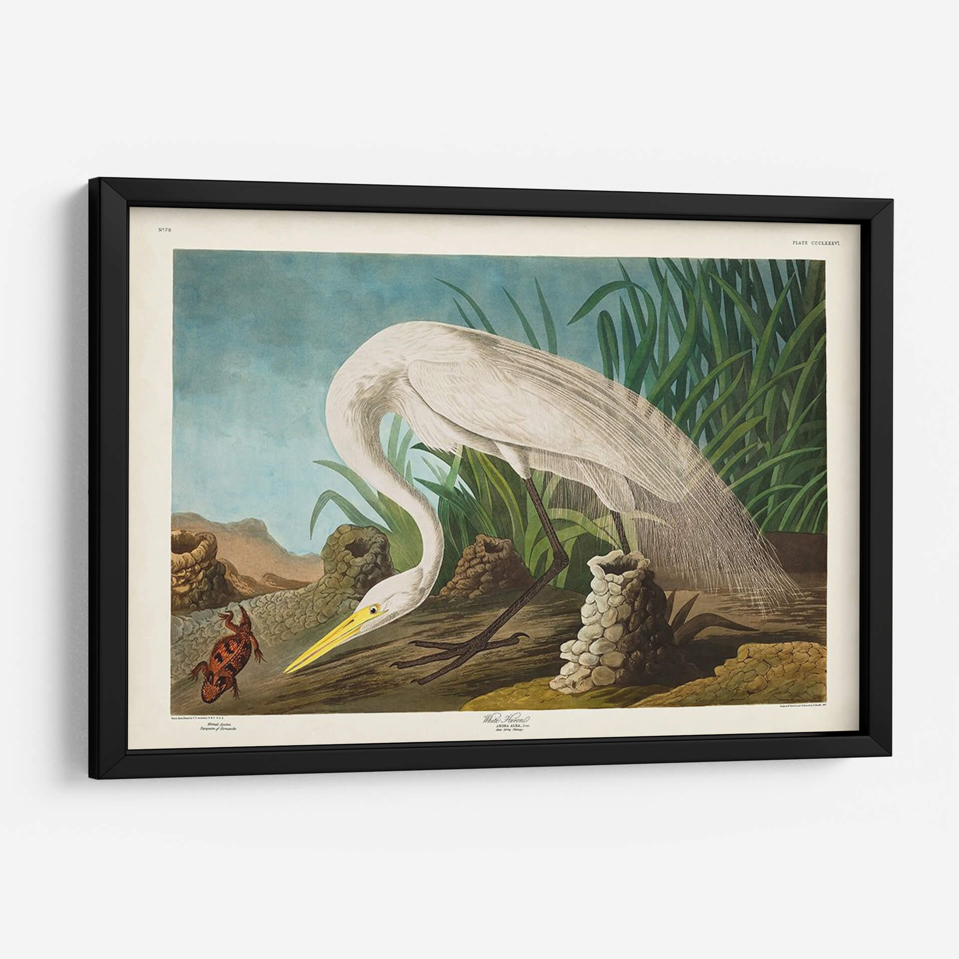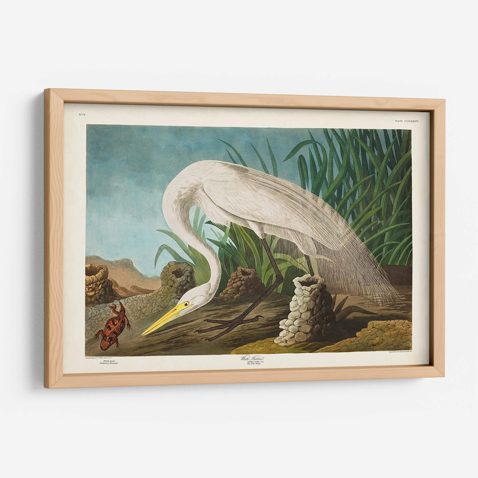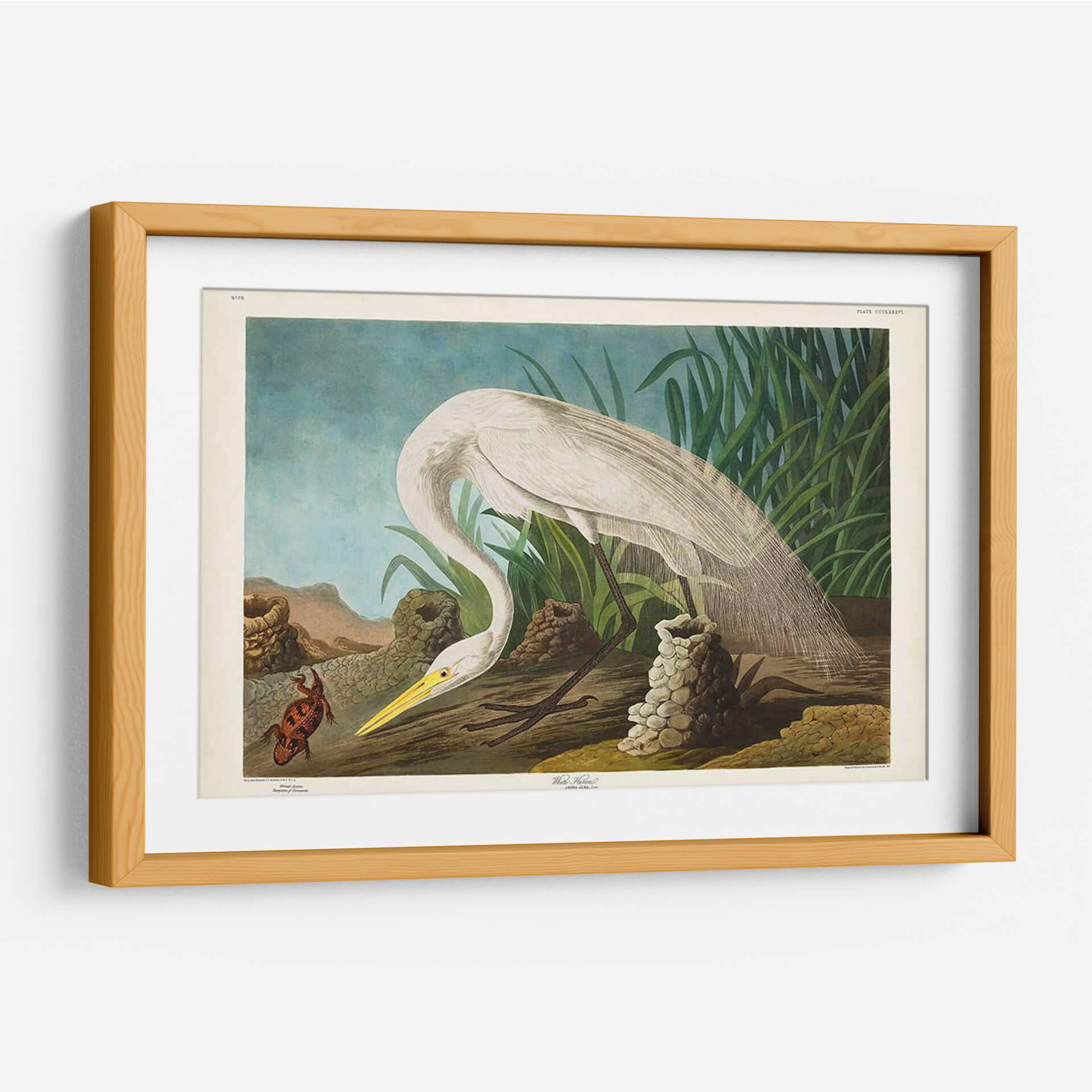 Embárcate en un viaje visual con esta exquisita obra de arte que captura la majestuosidad de una garza blanca en su hábitat natural. La pieza, inspirada en las detalladas ilustraciones de John James Audubon, presenta a la elegante ave con sus plumajes blancos inmaculados desplegándose graciosamente, mientras se inclina con curiosidad hacia un pequeño sapo en un entorno de vegetación exuberante y aguas tranquilas. La paleta de colores, dominada por el azul sereno del cielo y el agua, los verdes vibrantes de las cañas y los tonos tierra del paisaje, crea una atmósfera de paz y contemplación. El estilo de ilustración naturalista, con un enfoque meticuloso en la anatomía y el comportamiento de las especies, aporta un toque de realismo y educa al espectador. Este cuadro decorativo es ideal para añadir un elemento de serenidad y conexión con la naturaleza a cualquier espacio, ya sea una sala de estar, un dormitorio o un estudio. Su composición equilibrada y la interacción entre la garza y el sapo invitan a la reflexión sobre la vida silvestre y la armonía del ecosistema. Añade un toque de elegancia atemporal y aprecio por la belleza natural a tu hogar con esta impresionante representación artística.
