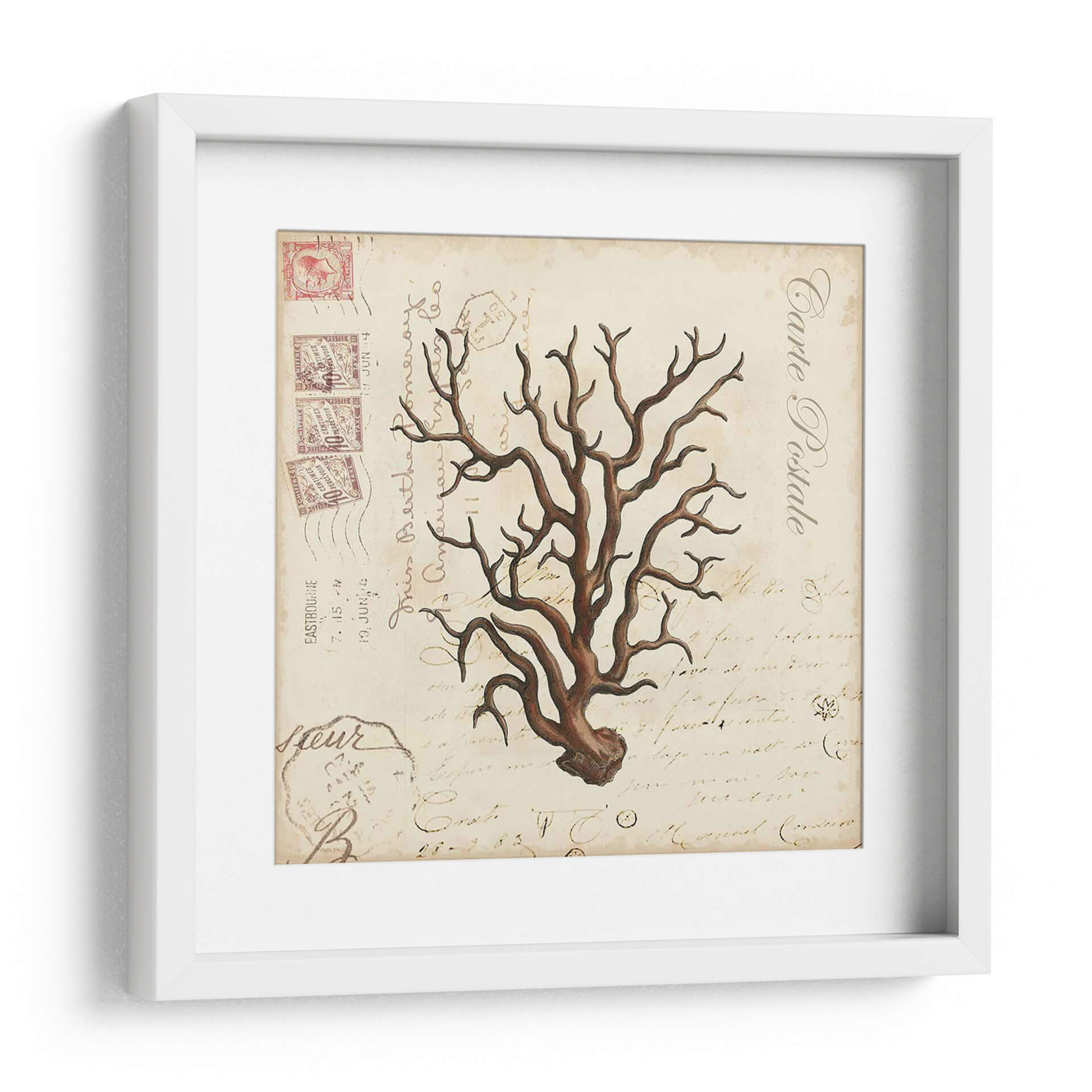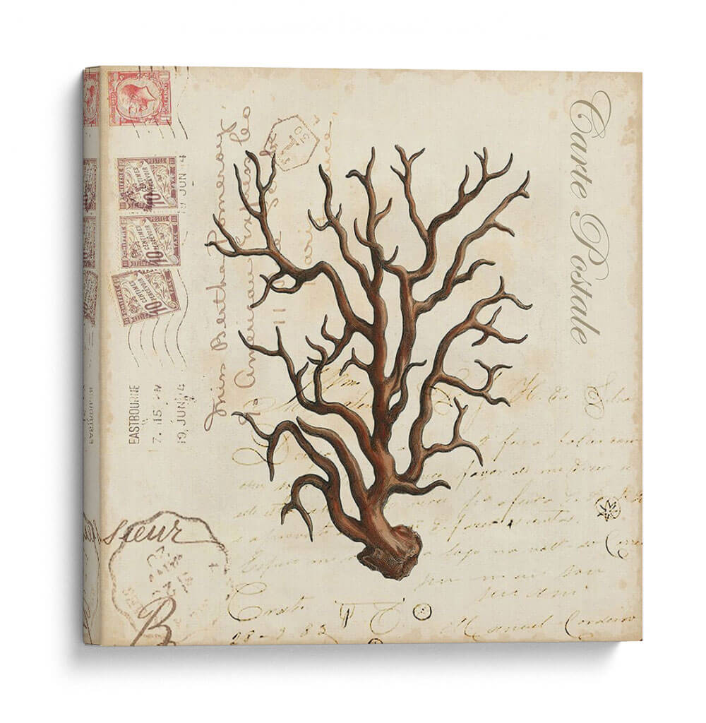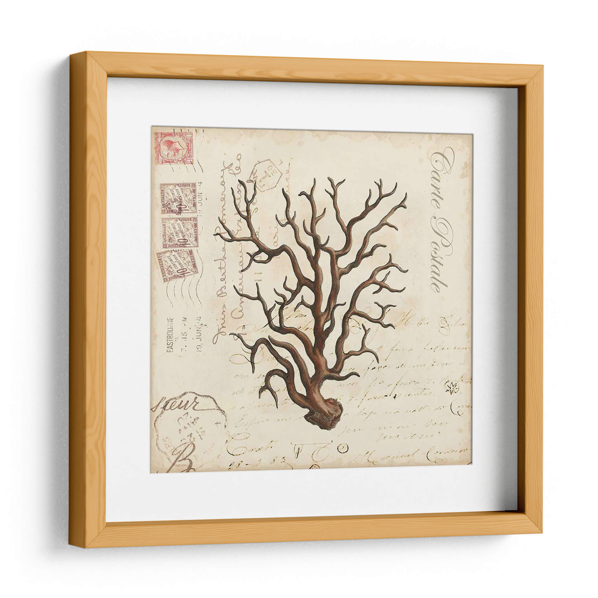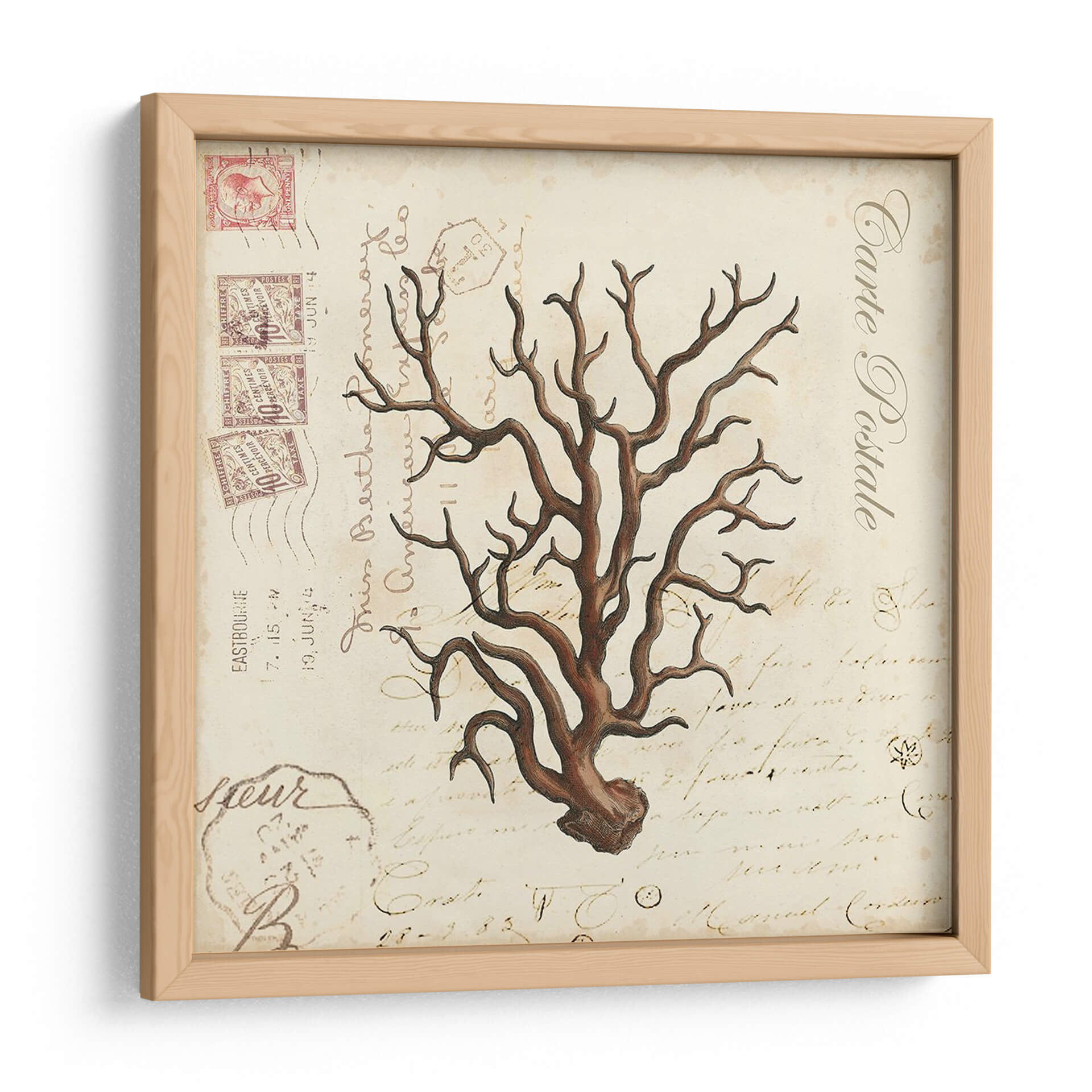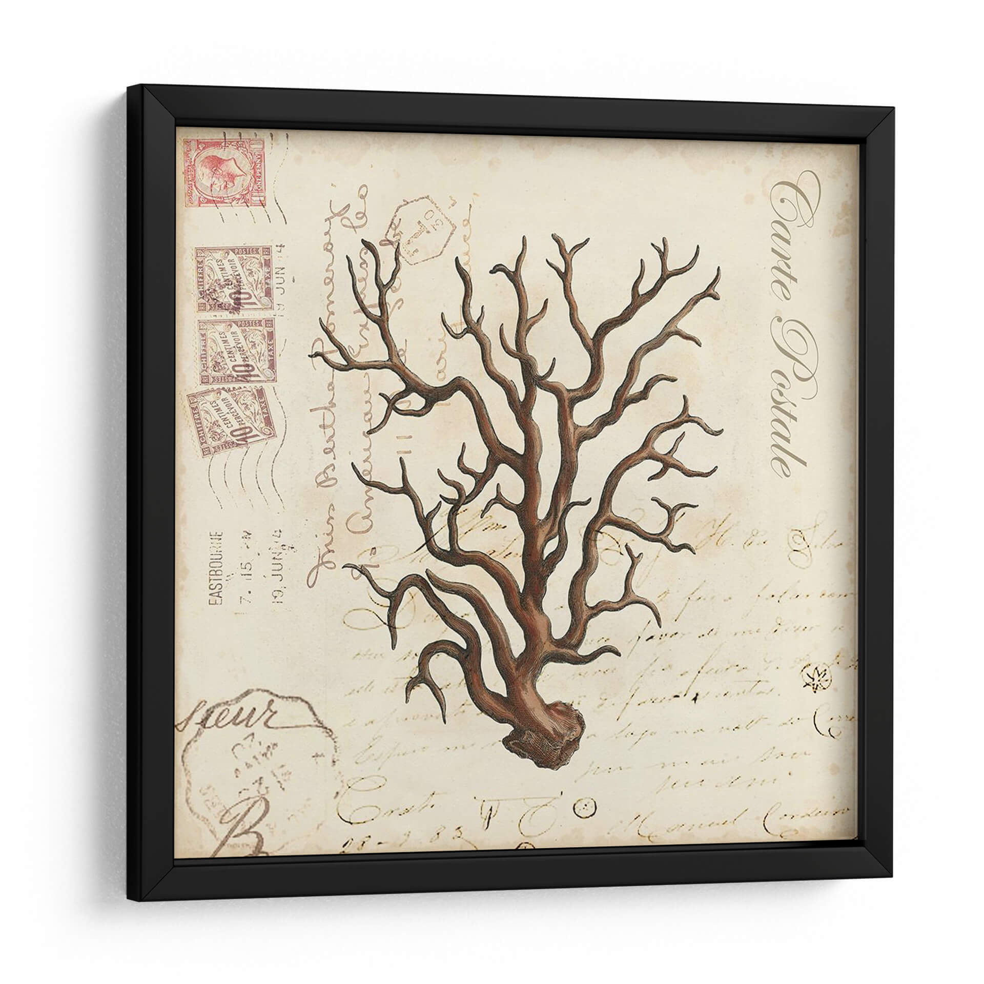 Sumérgete en la serenidad costera con 'Romance Du Mer I', una obra de arte que evoca la belleza atemporal del océano. Este cuadro decorativo presenta una detallada ilustración de un coral marrón sobre un fondo texturizado que simula cartas antiguas y sellos postales, creando una atmósfera de nostalgia y descubrimiento. La paleta de colores suaves, dominada por tonos beige, sepia y marrones, aporta una sensación de calma y calidez, perfecta para cualquier espacio que busque un toque de elegancia natural y sofisticación. Su composición, centrada en la intrincada forma del coral, invita a la contemplación y añade un elemento orgánico y texturizado a tu decoración. Ideal para salas de estar, dormitorios o estudios, este cuadro decorativo es una invitación a soñar con brisas marinas y tesoros escondidos. Su estilo evoca un encanto vintage y una conexión con la naturaleza, transformando cualquier pared en una ventana a un mundo de tranquilidad y belleza marina. Añade esta pieza única a tu colección y deja que su presencia serena eleve tu hogar.