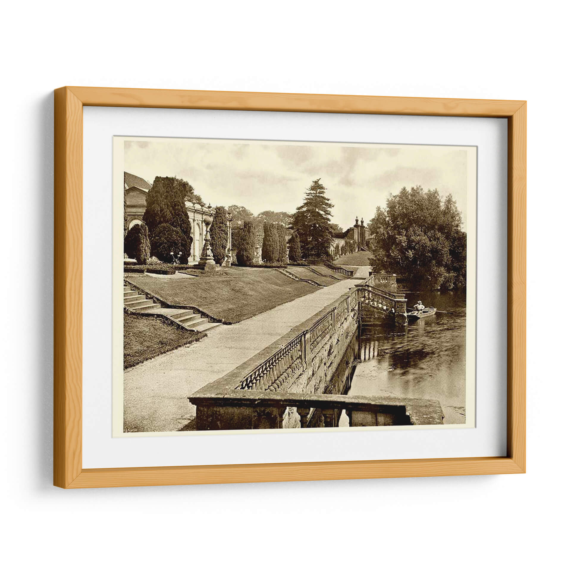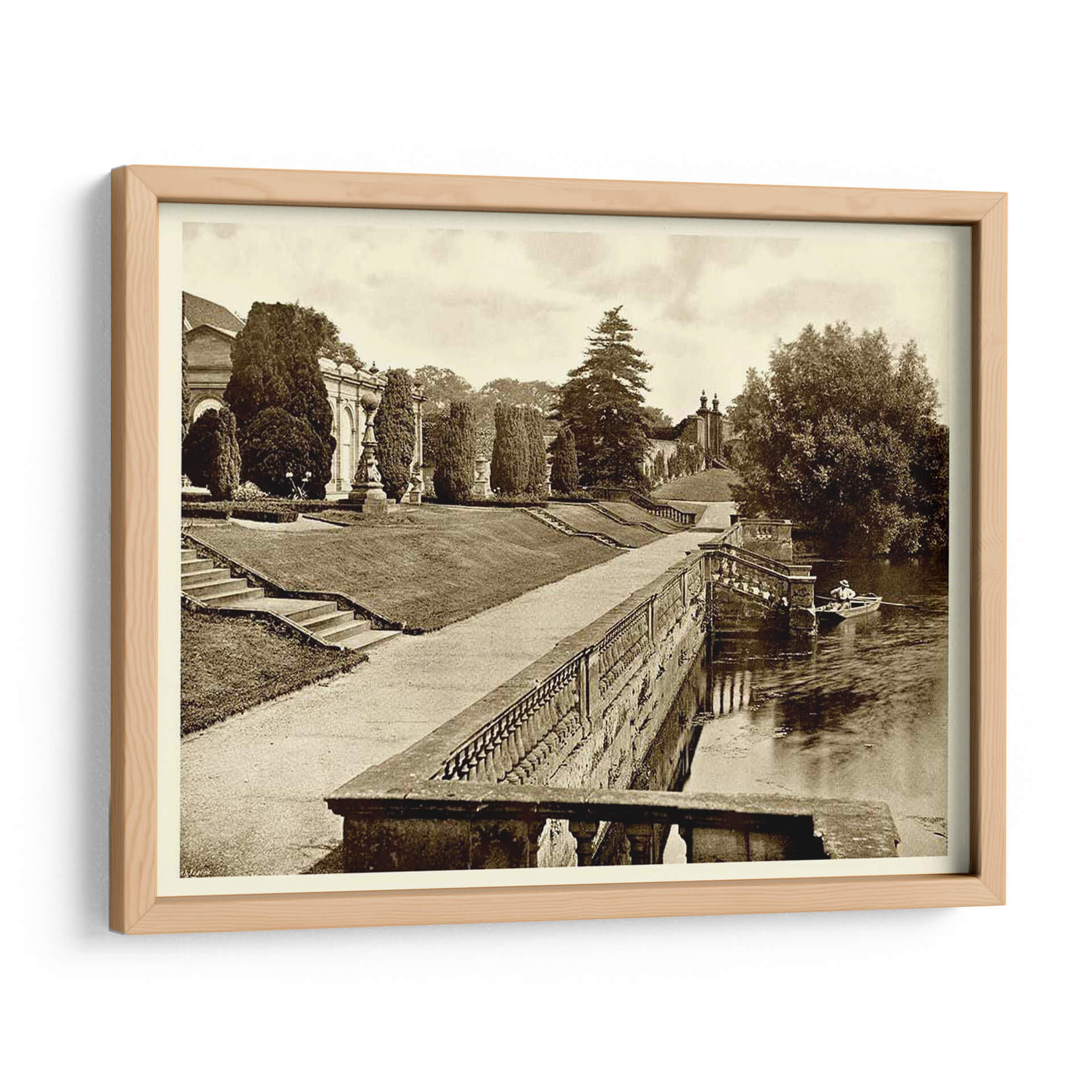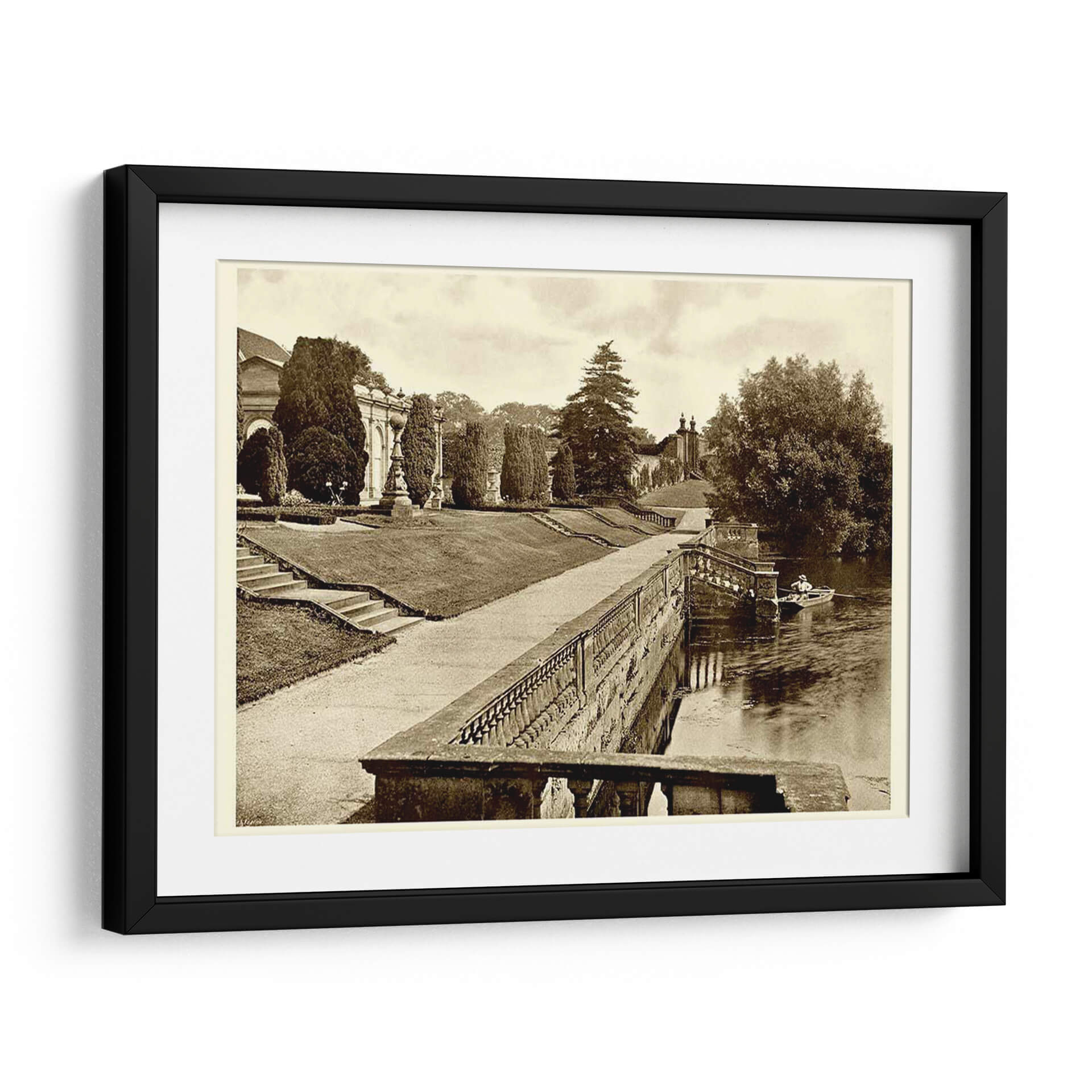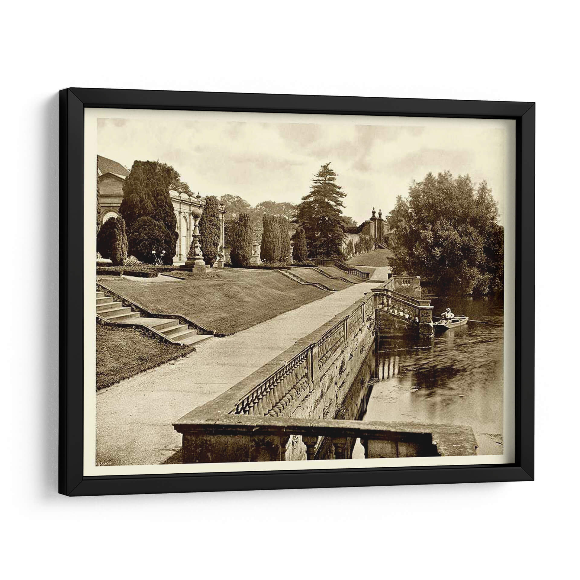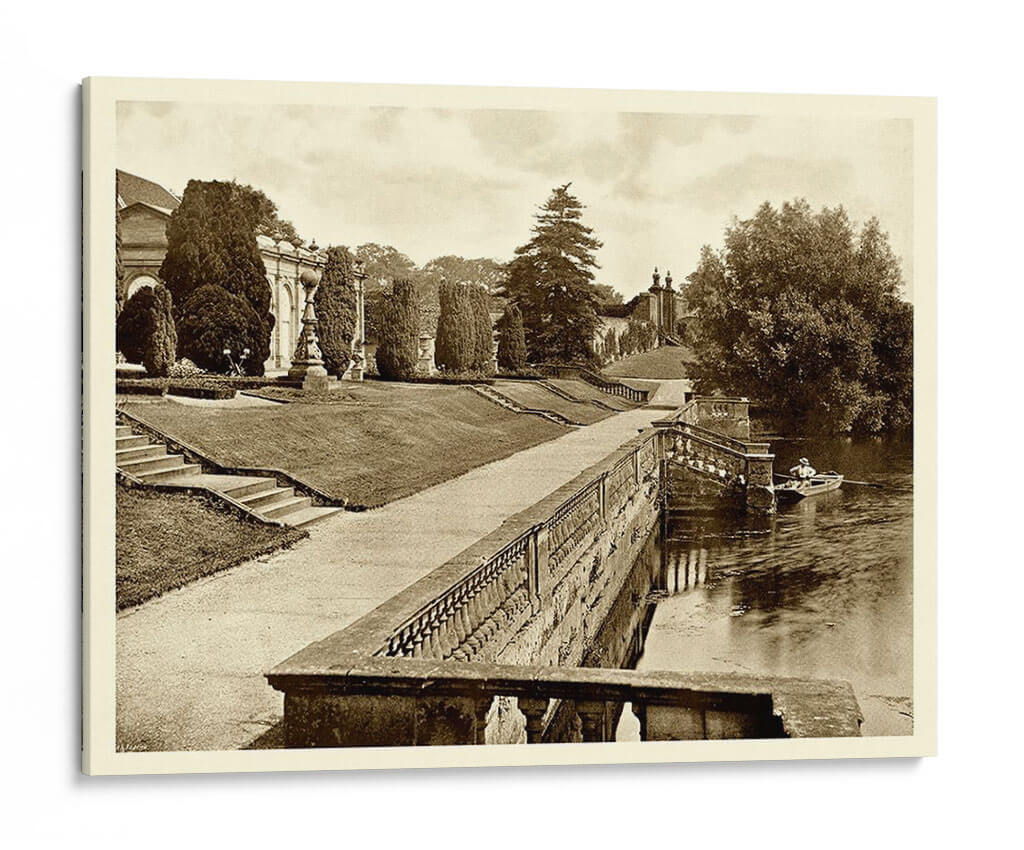 Sumérgete en la serenidad y el encanto atemporal de "Sepia Garden View Iv", una obra que captura la majestuosidad de un jardín clásico con un toque nostálgico. Este cuadro decorativo, presentado en una elegante paleta sepia, evoca una atmósfera de calma y reflexión, ideal para transformar cualquier espacio en un refugio de paz. La composición detalla un exuberante jardín con caminos sinuosos, una imponente arquitectura clásica al fondo y un sereno río donde una solitaria barca navega plácidamente. Los tonos cálidos y apagados del sepia aportan una sensación de historia y profundidad, haciendo de esta pieza una elección sofisticada para salones, estudios u oficinas que busquen un acento de elegancia y tranquilidad. La detallada perspectiva y la cuidadosa iluminación recrean la sensación de un paseo pausado, invitando al espectador a perderse en la escena. "Sepia Garden View Iv" es más que una simple decoración; es una ventana a un momento de serenidad, perfecta para quienes aprecian la belleza clásica y desean infundir a su hogar o lugar de trabajo una sensación de calma y sofisticación perdurable. Una pieza que dialoga con la historia y la naturaleza, aportando carácter y distinción a cualquier ambiente.