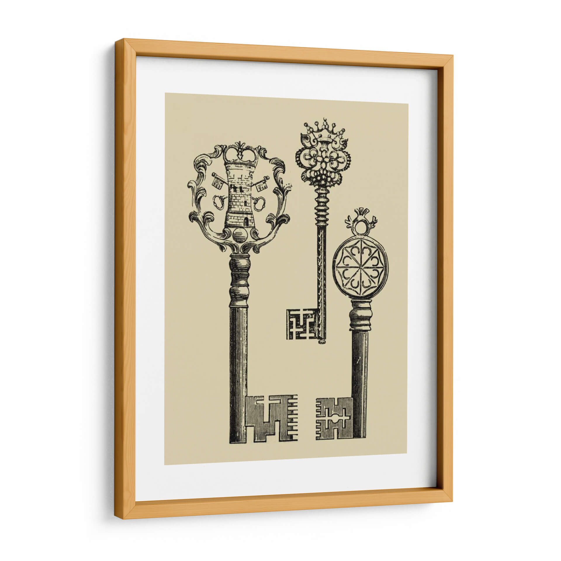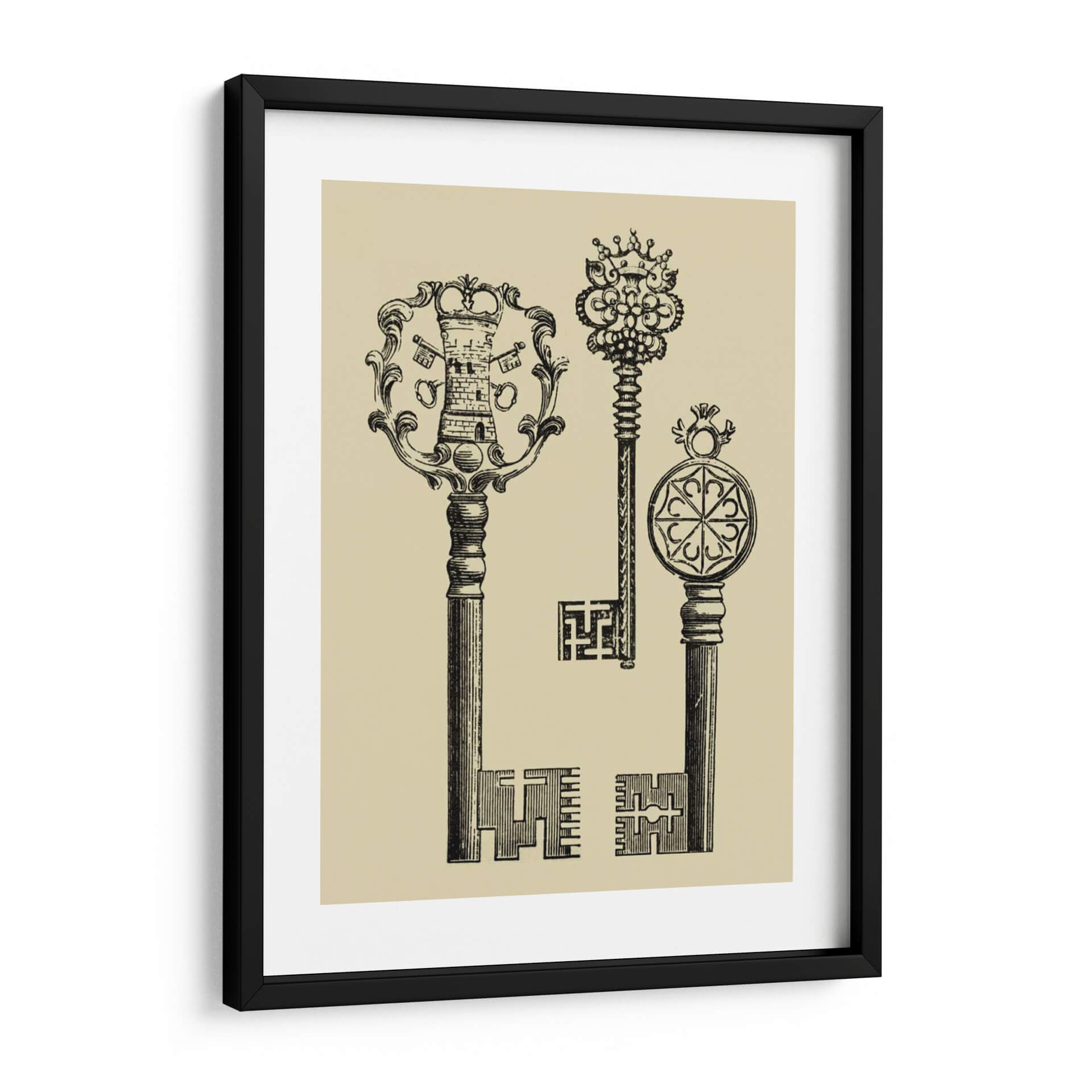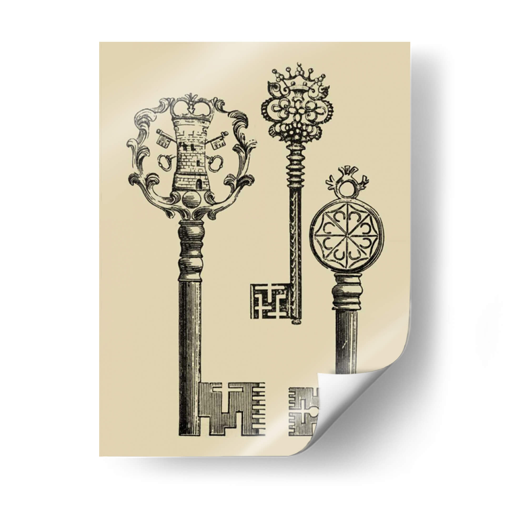 Descubre la obra 'Teclas Antiguas I' de Vision Studio, un fascinante cuadro decorativo que evoca la nostalgia y el misterio de épocas pasadas. Esta pieza, realizada con un estilo de grabado vintage, presenta tres llaves ornamentadas con detalles intrincados que capturan la atención. La llave principal, con una cabeza que emula una torre coronada y un marco floral, se complementa con otras dos llaves de diseño único, una adornada con un elaborado dosel real y la otra con un medallón geométrico. La paleta de colores, dominada por un suave tono beige de fondo y un profundo contraste en negro para las llaves, crea una atmósfera elegante y atemporal. Ideal para aquellos que buscan añadir un toque de historia, sofisticación y un punto de intriga a su decoración. Este cuadro decorativo es perfecto para salones, estudios o bibliotecas, añadiendo un aire de conocimiento y descubrimiento. Su composición vertical y el estilo detallado lo convierten en una pieza versátil que puede complementar tanto decoraciones clásicas como modernas, ofreciendo un diálogo visual sobre la importancia de lo que custodiamos. Transforma tu espacio con la elegancia y el simbolismo de 'Teclas Antiguas I'.