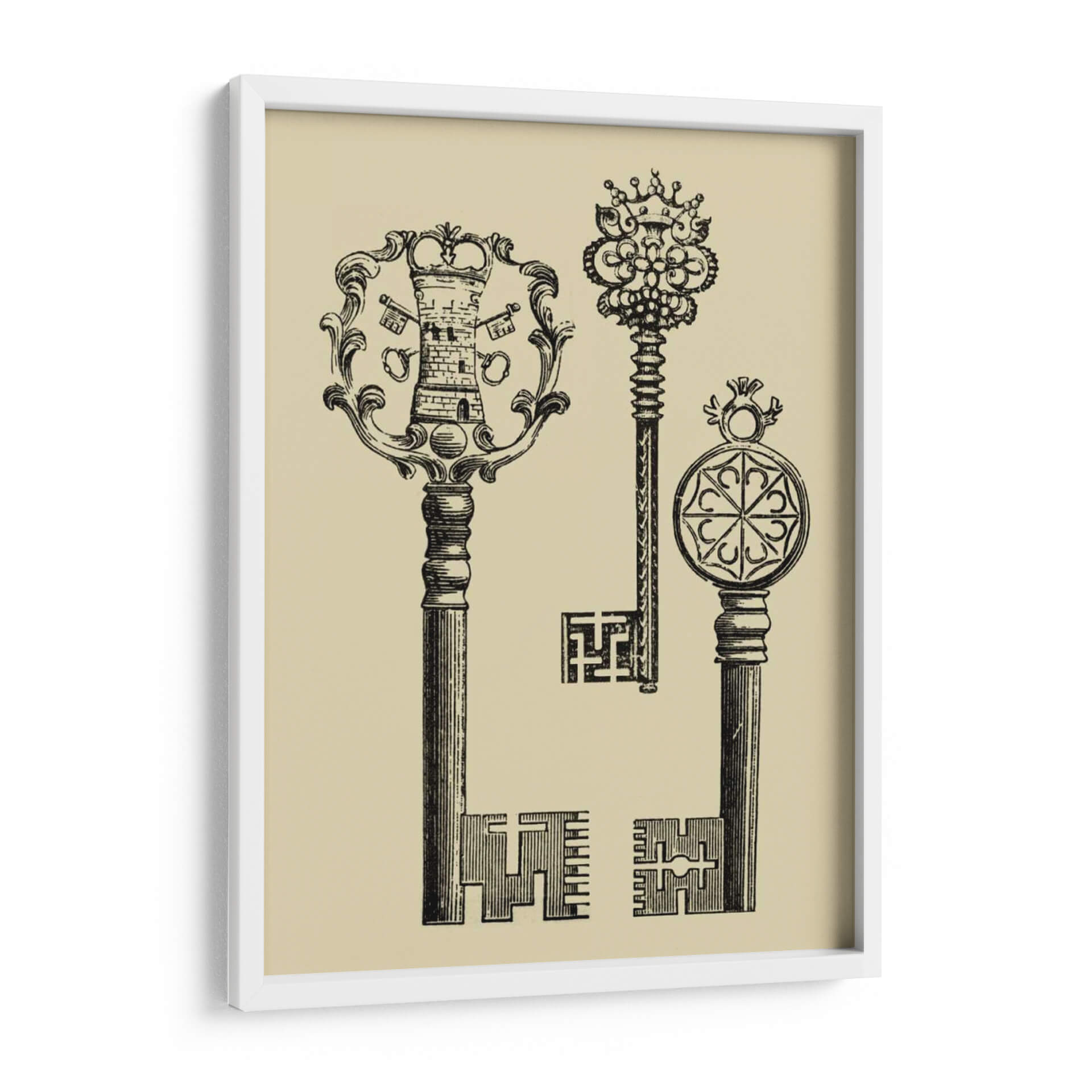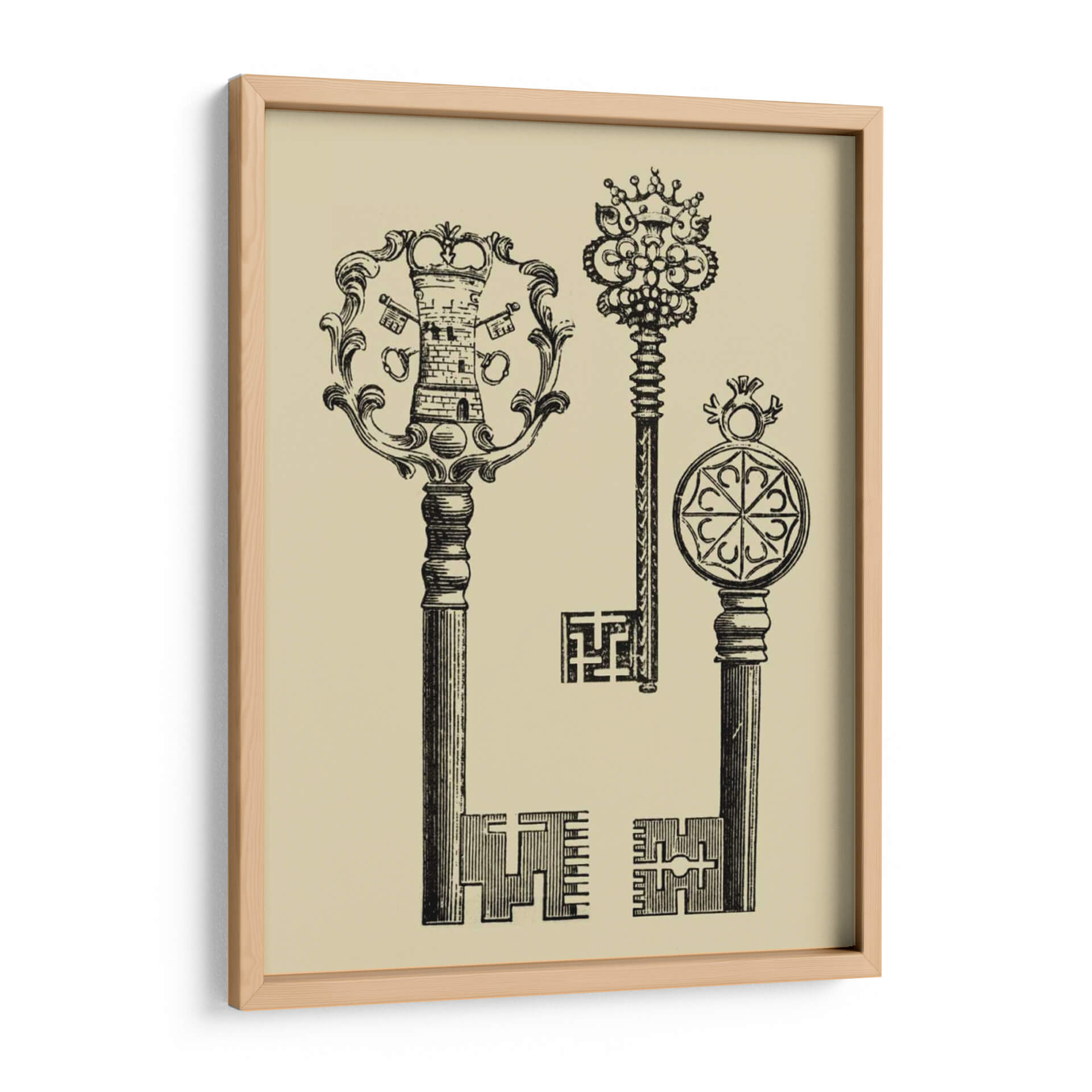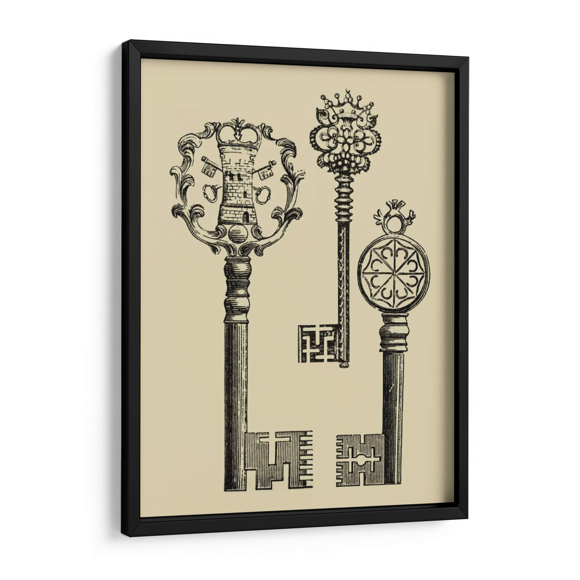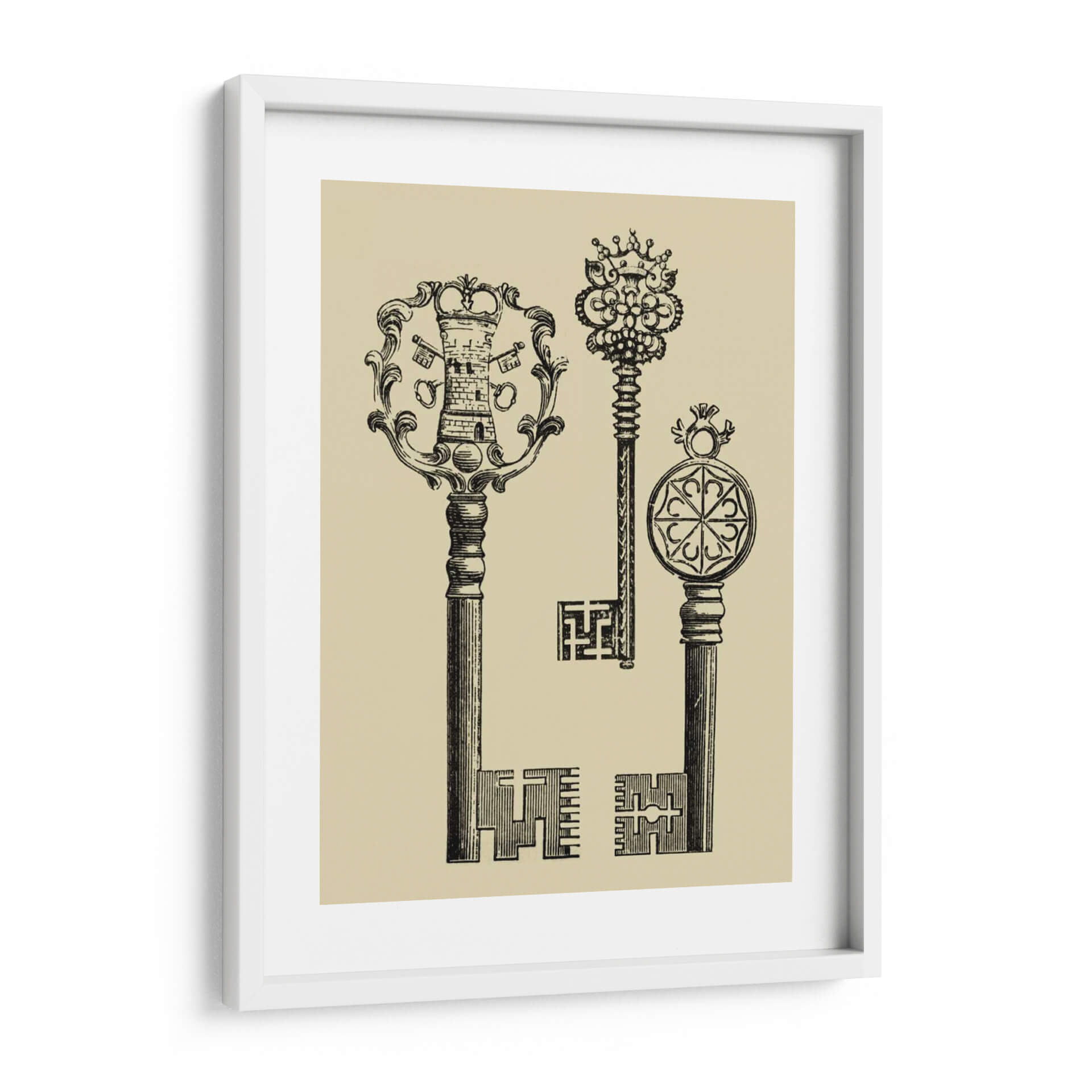Descubre la obra 'Teclas Antiguas I' de Vision Studio, un fascinante cuadro decorativo que evoca la nostalgia y el misterio de épocas pasadas. Esta pieza, realizada con un estilo de grabado vintage, presenta tres llaves ornamentadas con detalles intrincados que capturan la atención. La llave principal, con una cabeza que emula una torre coronada y un marco floral, se complementa con otras dos llaves de diseño único, una adornada con un elaborado dosel real y la otra con un medallón geométrico. La paleta de colores, dominada por un suave tono beige de fondo y un profundo contraste en negro para las llaves, crea una atmósfera elegante y atemporal. Ideal para aquellos que buscan añadir un toque de historia, sofisticación y un punto de intriga a su decoración. Este cuadro decorativo es perfecto para salones, estudios o bibliotecas, añadiendo un aire de conocimiento y descubrimiento. Su composición vertical y el estilo detallado lo convierten en una pieza versátil que puede complementar tanto decoraciones clásicas como modernas, ofreciendo un diálogo visual sobre la importancia de lo que custodiamos. Transforma tu espacio con la elegancia y el simbolismo de 'Teclas Antiguas I'.