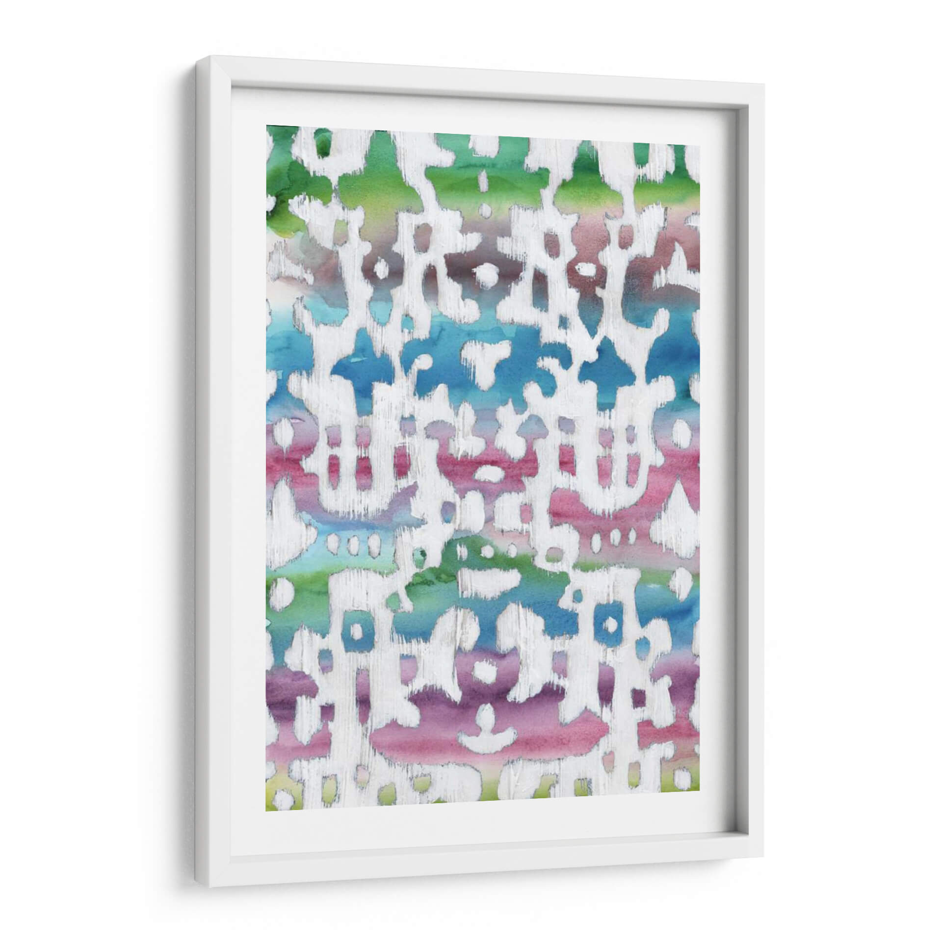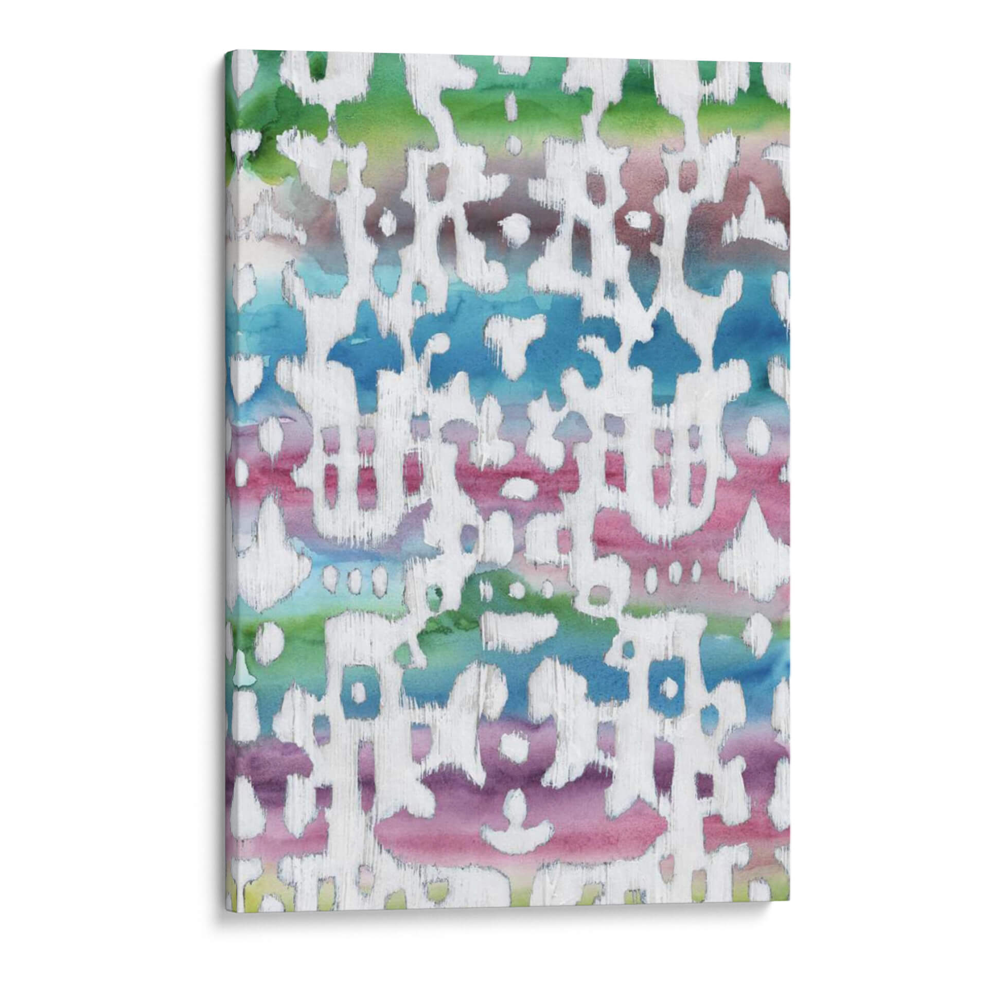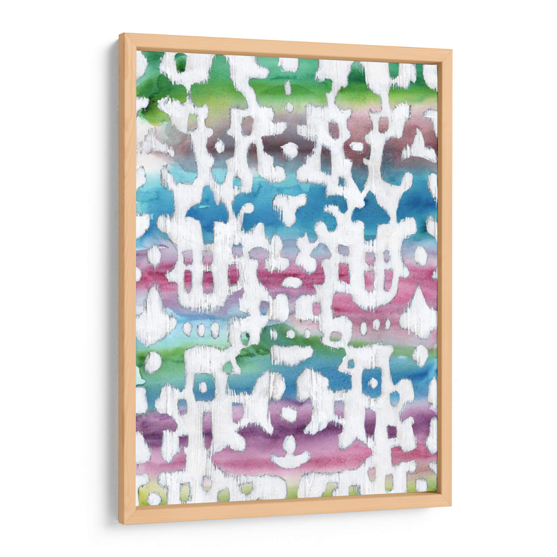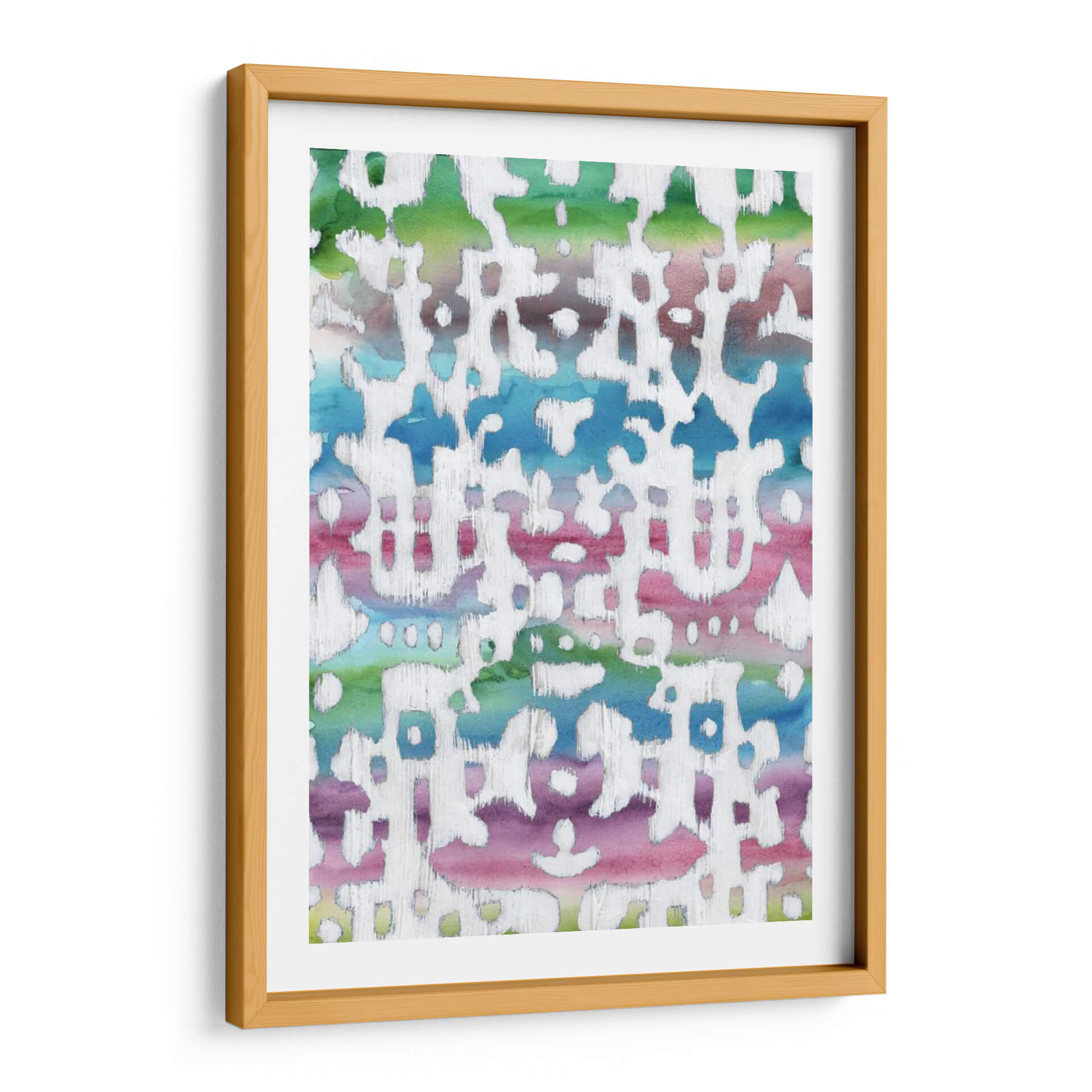 Sumérgete en la belleza etérea de "Acuarela Ikat I", una obra de arte que fusiona la delicadeza de la acuarela con un patrón geométrico inspirado en el tradicional Ikat. Este cuadro decorativo presenta una vibrante paleta de colores que incluye verdes esmeralda, azules profundos, púrpuras cautivadores y toques de rosa, todo ello sobre un fondo blanco texturizado que evoca la madera o el papel envejecido. Las formas orgánicas y fluidas de las pinceladas de acuarela contrastan maravillosamente con la estructura repetitiva del diseño, creando una pieza visualmente dinámica y atractiva. La atmósfera que emana es de calma y sofisticación, perfecta para añadir un toque de color y textura a cualquier espacio. Ideal para salones modernos, dormitorios serenos u oficinas que buscan inspiración, "Acuarela Ikat I" es una declaración de estilo contemporáneo y apreciación por las técnicas artesanales reinterpretadas. Su diseño abstracto y orgánico lo convierte en un punto focal versátil que complementa una amplia gama de estilos de decoración, desde el bohemio hasta el escandinavo, aportando una sensación de calidez y vitalidad. Transforma tu hogar con esta pieza única que celebra la intersección entre la tradición y la modernidad.