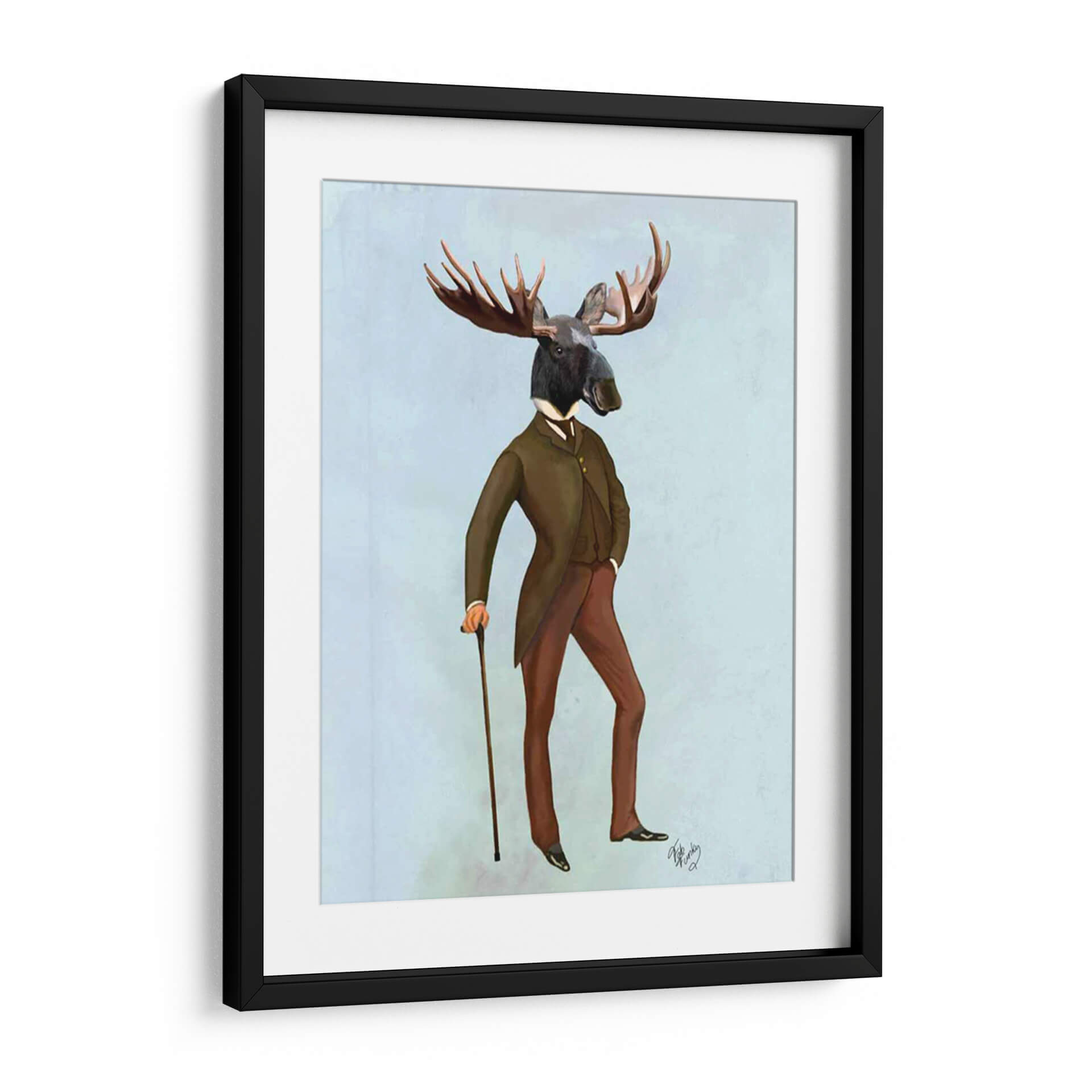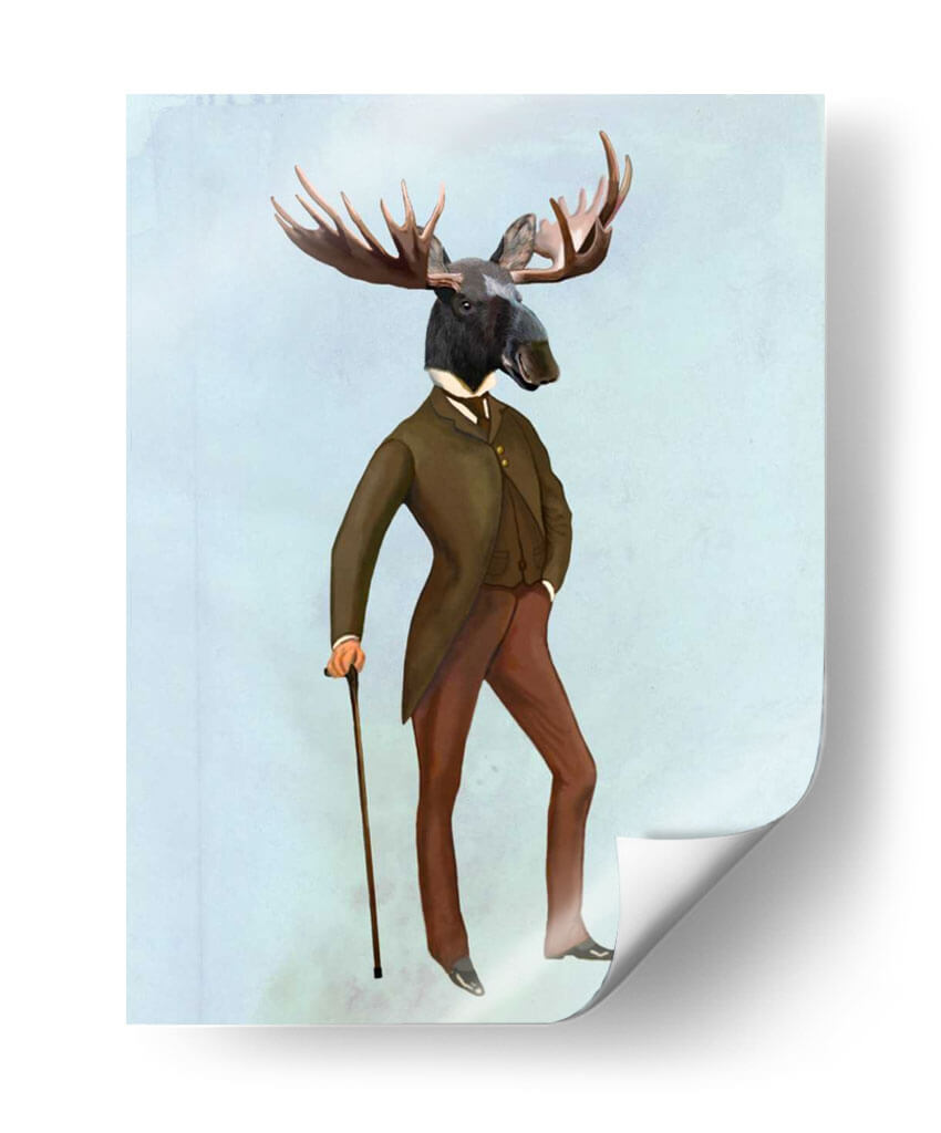 Este cautivador cuadro decorativo, 'Alces En Traje Completo' del artista Fab Funky, presenta una figura de alce ataviada con elegante vestimenta de época, aportando un toque de surrealismo y sofisticación a cualquier espacio. La obra se distingue por su paleta de colores suaves, dominada por tonos azules celestes en el fondo, que contrastan sutilmente con el traje marrón y los pantalones terracota del alce. La composición es equilibrada, con el alce ocupando el centro y portando un bastón, lo que le confiere una pose distinguida y casi humana. El estilo combina elementos realistas en la representación del animal con un toque de fantasía y humor, creando una pieza única que invita a la contemplación y a la conversación. Ideal para salones modernos, estudios u oficinas que buscan una declaración de estilo audaz y original, este cuadro decorativo es perfecto para quienes aprecian el arte que desafía lo convencional y añade personalidad a la decoración. Su atmósfera es a la vez serena y enigmática, capturando la atención sin abrumar.