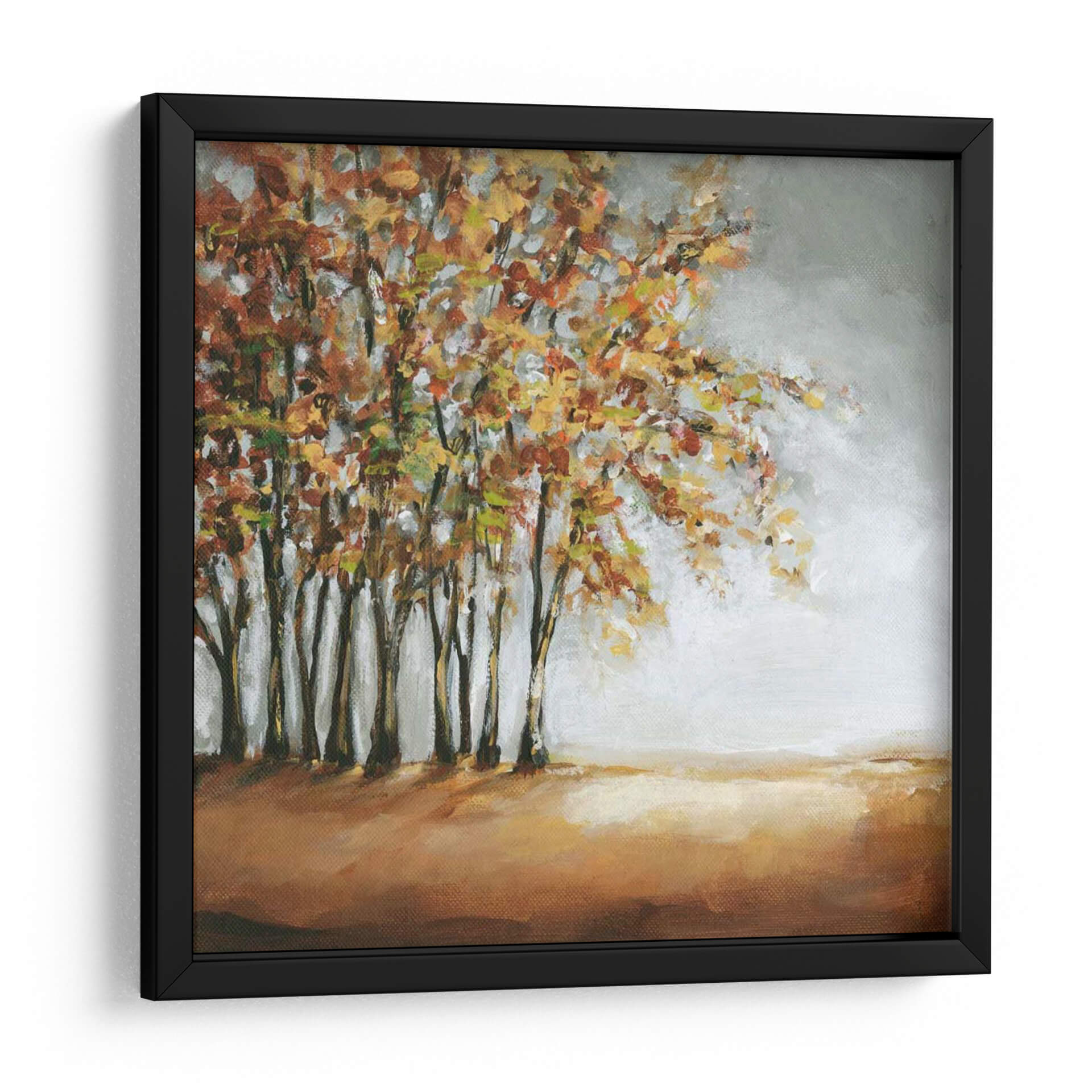 Sumérgete en la calidez y la serenidad del otoño con nuestro evocador cuadro decorativo 'Árbol en Otoño', una obra maestra de Christina Long. Esta pieza captura la esencia efímera de la estación, con un denso grupo de árboles cuyas hojas estallan en una vibrante paleta de ocres, dorados y rojizos, contrastando con el cielo grisáceo y sereno. La técnica pictórica, con pinceladas sueltas y texturizadas, aporta profundidad y movimiento, invitando al espectador a perderse en la escena. El suelo, representado en tonos tierra, ancla la composición y refuerza la sensación de un paisaje natural. Ideal para añadir un toque de naturaleza y tranquilidad a tu hogar u oficina, este cuadro decorativo es perfecto para crear un ambiente acogedor y contemplativo. Transforma tu espacio con la belleza atemporal del otoño y la expresividad artística de Christina Long. Su estilo contemporáneo pero con reminiscencias clásicas lo hace versátil para diversos estilos decorativos, desde el rústico hasta el moderno.