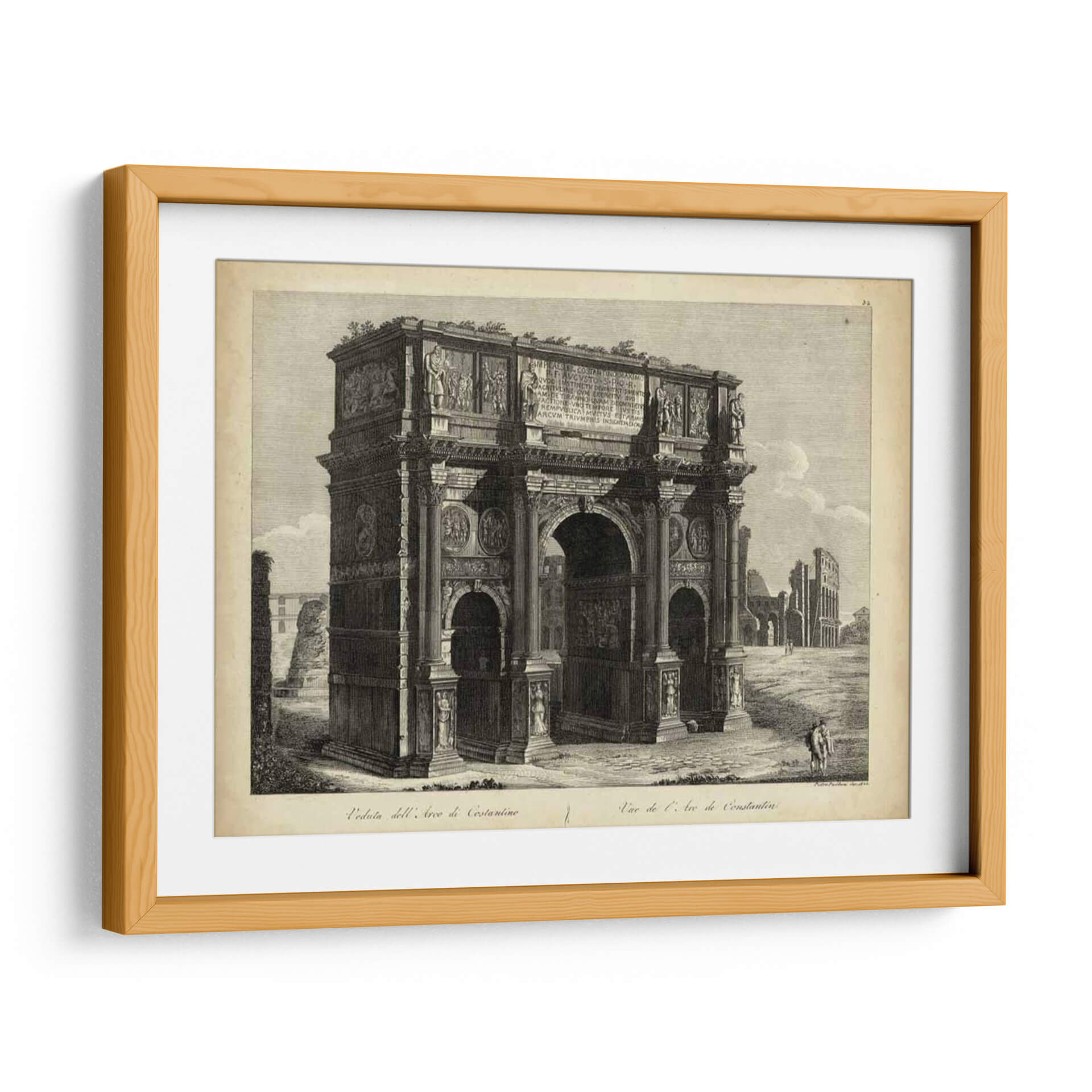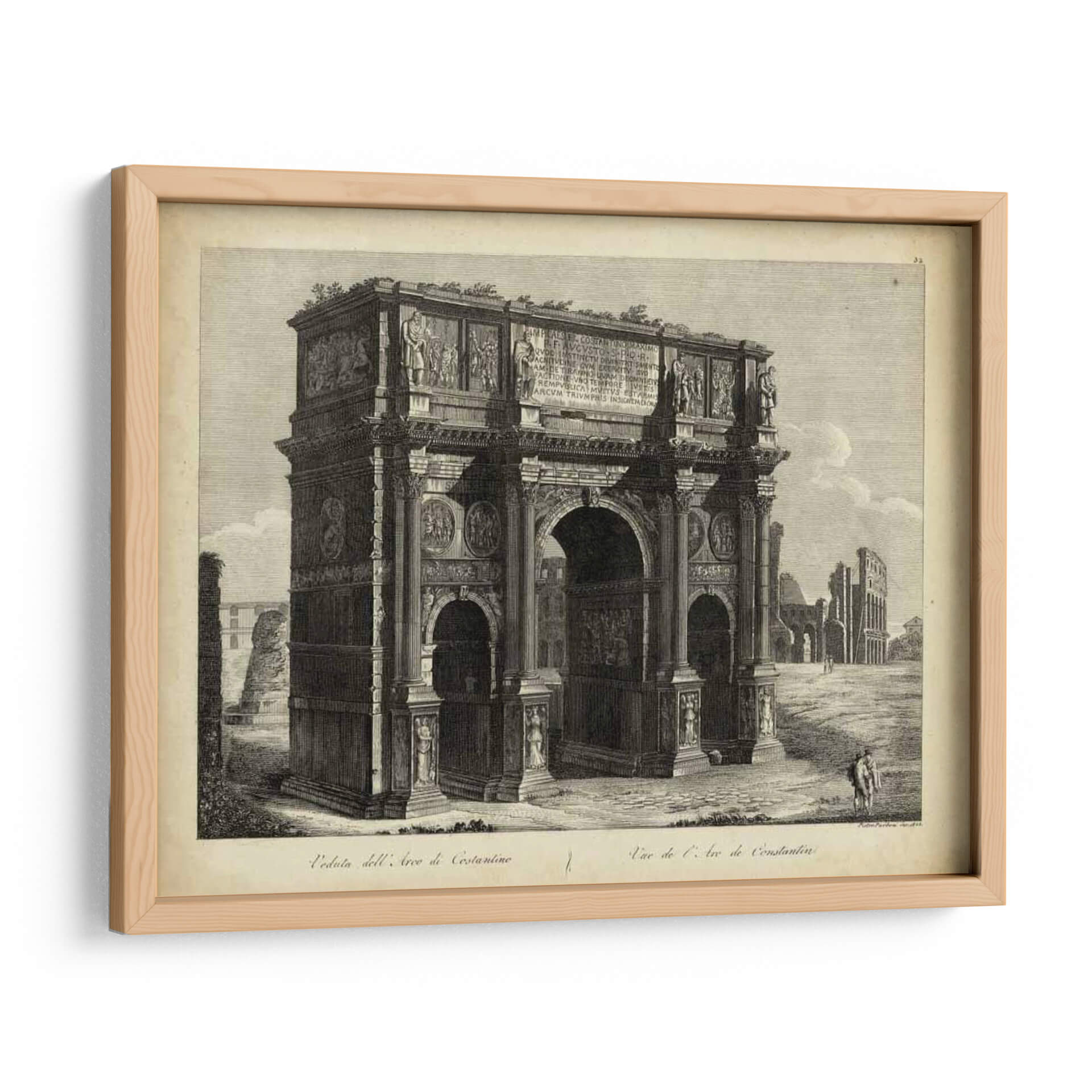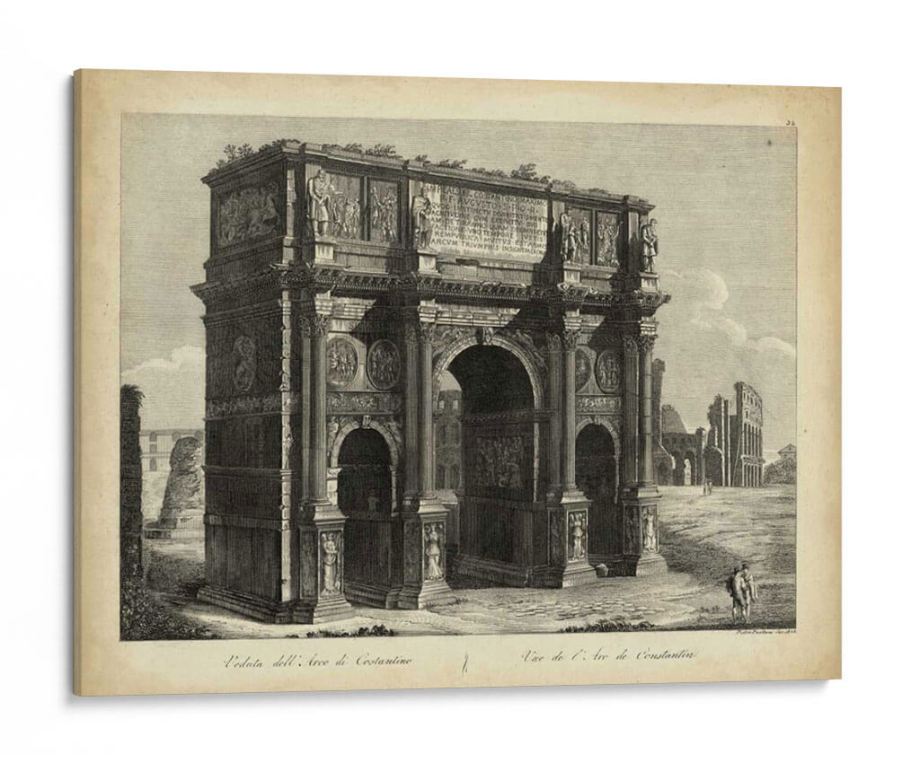 Este grabado detallado del Arco de Constantino, creado por Pietro Parboni, transporta la magnificencia de la antigua Roma directamente a su hogar. La obra maestra captura la grandiosidad arquitectónica y la intrincada ornamentación de este icónico monumento histórico. La técnica de grabado aporta una textura rica y profundidad a la imagen, resaltando cada detalle escultórico y cada inscripción. La paleta de colores monocromática, característica de los grabados clásicos, evoca una sensación de atemporalidad y elegancia, perfecta para añadir un toque de sofisticación a cualquier espacio. Los contrastes de luz y sombra están magistralmente representados, creando un efecto dramático que da vida a la estructura. Es una pieza ideal para amantes de la historia, la arquitectura clásica o para quienes buscan un cuadro decorativo que inspire reflexión y admiración. Imagine este cuadro decorativo como un punto focal en su sala de estar, un elemento de distinción en su estudio o un recordatorio de la grandeza del pasado en su oficina. Su presencia añadirá un aire de erudición y refinamiento, convirtiendo cualquier pared en una ventana a la historia.