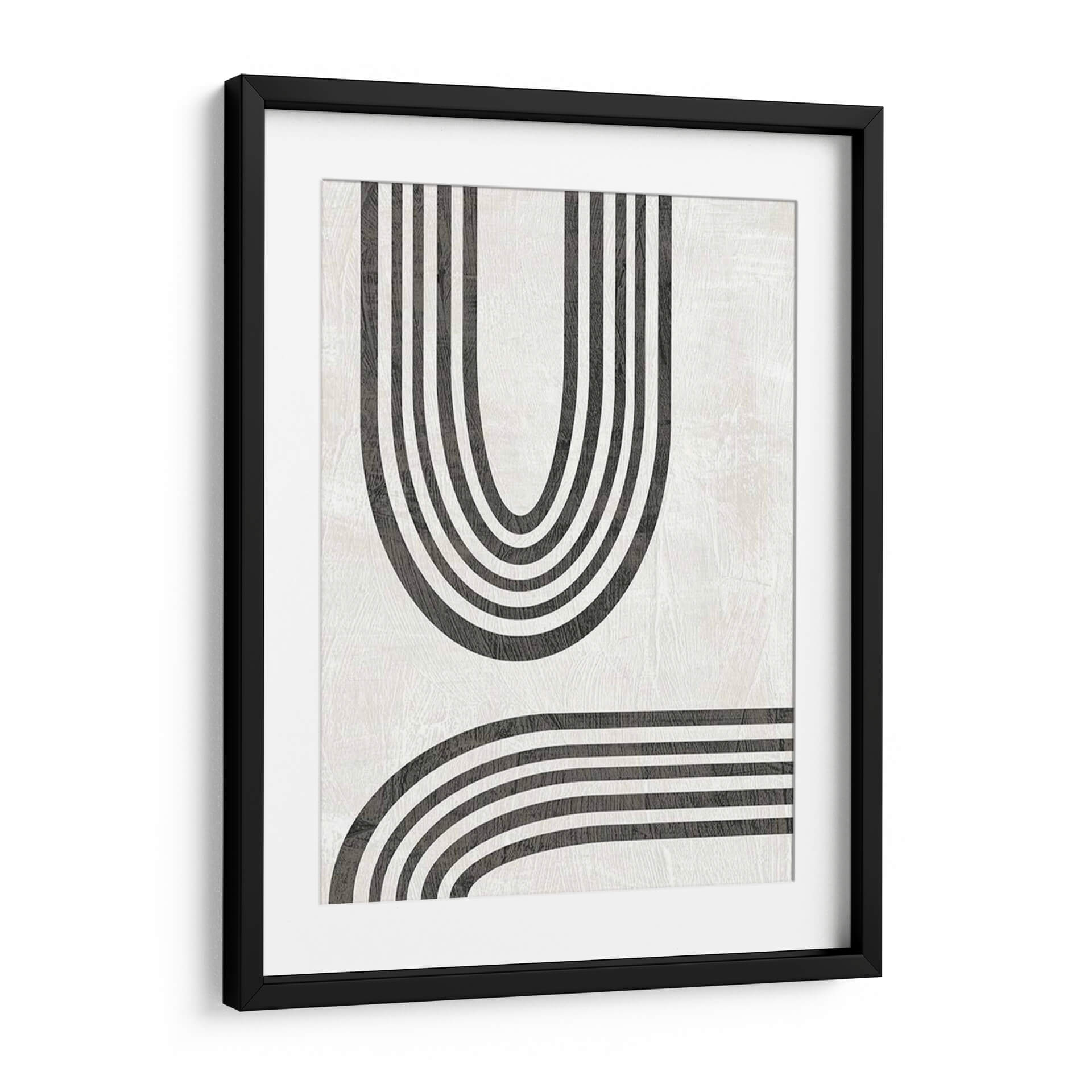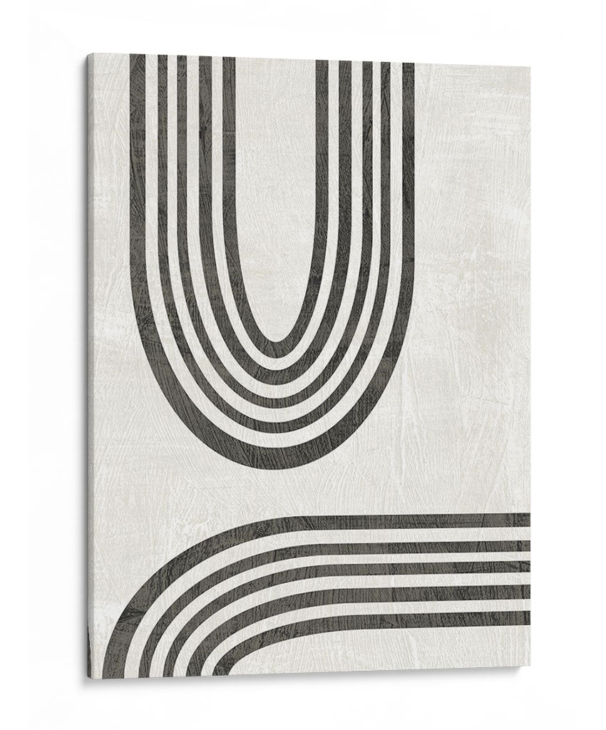 Adéntrate en la elegancia moderna con "Arco Moderno II", una obra de arte abstracto que redefine la sofisticación visual. Esta pieza cautiva con sus líneas curvas y paralelas en tonos de carbón sobre un fondo texturizado de color crema, creando un contraste sutil pero impactante. La composición se centra en dos elementos arqueados, uno superior más prominente y otro inferior que se extiende horizontalmente, evocando una sensación de movimiento y equilibrio. El estilo minimalista y geométrico de June Erica Vess se manifiesta en la pureza de las formas, invitando a la contemplación y aportando una atmósfera de calma y orden a cualquier espacio. Este cuadro decorativo es perfecto para salones contemporáneos, oficinas o dormitorios que buscan un toque de arte refinado y contemporáneo. Su paleta de colores neutros y su diseño atemporal lo convierten en una adición versátil que complementa una amplia gama de estilos decorativos, desde el escandinavo hasta el moderno industrial. "Arco Moderno II" no es solo una decoración; es una declaración de estilo que aporta profundidad y serenidad a tu entorno.