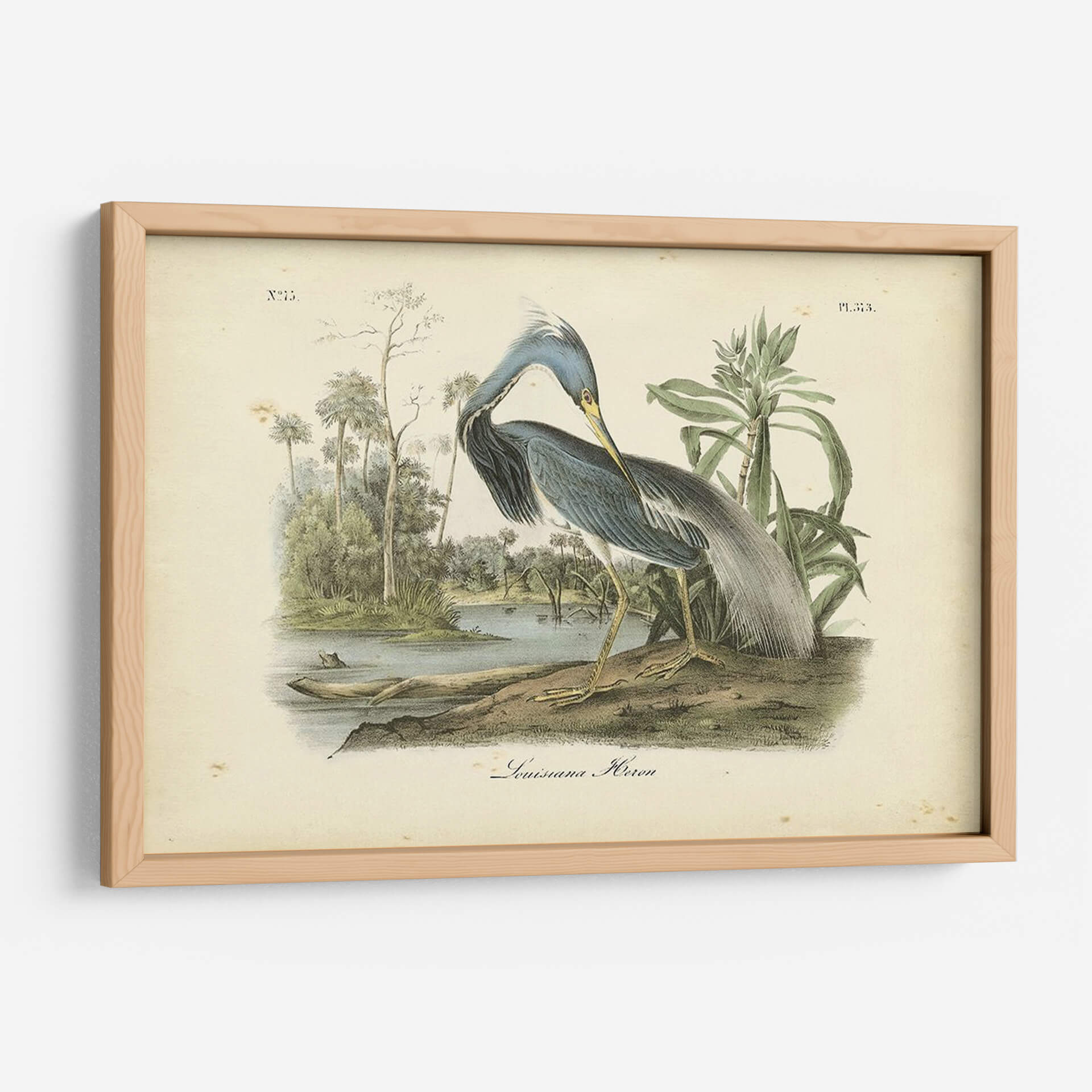 Embellece tu hogar u oficina con esta exquisita representación del Martinete de Luisiana, una obra maestra del reconocido naturalista John James Audubon. Este cuadro decorativo captura la majestuosidad de la naturaleza con un detalle asombroso y una paleta de colores serenos. La figura central del ave, con su plumaje azulado y grisáceo, se posa elegantemente a orillas de un cuerpo de agua rodeado de exuberante vegetación tropical y palmeras. La composición, inspirada en las ilustraciones científicas clásicas, ofrece una perspectiva equilibrada que atrae la mirada hacia la delicadeza del ave. Los tonos tierra del suelo, el verde vibrante de las plantas y el azul suave del agua crean una atmósfera de tranquilidad y conexión con el entorno natural. Ideal para añadir un toque de elegancia y serenidad a cualquier estancia, desde un salón de estar moderno hasta un estudio o dormitorio que busque inspiración en la fauna y la botánica. Este cuadro decorativo es perfecto para amantes de la naturaleza, la ornitología y el arte clásico, aportando un aire de sofisticación atemporal a tu decoración.