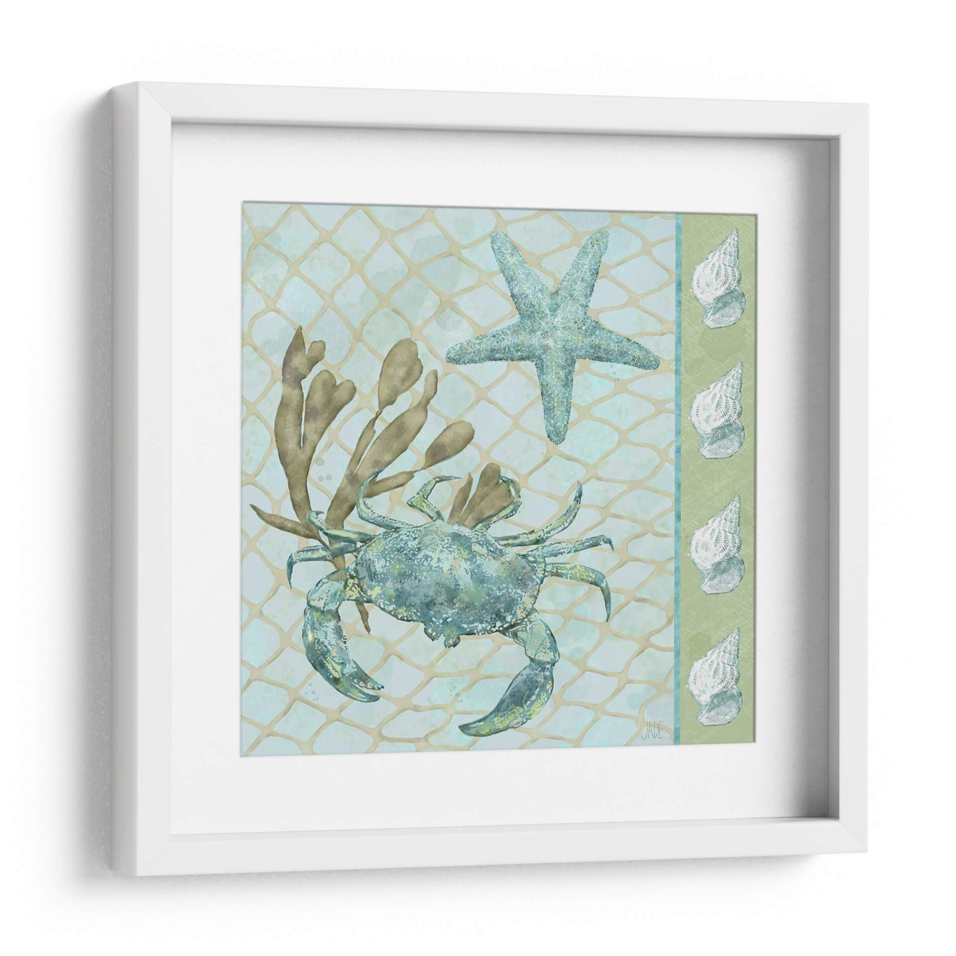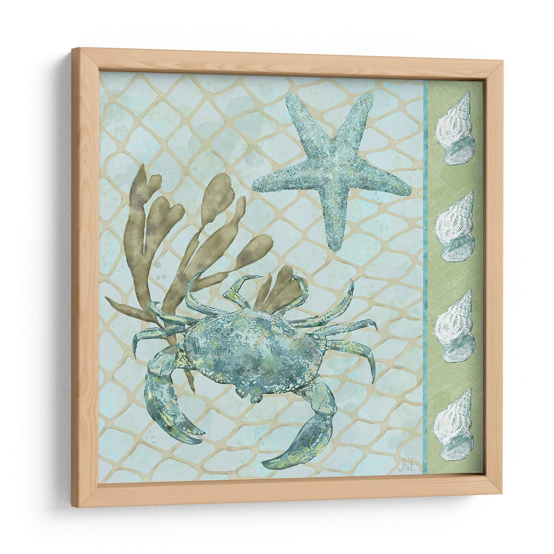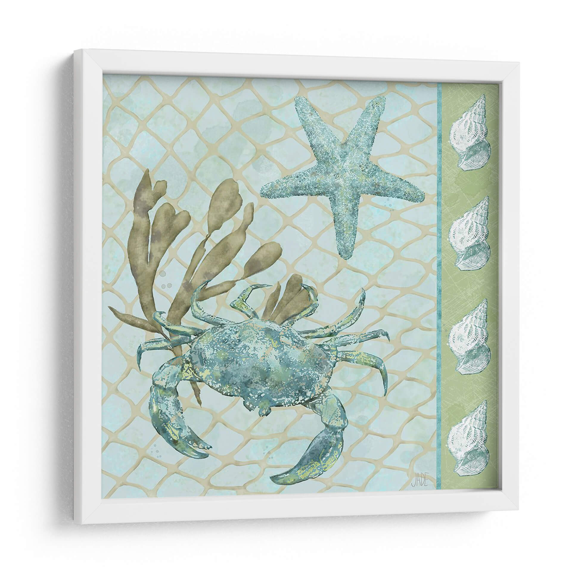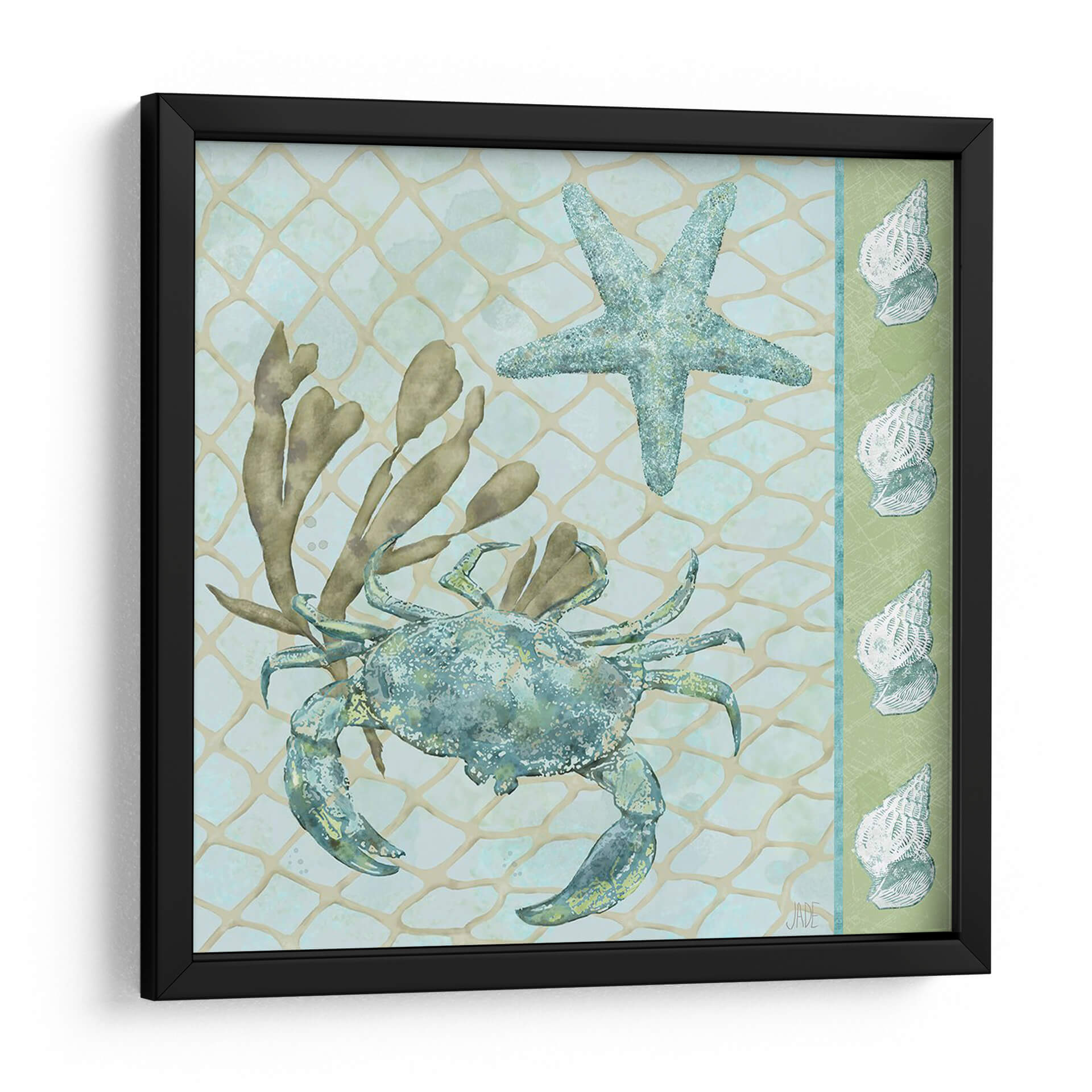 Sumérgete en la serenidad costera con "Bajo Mar II" de Jade Reynolds, una obra de arte decorativo que captura la esencia del océano con un encanto sutil y detallado. Este cuadro evoca la tranquilidad de las profundidades marinas, presentando una delicada paleta de azules celestes y verdes acuáticos, salpicada con tonos tierra y ocres que aportan calidez. La composición presenta un cangrejo detallado en primer plano, rodeado de algas marinas y una estrella de mar, todo sobre un fondo texturizado que recuerda a una red de pesca. A un lado, una banda vertical de conchas marinas blancas añade un toque de elegancia costera. La obra transmite una atmósfera de calma y conexión con la naturaleza, ideal para espacios que buscan reflejar la serenidad del mar. "Bajo Mar II" es perfecto para salones, dormitorios o estudios que deseen incorporar un elemento natural y relajante. Su estilo pictórico, que roza lo impresionista y lo realista en los detalles marinos, lo convierte en una pieza versátil para decoraciones costeras, náuticas o simplemente para quienes aprecian la belleza del mundo submarino. Añade esta pieza a tu colección y transforma tu hogar en un oasis de paz.