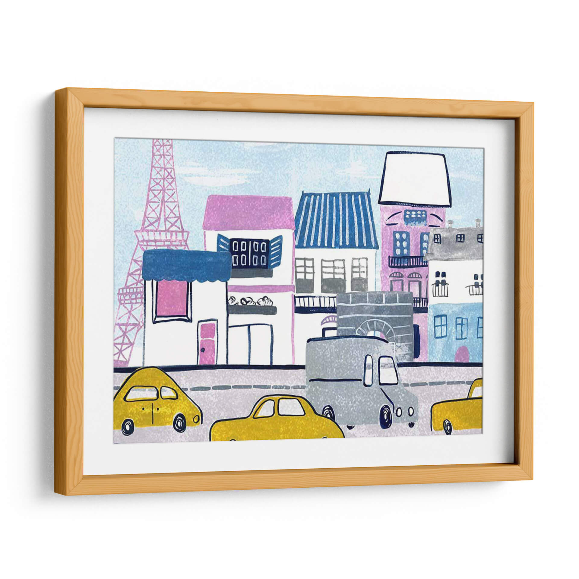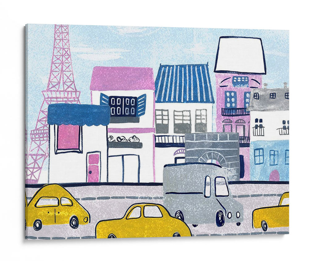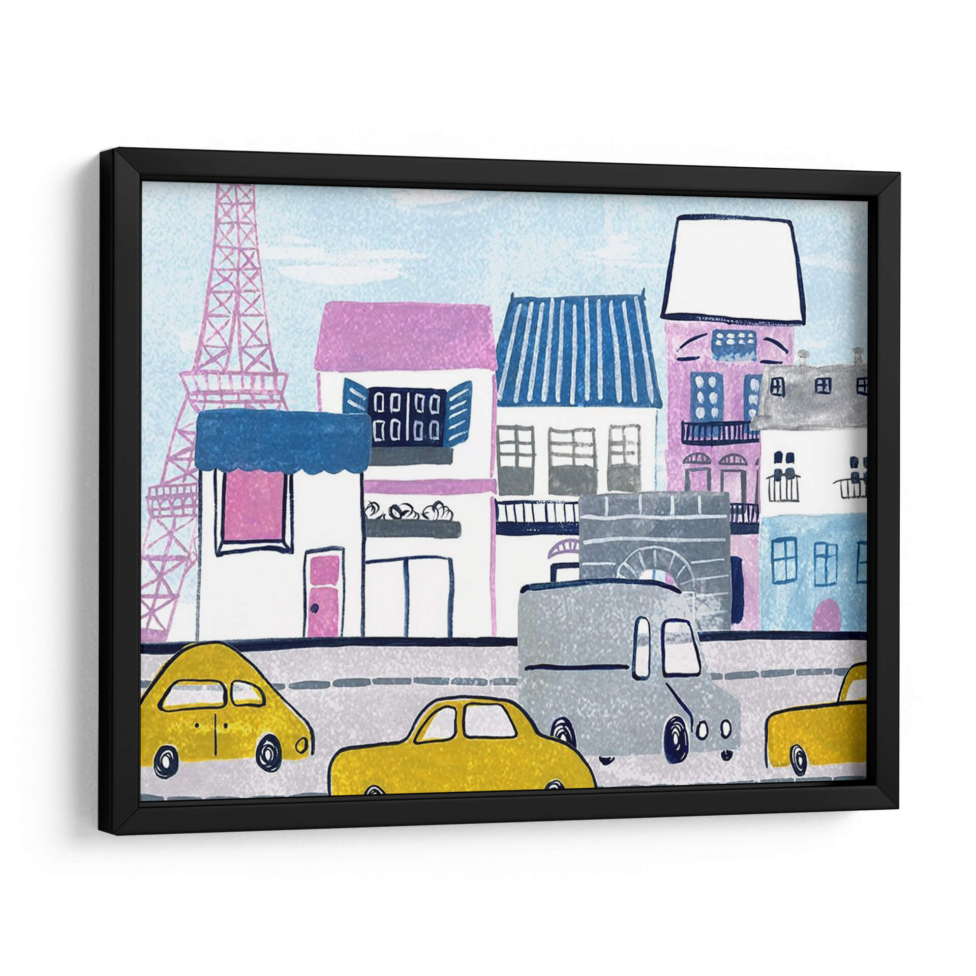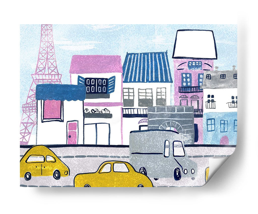 Transporta tu hogar a la icónica ciudad de la luz con "Bonjour Paris I", una encantadora obra de arte de Melissa Wang que captura la esencia vibrante y estilizada de París. Esta pieza presenta una representación juguetona y moderna de la Torre Eiffel al fondo, flanqueada por coloridas fachadas de edificios parisinos con detalles arquitectónicos distintivos, como ventanas con contraventanas y balcones. La calle cobra vida con la presencia de simpáticos coches amarillos y un vehículo gris, añadiendo un toque de dinamismo urbano a la escena. La paleta de colores, que combina tonos pastel de azul cielo, rosa y lavanda con acentos de azul marino y amarillo brillante, crea una atmósfera alegre y acogedora. El estilo distintivo de Wang, con sus líneas audaces y una textura que evoca las ilustraciones clásicas, invita a soñar con paseos por las calles parisinas. "Bonjour Paris I" es perfecto para añadir un toque de sofisticación europea y calidez a cualquier sala de estar, dormitorio o espacio de trabajo. Este cuadro decorativo es ideal para quienes buscan una pieza de arte contemporáneo que evoque la magia de París y aporte un espíritu chic y moderno a su decoración.