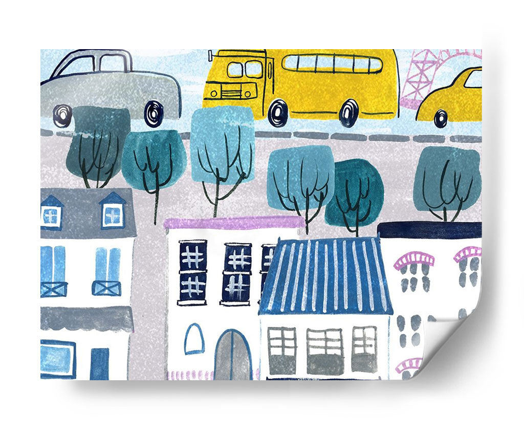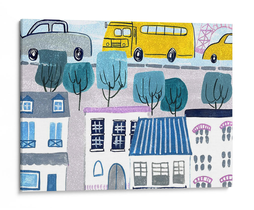 Descubre 'Bonjour Paris II', una encantadora obra de arte de Melissa Wang que captura la vitalidad y el encanto de una escena urbana parisina con un estilo vibrante y contemporáneo. Este cuadro decorativo presenta una paleta de colores juguetona, dominada por tonos azules, amarillos y grises, que crean una atmósfera alegre y acogedora. La composición se centra en edificios estilizados, vehículos icónicos como un autobús y un coche, y árboles frondosos, todo ello representado con trazos audaces y formas simplificadas que le confieren un aire moderno y desenfadado. La energía de la ciudad se transmite a través de la dinámica de las líneas y la interacción de los colores, invitando a soñar con paseos por las calles parisinas. "Bonjour Paris II" es ideal para añadir un toque de personalidad y color a cualquier espacio, ya sea una sala de estar, un dormitorio o una oficina. Su estética única lo convierte en un punto focal que inspira conversación y evoca la magia de París. Transforma tu hogar con este lienzo decorativo que combina arte contemporáneo y el espíritu de una ciudad eterna, perfecto para quienes buscan una decoración con carácter y un toque de alegría.