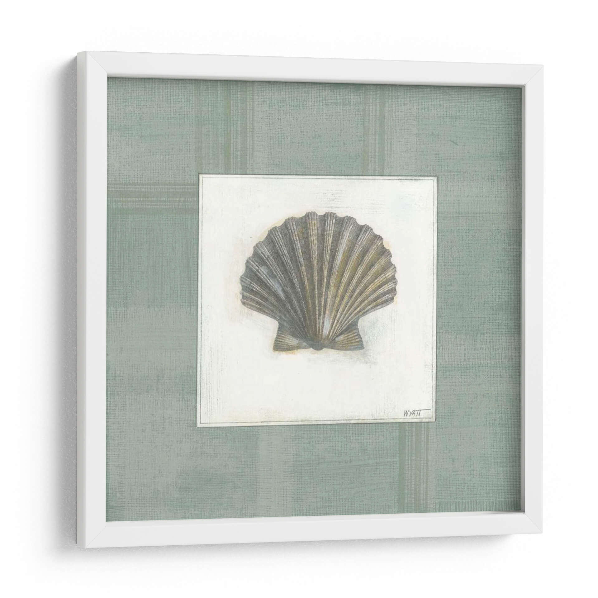 Sumérgete en la serenidad costera con "Breezca Marítima I" de Norman Wyatt Jr., una obra de arte que captura la delicada belleza de una concha marina. Esta pieza, con su paleta de colores suaves y terrosos que evocan la tranquilidad del mar, presenta una concha detallada sobre un fondo texturizado que simula la arena o el lienzo, enmarcada por un sutil patrón de rayas verticales en tonos verde azulado. El estilo realista pero con un toque artístico transmite una sensación de calma y conexión con la naturaleza, ideal para espacios que buscan un refugio de paz y elegancia. La composición centrada resalta la forma intrincada de la concha, convirtiéndola en un punto focal sutil pero cautivador. Este cuadro decorativo es perfecto para añadir un toque de inspiración marítima a tu sala de estar, dormitorio, baño o cualquier rincón que necesite un respiro de serenidad. Su diseño atemporal y la calidad de la ejecución lo convierten en una adición versátil a cualquier decoración, desde la costera hasta la moderna minimalista. Descubre la belleza del océano en tu hogar.