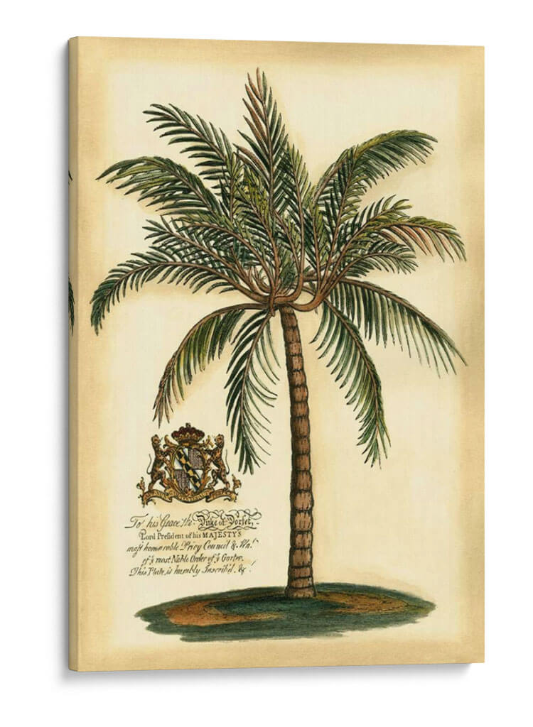 Embellece tu espacio con 'British Colonial Palm III', una exquisita obra de arte que captura la majestuosidad de una palmera en un estilo botánico clásico. Los verdes exuberantes de las hojas de palma contrastan elegantemente con el fondo de tono sepia, evocando una sensación de nostalgia y tranquilidad tropical. La detallada ilustración, que incluye un blasón heráldico y un texto antiguo, añade un toque de historia y sofisticación a la pieza. Este cuadro decorativo es perfecto para crear un ambiente sereno y elegante en tu sala de estar, dormitorio u oficina. Su composición centrada y la paleta de colores naturales lo convierten en un complemento versátil para diversos estilos de decoración, desde el clásico hasta el ecléctico. Aporta una conexión con la naturaleza y un aire de refinamiento histórico a tu hogar, invitando a la calma y la contemplación. Ideal para amantes de la botánica, la historia y el arte con carácter. Añade un toque de encanto del viejo mundo a tu decoración contemporánea con esta impresionante representación de una palmera.