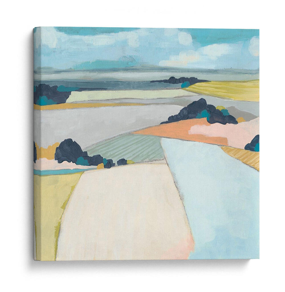 Sumérgete en la serenidad paisajística de "Campos Cromáticos II", una cautivadora obra de arte abstracto de June Erica Vess. Esta pieza transporta al espectador a través de un tapiz visual de campos estilizados y formas orgánicas, donde la luz y el color se entrelazan para crear una atmósfera de calma y contemplación. La paleta de colores, que oscila entre suaves tonos pastel y acentos terrosos, evoca la tranquilidad de un paisaje rural al amanecer o atardecer. Las líneas suaves y las áreas de color plano se combinan para formar una composición armoniosa que invita a la relajación. "Campos Cromáticos II" es ideal para aquellos que buscan infundir a su hogar u oficina una sensación de paz y conexión con la naturaleza, transformando cualquier pared en un oasis de serenidad. Este cuadro decorativo contemporáneo es perfecto para salones, dormitorios o espacios de trabajo que necesiten un toque de elegancia sutil y un respiro visual. Su estilo abstracto y moderno lo convierte en una pieza versátil que complementa una amplia gama de decoraciones interiores, desde lo minimalista hasta lo bohemio.