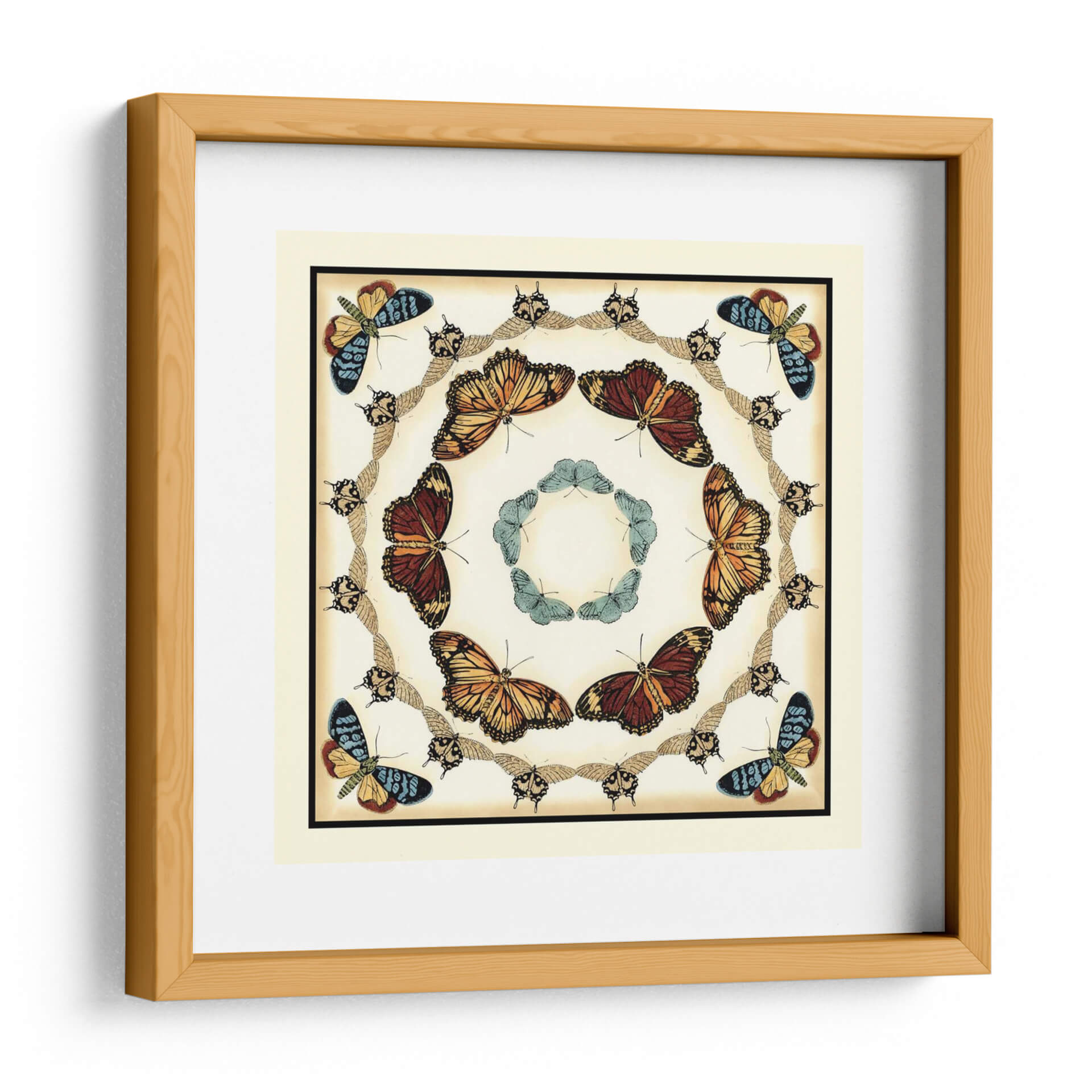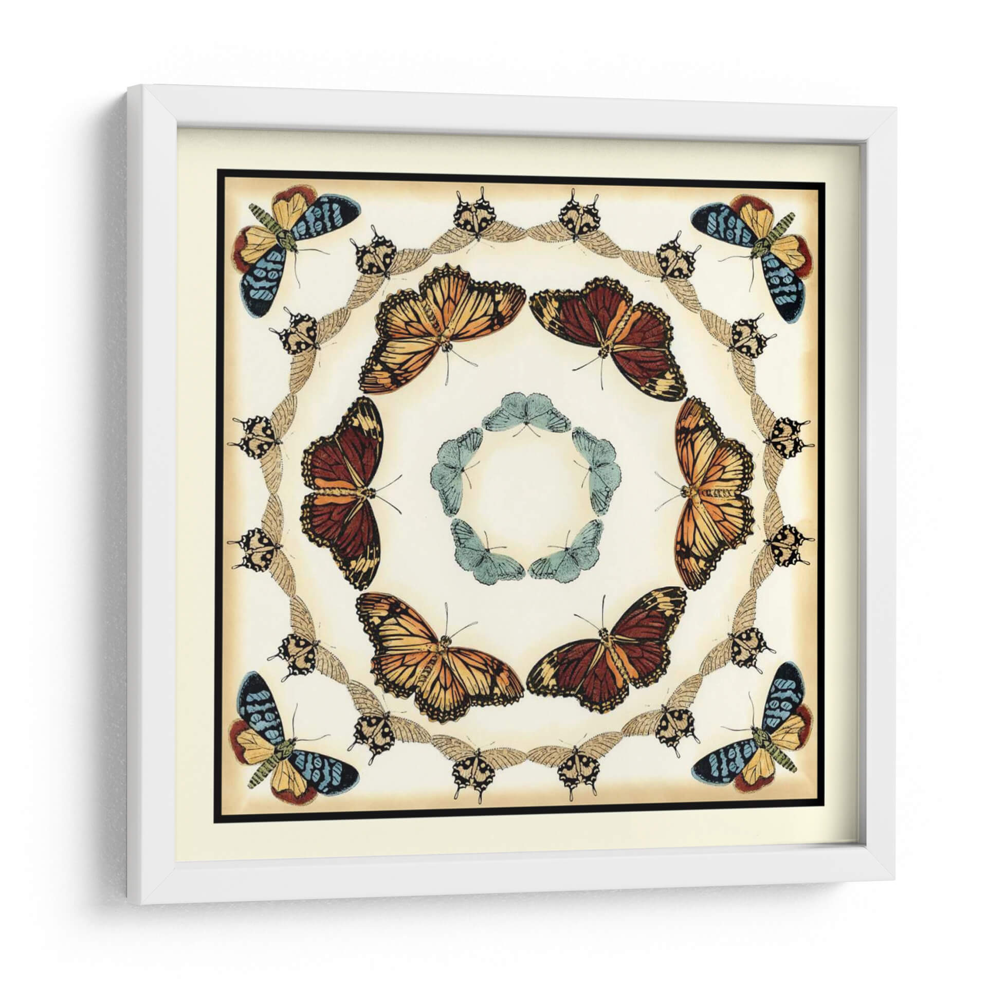 Embellece tu hogar con este exquisito cuadro decorativo "Colector De Mariposa Ii" de Chariklia Zarris. Esta obra de arte, inspirada en la belleza intrincada de la naturaleza, presenta una composición circular y simétrica de mariposas en diversas tonalidades, creando un efecto visual cautivador. La paleta de colores, dominada por tonos cálidos como naranjas y marrones profundos, se complementa con toques de azul vibrante y un fondo crema suave, evocando una sensación de elegancia atemporal y un toque botánico. Los detalles finos de cada mariposa, desde sus alas hasta sus cuerpos, capturan la esencia de la entomología artística, invitando a la contemplación y al asombro. Este cuadro decorativo es ideal para añadir un punto focal sofisticado a cualquier sala de estar, dormitorio o estudio, aportando un aire de serenidad y un guiño a la belleza del mundo natural. Su estilo, que combina elementos clásicos con una presentación moderna, lo hace versátil para integrarse en decoraciones contemporáneas o más tradicionales. Transforma tu espacio con esta pieza única que celebra la delicadeza y la fascinación de las mariposas, un verdadero tesoro para los amantes del arte y la naturaleza.