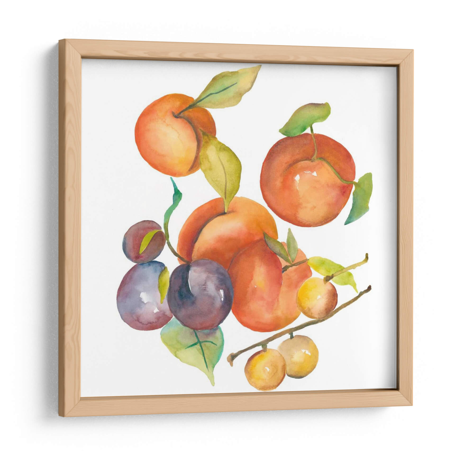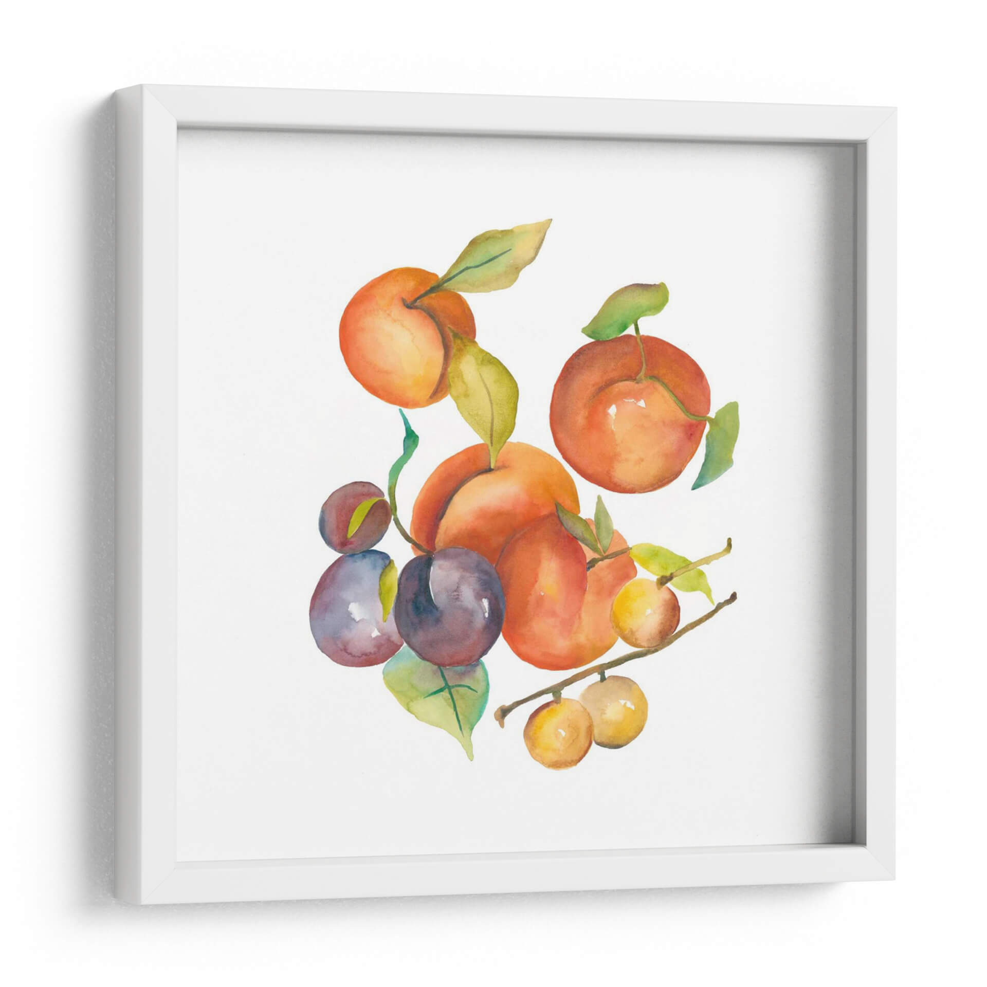 Sumérgete en la frescura y vitalidad de "Cosecha Mexley I", una obra de arte que captura la esencia de la naturaleza con un estilo de acuarela delicado y expresivo. Este cuadro decorativo presenta una composición armoniosa de frutas maduras, destacando tonos cálidos de naranja y melocotón, junto a vibrantes ciruelas púrpuras, todo ello realzado por hojas verdes llenas de vida. La técnica de acuarela utilizada por Chariklia Zarris aporta una ligereza y transparencia únicas, creando un ambiente sereno y a la vez lleno de energía. "Cosecha Mexley I" es ideal para añadir un toque de color y sofisticación a cualquier espacio. Su estética fresca y natural la convierte en la elección perfecta para cocinas, comedores o salas de estar, aportando una sensación de calma y conexión con el campo. La obra invita a la contemplación, evocando los placeres sencillos de la abundancia y la belleza efímera de la fruta recién recolectada. Integra este cuadro decorativo en tu hogar u oficina para crear un punto focal que transmita alegría y buen gusto, combinando a la perfección con decoraciones rústicas, modernas o eclécticas.