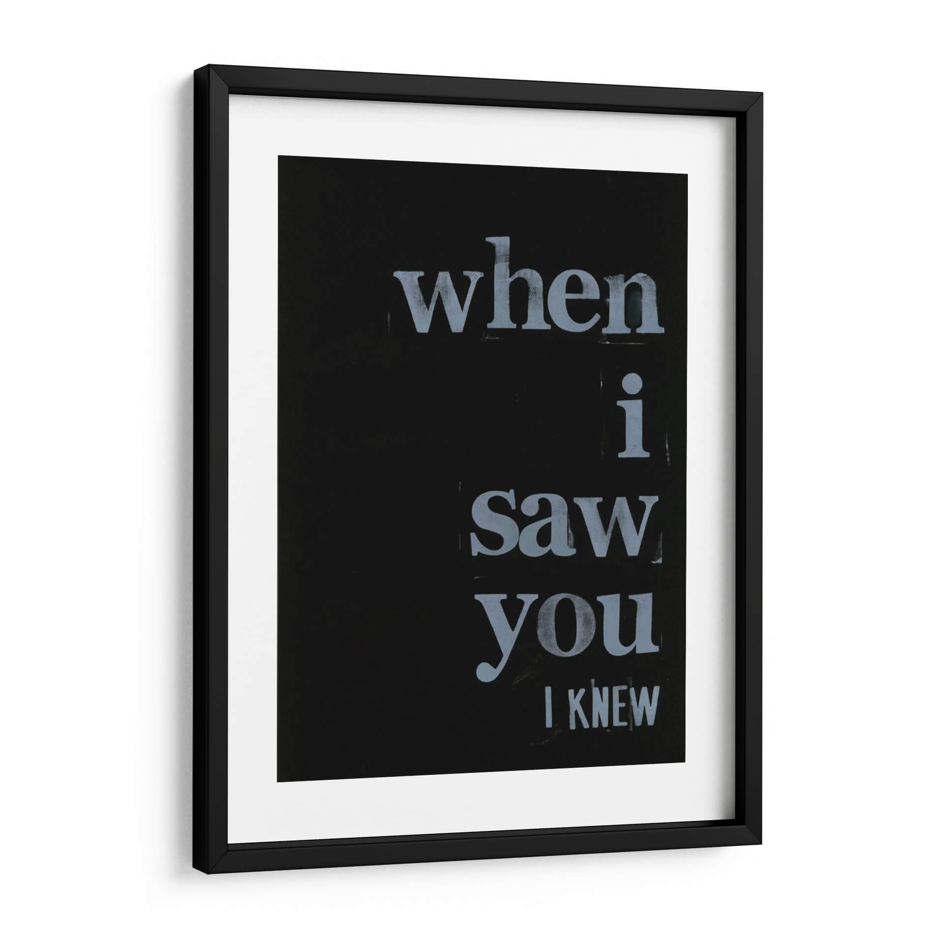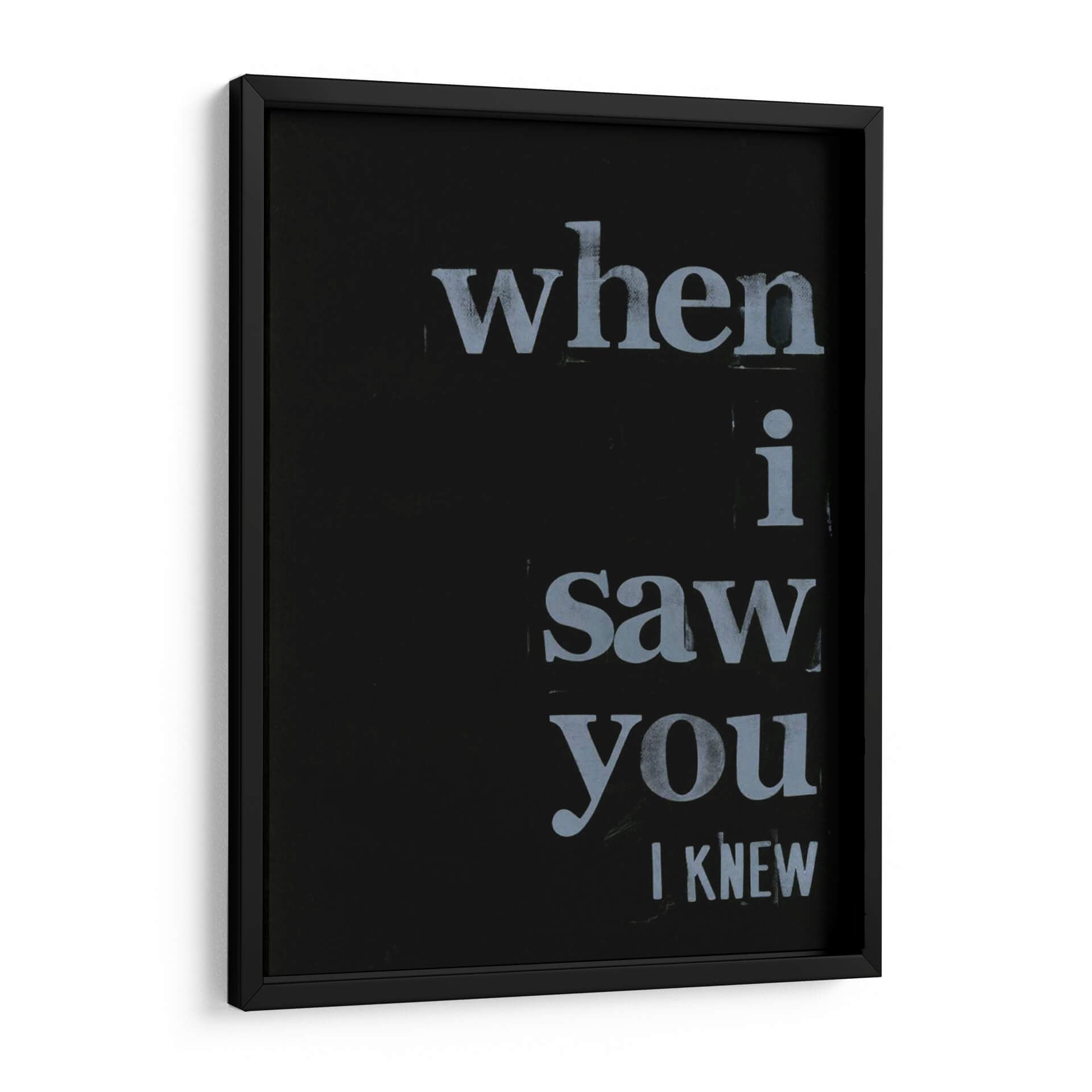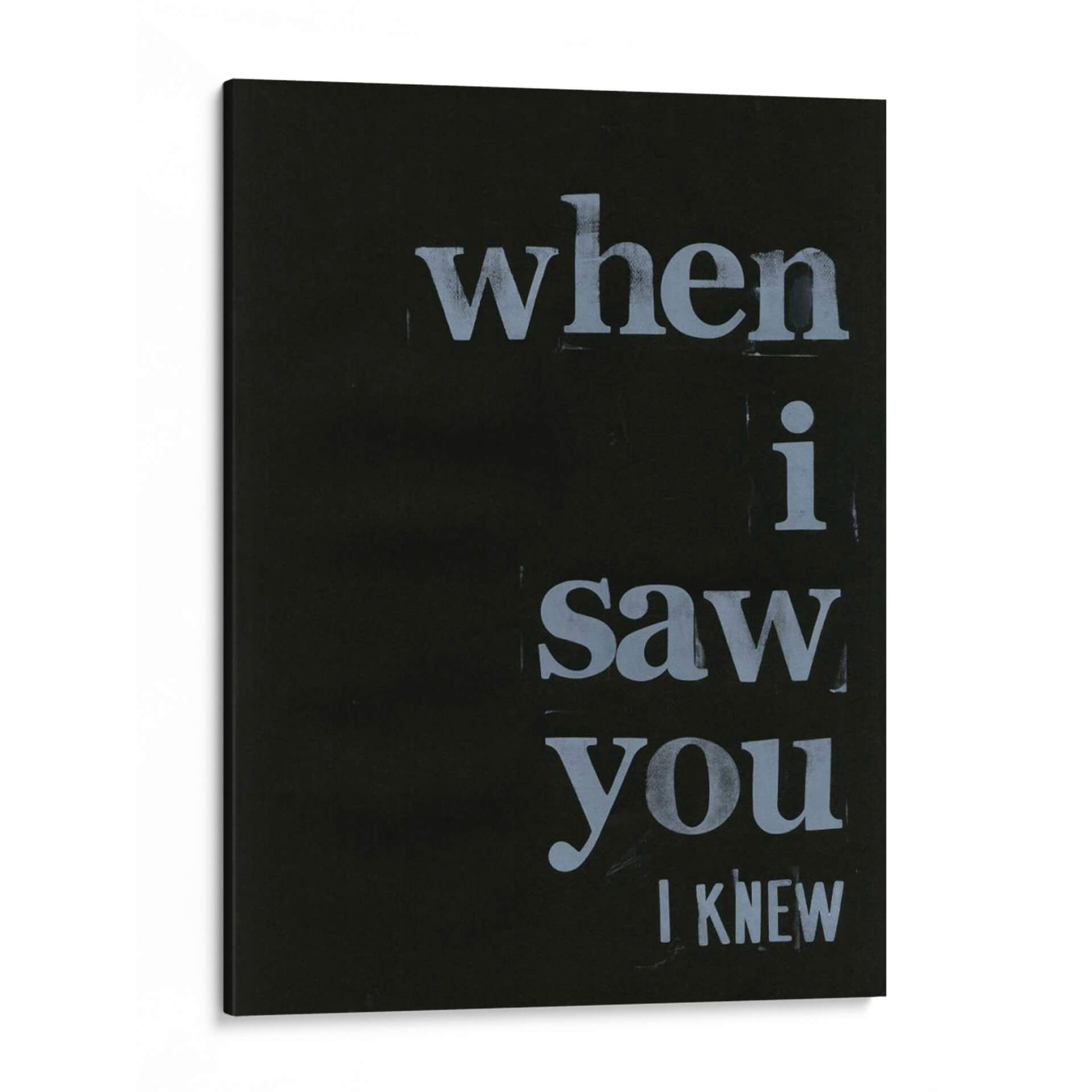 Captura la esencia de un momento decisivo con este impactante cuadro decorativo tipográfico. La obra presenta la frase "Cuando Te Vi ... Yo I KNEW" en una tipografía de estilo desgastado sobre un fondo negro profundo, evocando una sensación de misterio y reflexión. Los sutiles matices grises y blancos de las letras contrastan con la oscuridad, creando un punto focal intrigante. Este diseño minimalista y moderno es perfecto para añadir un toque de profundidad emocional a cualquier espacio, ya sea una sala de estar, un dormitorio o una oficina. Su estética contemporánea se integra fácilmente en decoraciones modernas, minimalistas o urbanas. La frase, cargada de significado, invita a la contemplación y a la conexión personal, convirtiendo este cuadro en una pieza de conversación y en un recordatorio visual de las epifanías de la vida. Ideal para aquellos que aprecian el arte que combina estética y mensaje, este lienzo es una adición sofisticada a tu colección de decoración de pared.