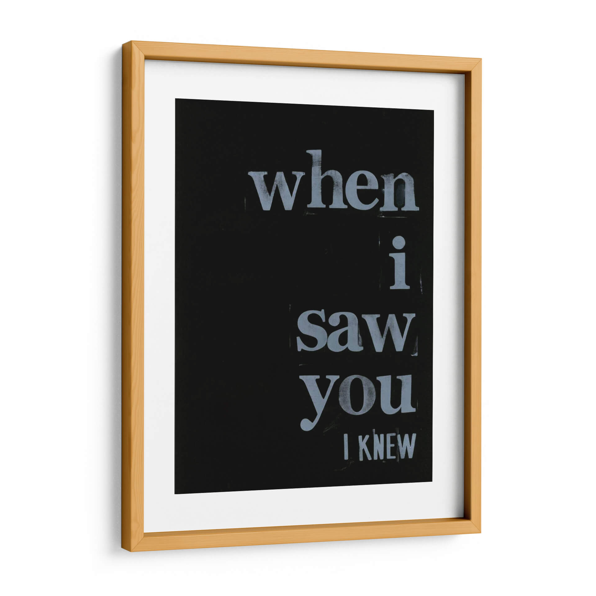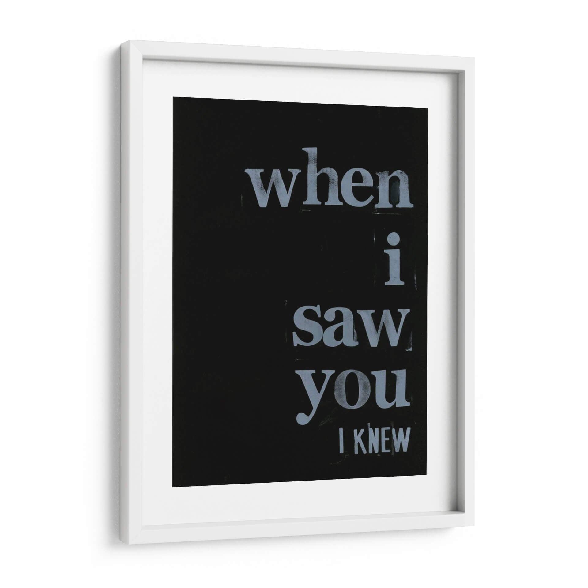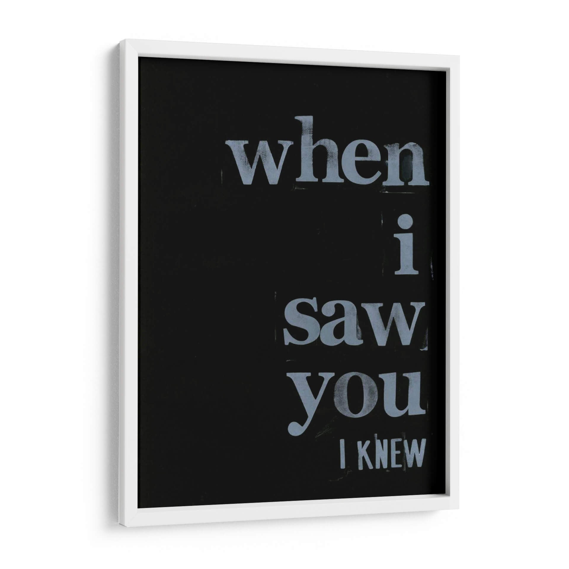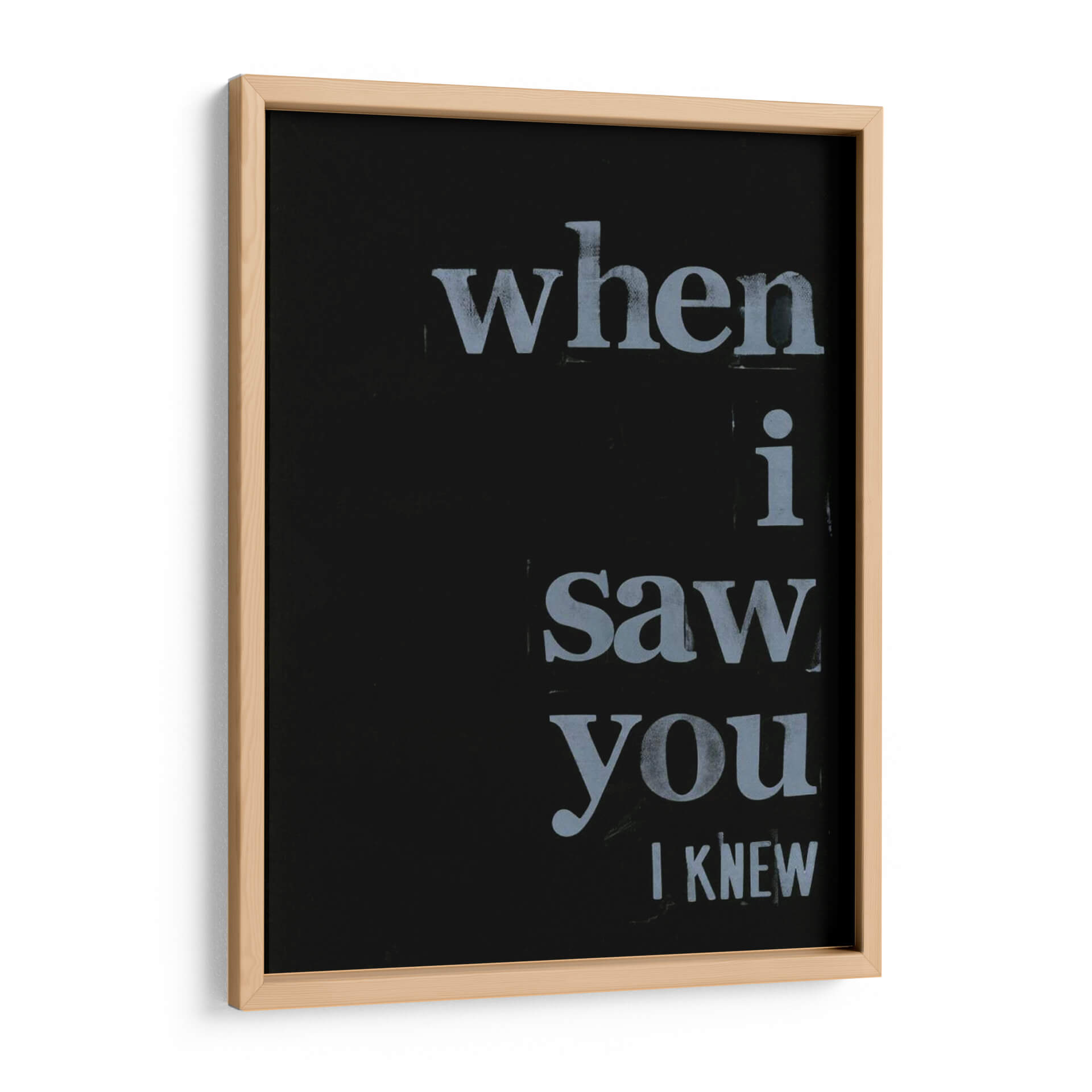 Captura la esencia de un momento decisivo con este impactante cuadro decorativo tipográfico. La obra presenta la frase "Cuando Te Vi ... Yo I KNEW" en una tipografía de estilo desgastado sobre un fondo negro profundo, evocando una sensación de misterio y reflexión. Los sutiles matices grises y blancos de las letras contrastan con la oscuridad, creando un punto focal intrigante. Este diseño minimalista y moderno es perfecto para añadir un toque de profundidad emocional a cualquier espacio, ya sea una sala de estar, un dormitorio o una oficina. Su estética contemporánea se integra fácilmente en decoraciones modernas, minimalistas o urbanas. La frase, cargada de significado, invita a la contemplación y a la conexión personal, convirtiendo este cuadro en una pieza de conversación y en un recordatorio visual de las epifanías de la vida. Ideal para aquellos que aprecian el arte que combina estética y mensaje, este lienzo es una adición sofisticada a tu colección de decoración de pared.