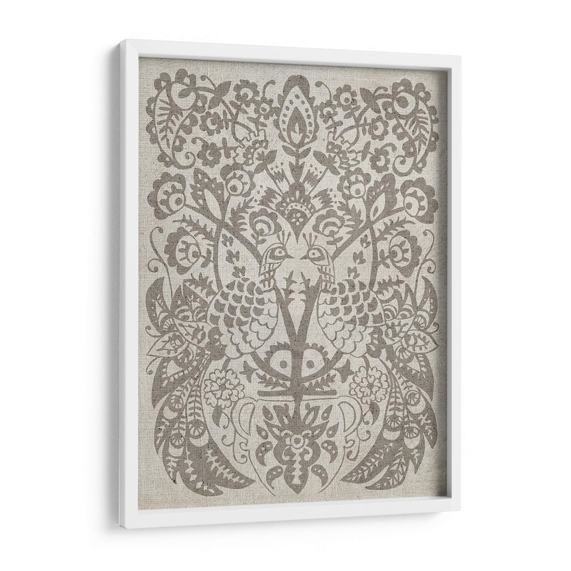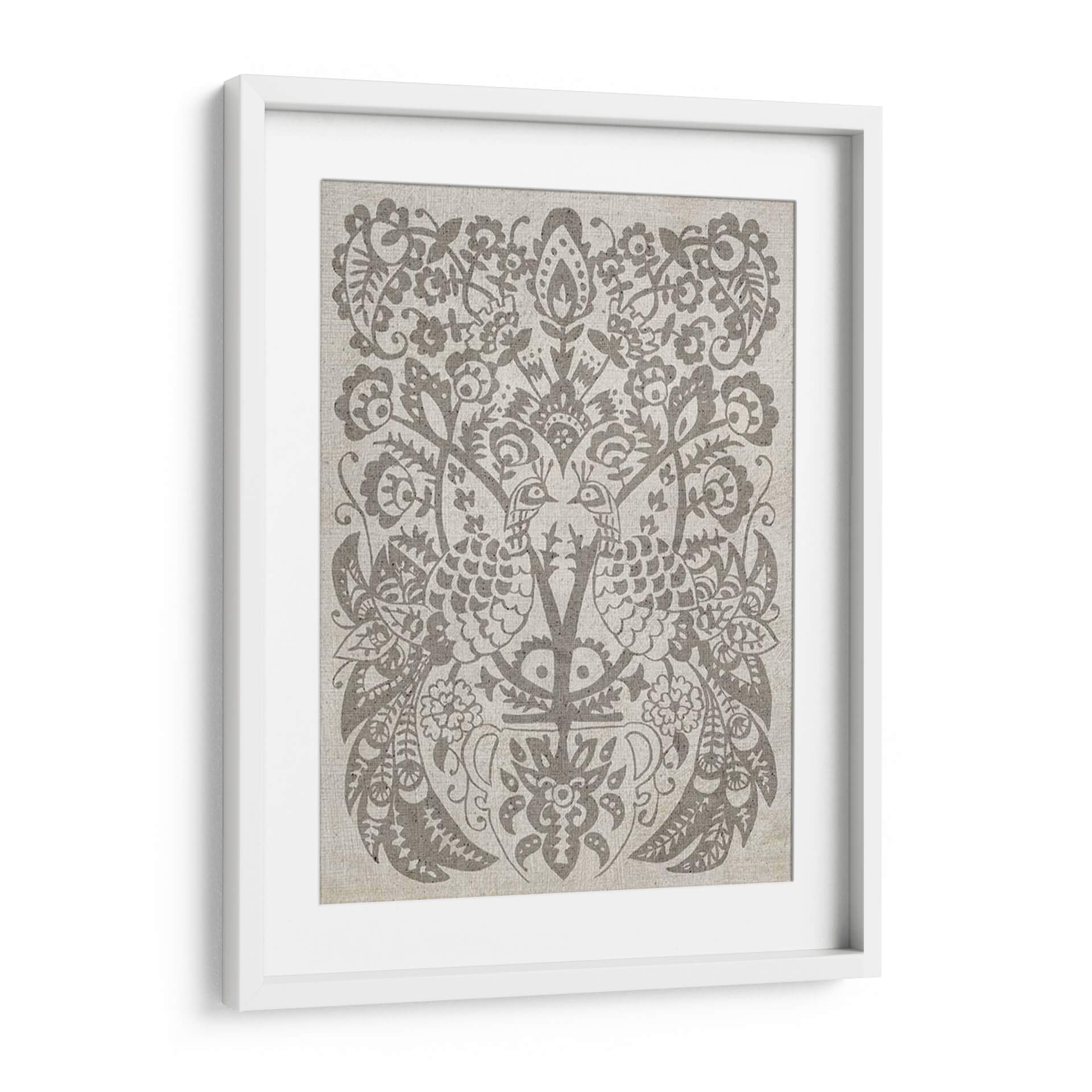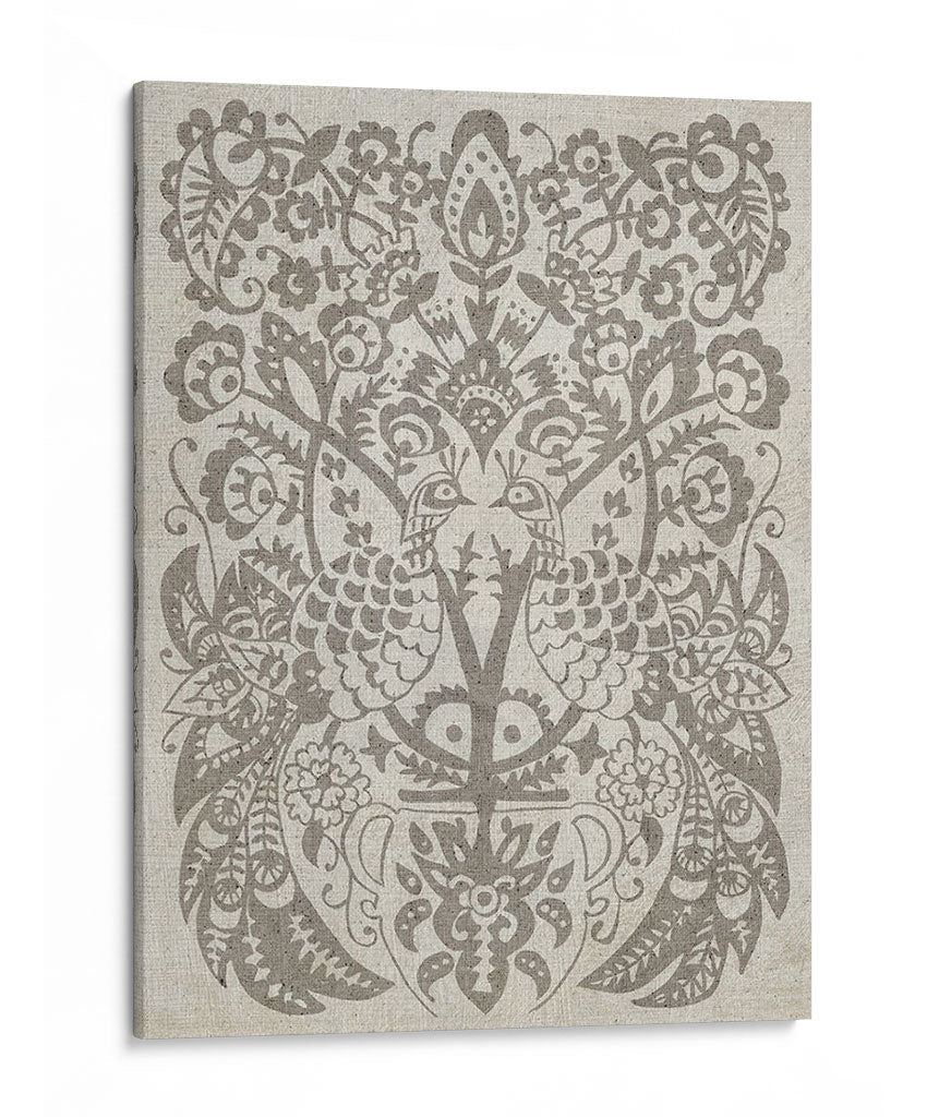 Sumérgete en la elegancia atemporal de "Damasco De Pavo Real I" de Chariklia Zarris, una obra de arte decorativo que evoca un sentido de calma y sofisticación. Este cuadro abstracto presenta un intrincado diseño damasquino, inspirado en motivos tradicionales, pero con un giro contemporáneo. La paleta de colores neutros, dominada por tonos grises y beiges, crea una atmósfera serena y armoniosa, perfecta para complementar cualquier estilo de decoración, desde el moderno hasta el clásico. La composición simétrica, centrada en la figura estilizada de dos pavos reales rodeados de exuberante follaje floral, invita a la contemplación y añade un toque de exotismo refinado a tu espacio. Ideal para quienes buscan una pieza que combine arte con significado, "Damasco De Pavo Real I" es más que una simple decoración de pared; es una declaración de estilo que aportará tranquilidad y belleza a tu hogar u oficina. Este cuadro decorativo es una elección exquisita para salas de estar, dormitorios o cualquier lugar donde desees infundir un aire de elegancia discreta y un toque artístico único.