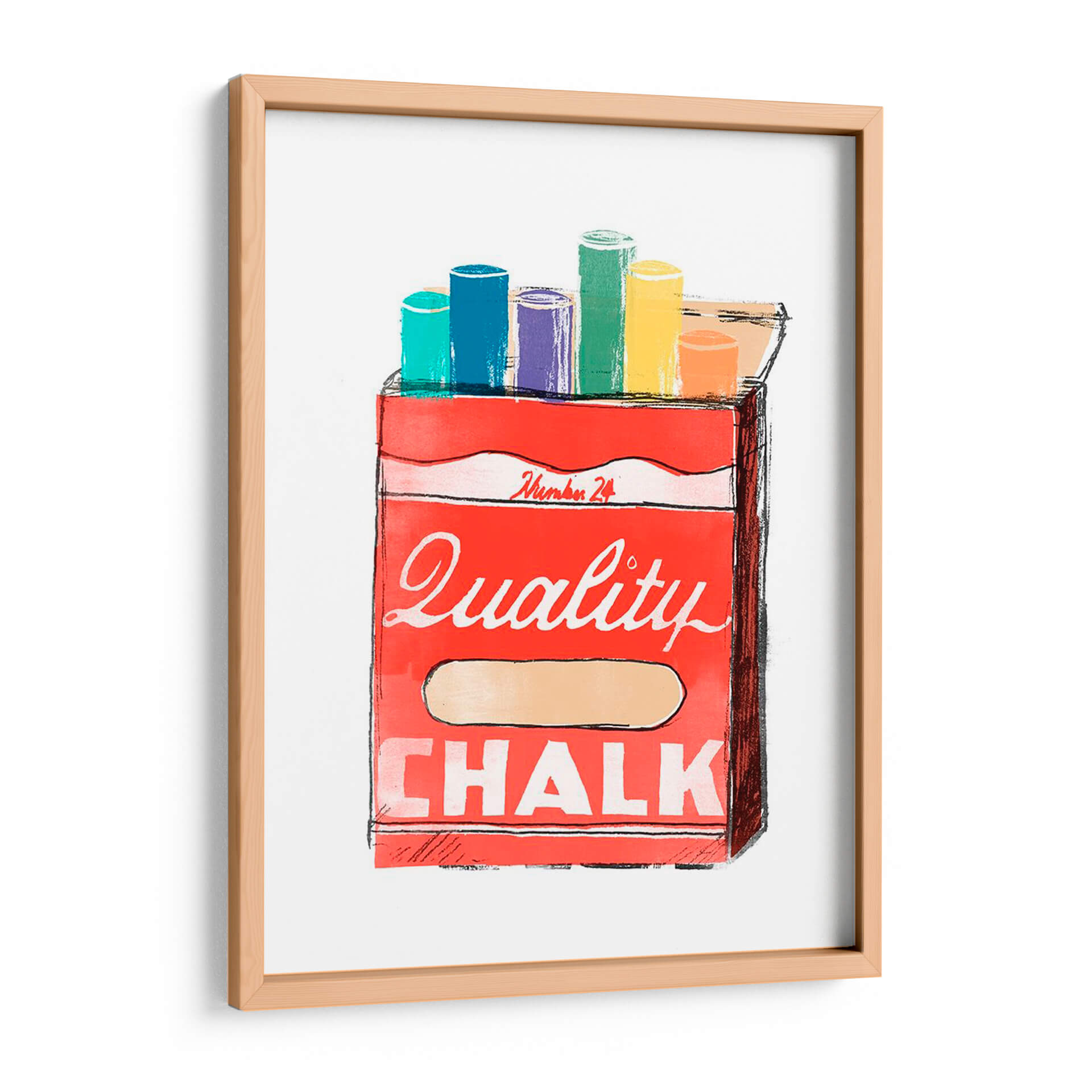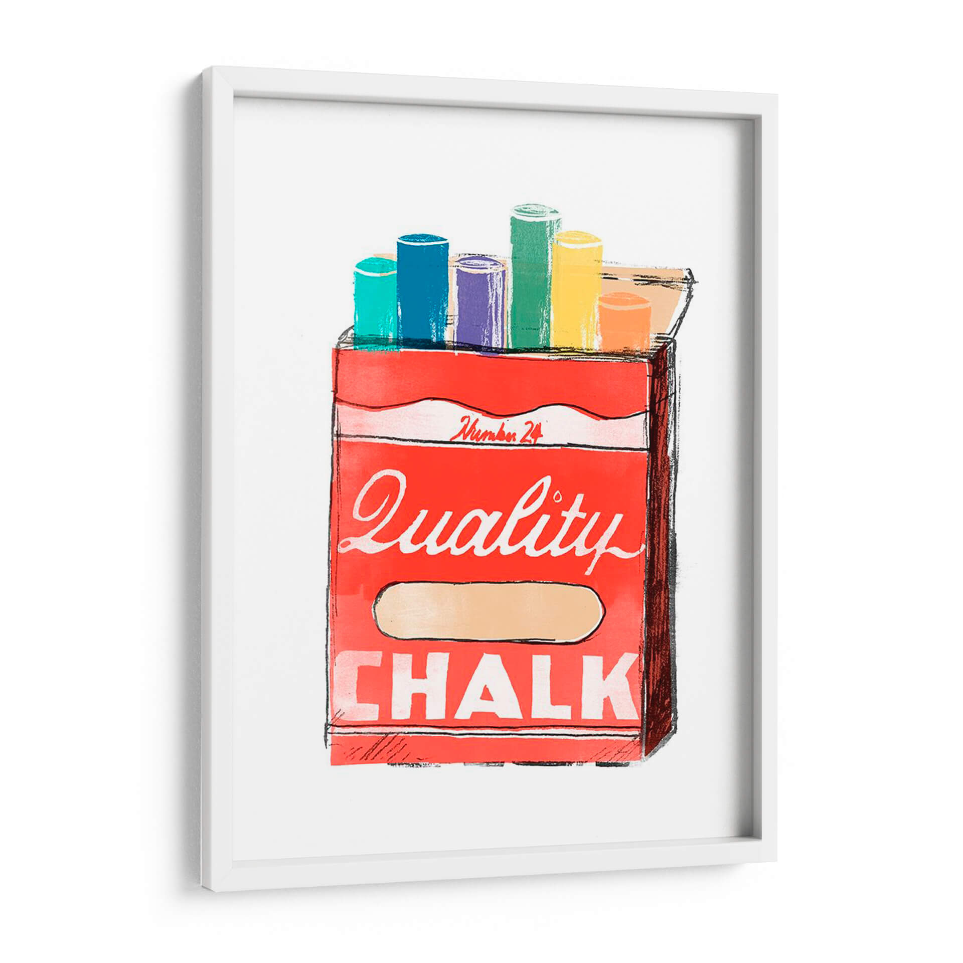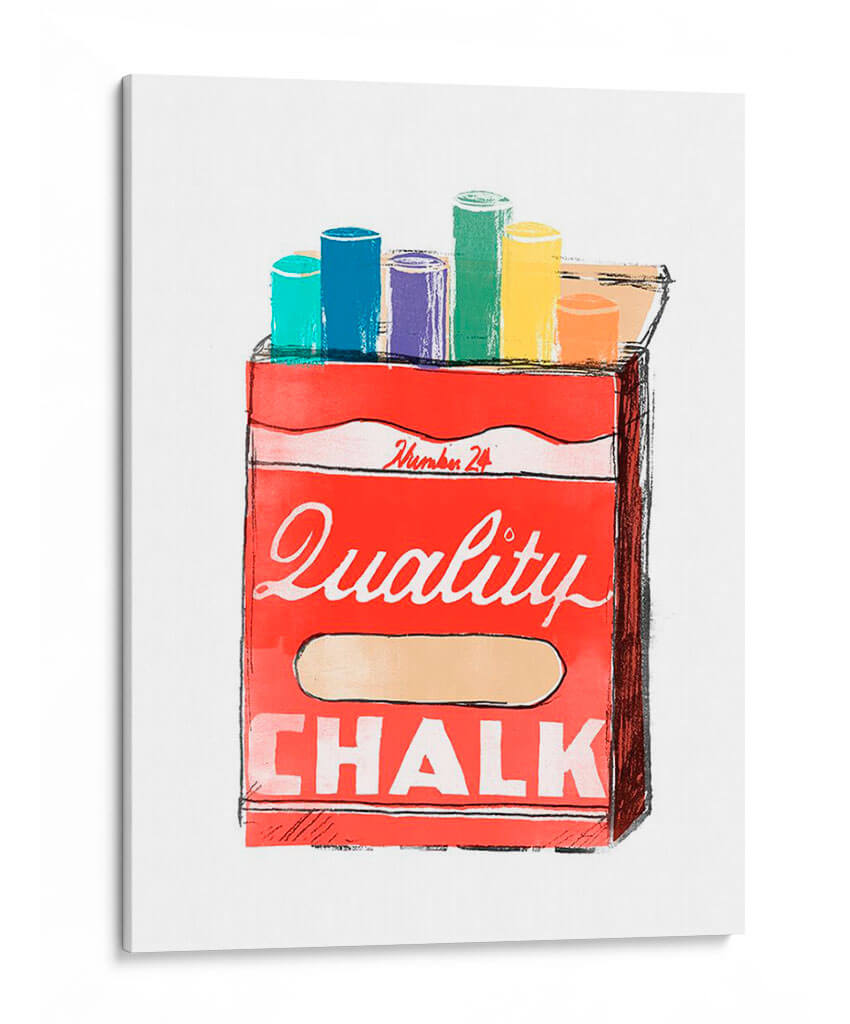 Sumérgete en la nostalgia y la creatividad con "Días Escolares I", una cautivadora obra de arte de June Erica Vess que evoca la simplicidad de los materiales de arte. Este vibrante cuadro decorativo presenta una caja de tizas de colores, dispuestas en un alegre despliegue de tonalidades que van desde el turquesa y el azul hasta el morado, verde, amarillo y naranja. La caja roja, con su audaz tipografía que declara "Quality CHALK", se presenta como un homenaje a los útiles escolares y al potencial ilimitado de la creación artística. La técnica utilizada, con trazos definidos y un uso audaz del color, dota a la obra de una energía pop y contemporánea, ideal para cualquier espacio que busque un toque de color y originalidad. "Días Escolares I" es perfecto para inspirar estudios, aulas, oficinas creativas o incluso una cocina moderna, añadiendo un punto de interés visual y un recordatorio lúdico del placer de crear. Su composición equilibrada y su paleta de colores optimista la convierten en una pieza versátil que complementa tanto decoraciones minimalistas como espacios más eclécticos.