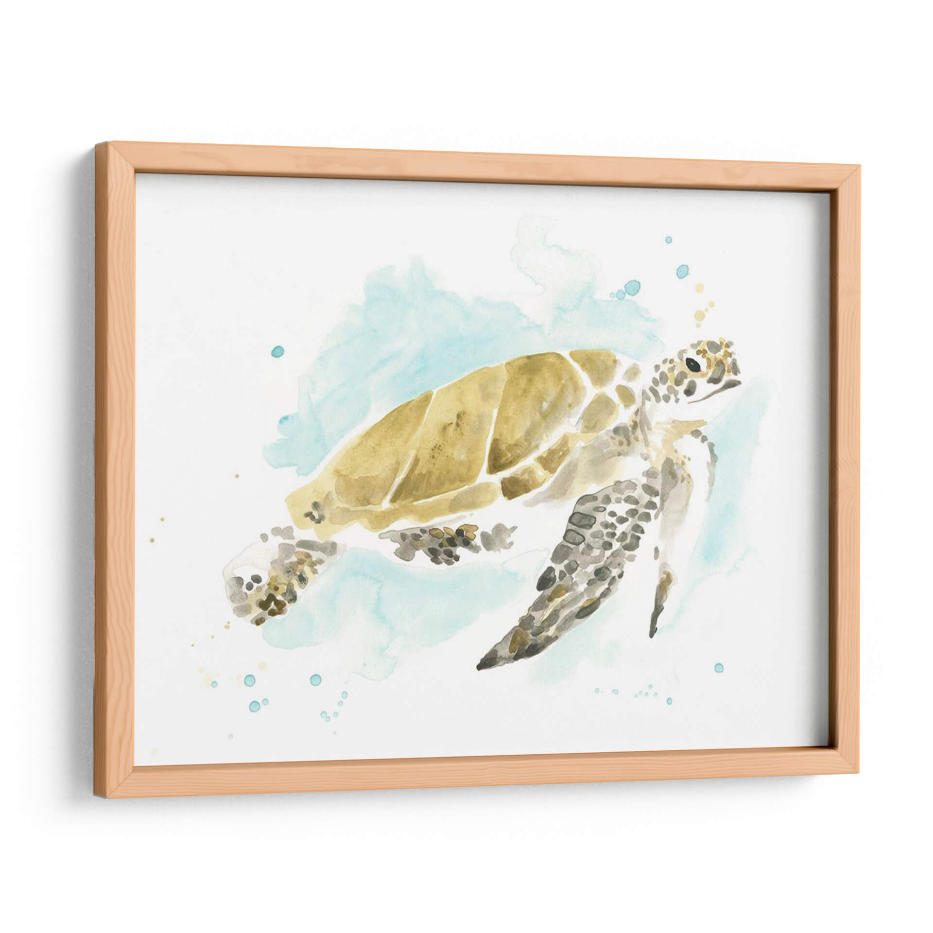 Sumérgete en la serenidad del océano con este cautivador cuadro decorativo de tortuga marina, una obra maestra en acuarela que evoca la calma y la belleza del mundo submarino. Capturada con pinceladas delicadas y una paleta de colores suaves, la tortuga emerge grácilmente sobre un fondo etéreo de acuamarina y blanco, salpicado con sutiles toques de dorado que añaden un brillo especial. El estilo acuarela confiere a la pieza una ligereza y transparencia únicas, creando una atmósfera de paz y movimiento fluido. Ideal para quienes buscan añadir un toque de naturaleza y tranquilidad a su hogar u oficina, este cuadro decorativo es perfecto para dormitorios, salones o incluso baños, aportando una conexión serena con la vida marina. Su diseño, que combina realismo con una interpretación artística, lo convierte en una pieza versátil capaz de complementar una variedad de estilos decorativos, desde el costero y bohemio hasta el moderno y minimalista. Transforma tu espacio en un oasis de calma con la elegancia atemporal de esta exquisita tortuga marina.
